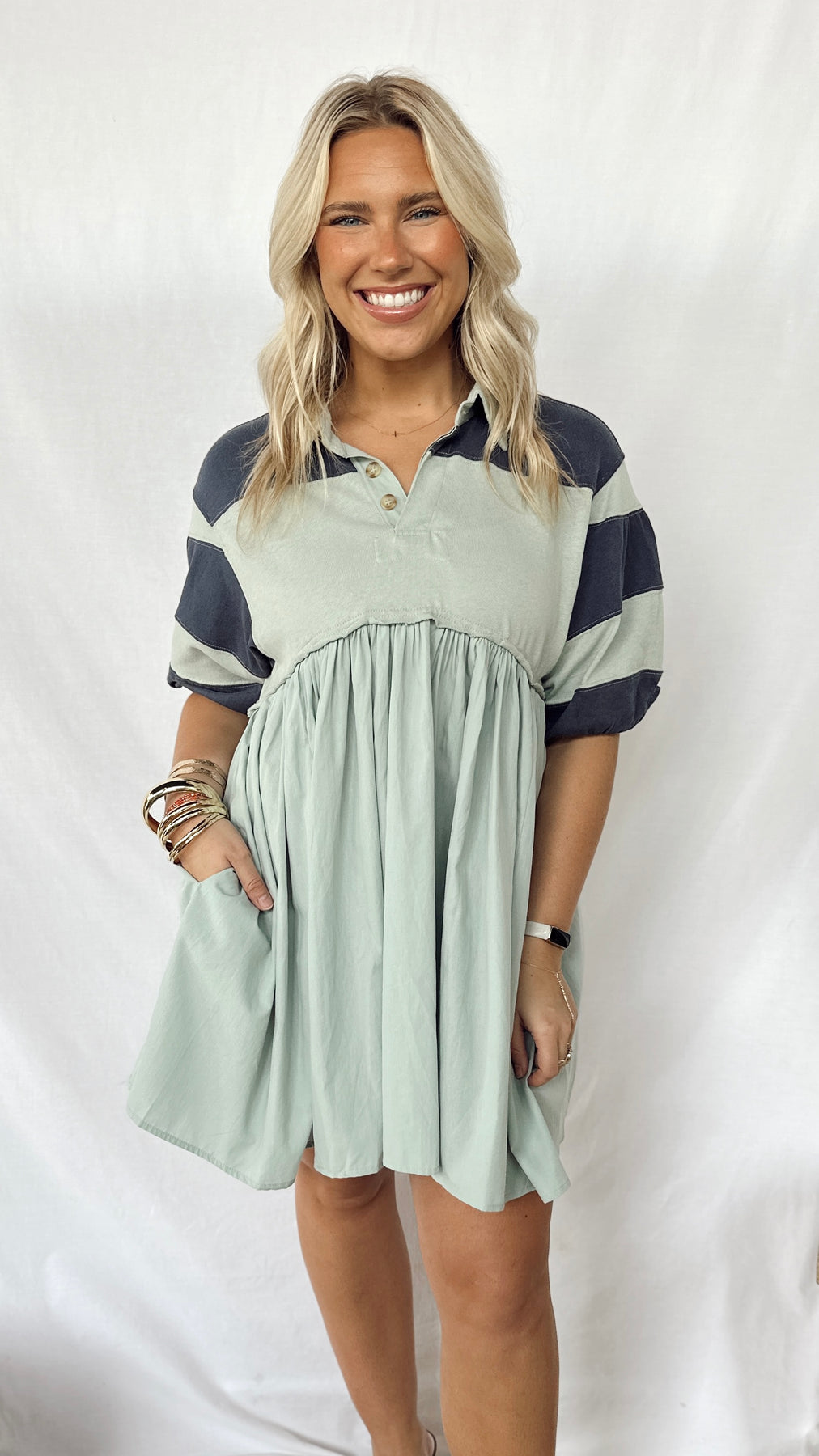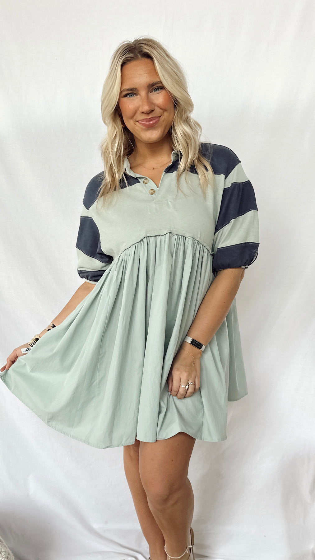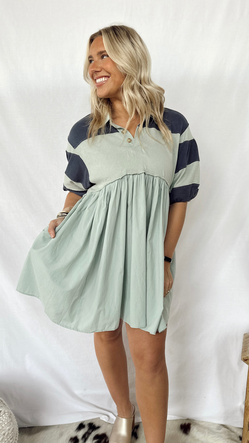 The Francie Dress is a playful baby doll style t-shirt dress featuring a charming button-up detail on the top collar. Its relaxed fit makes it easy to wear all day, while the buttons add a cute, casual touch perfect for any fun outing.