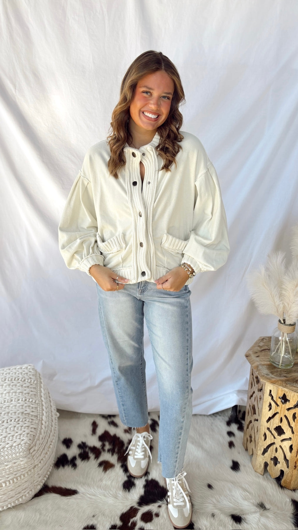 The Jacie Cardigan is your new favorite cozy layer. This cream cardigan features charming brown button-up details and two handy front pockets, perfect for keeping little essentials close. With long sleeves and a relaxed fit, it’s easy to throw on for effortless style and comfort any time of year.