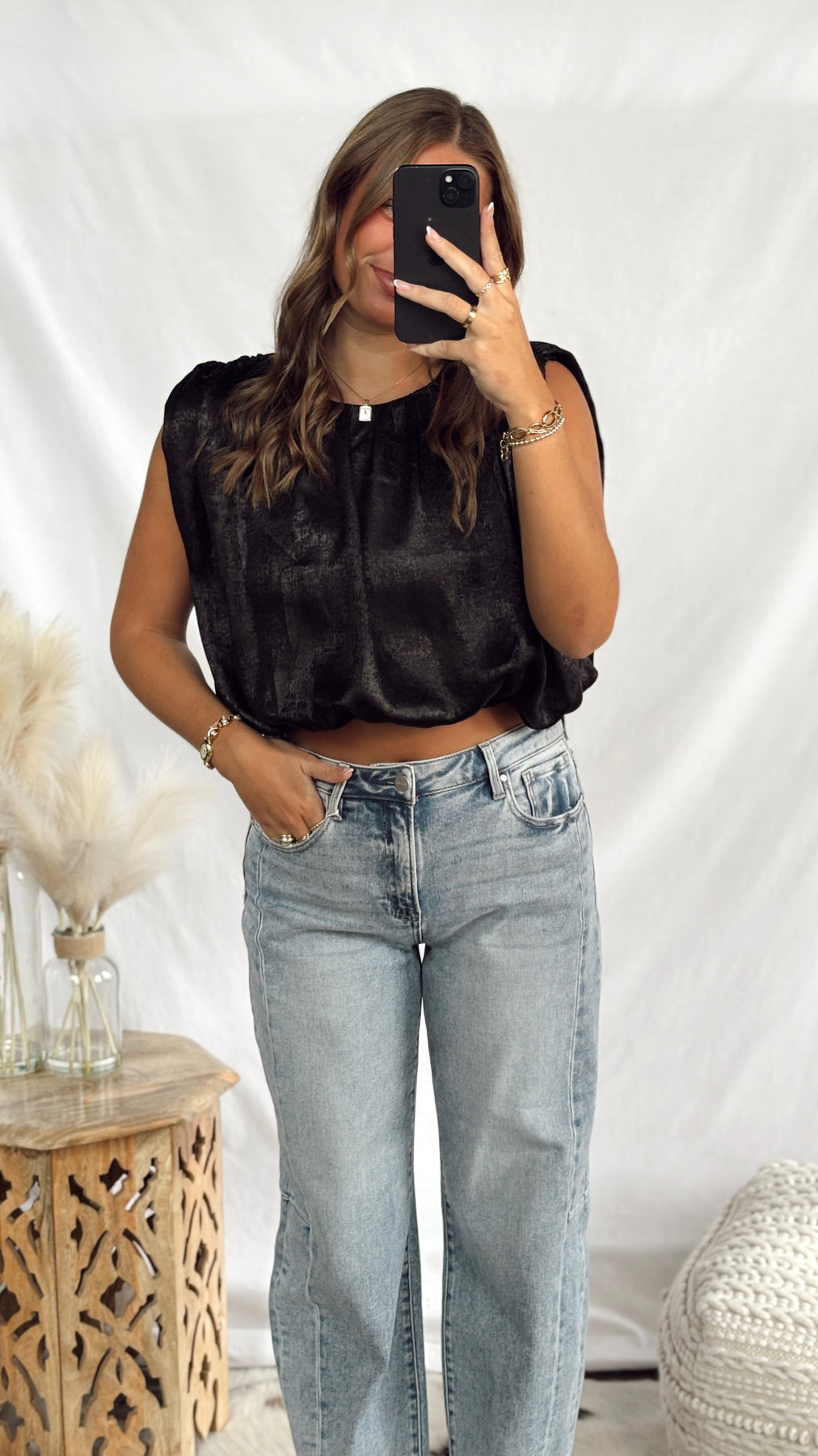 The Jacie Top is your go-to black cropped essential that pairs perfectly with everything. Its sleek, minimalist design keeps your look effortlessly cool and comfy, whether you're dressing up or keeping it casual. Simple, stylish, and made to move with you, this top adds a fresh twist to your everyday wardrobe.