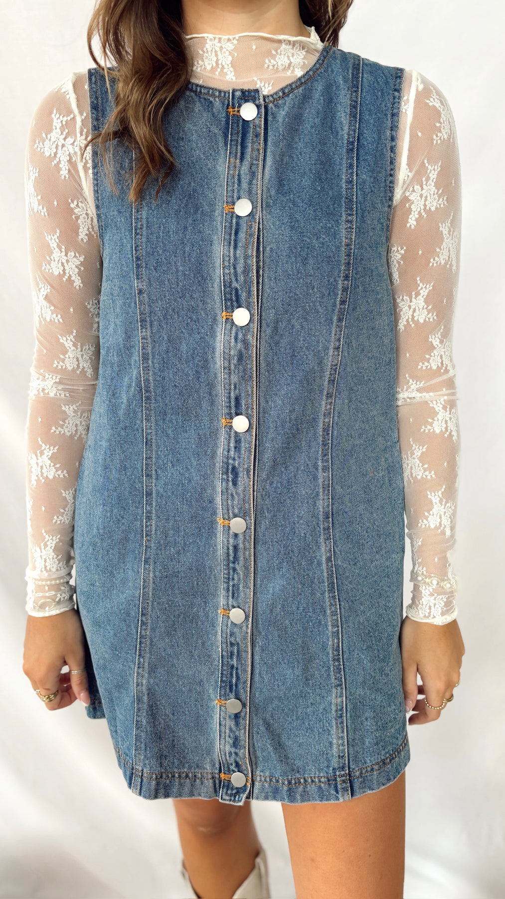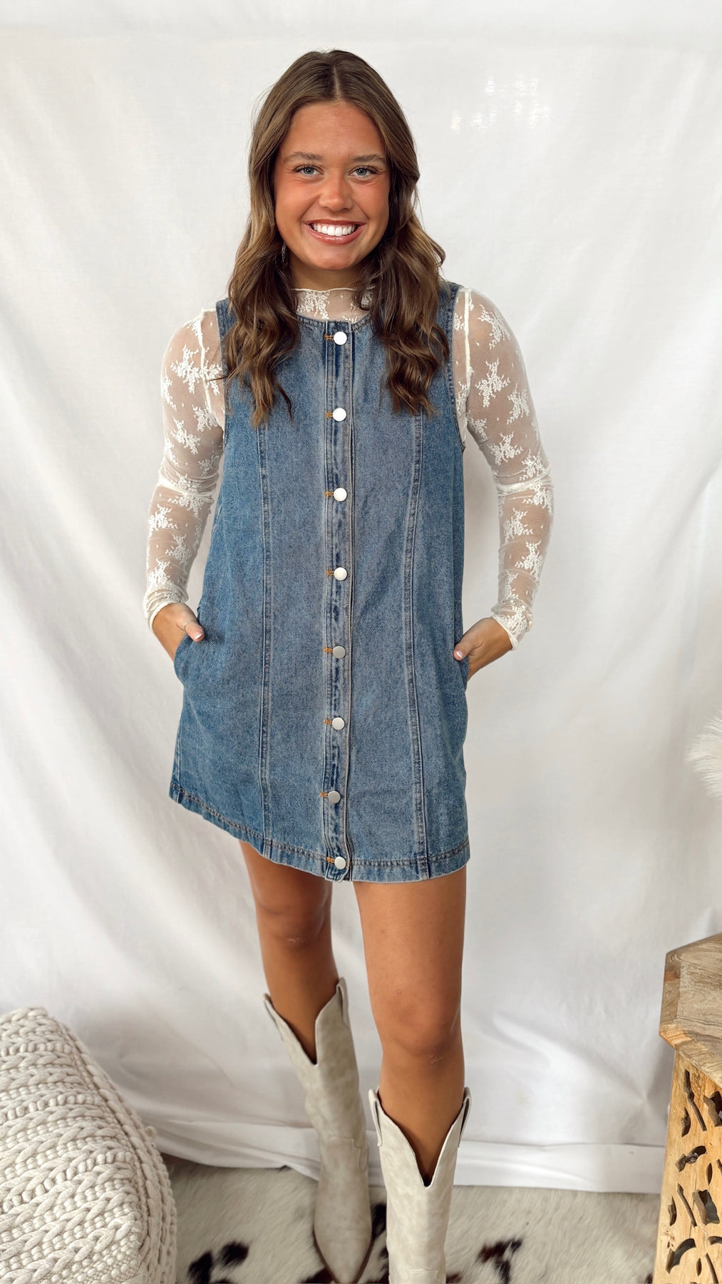 The Layla Dress is a playful button-down denim dress that’s perfect for any casual day. Its classic denim fabric pairs effortlessly with a relaxed fit, making it easy to wear from brunch to weekend adventures.