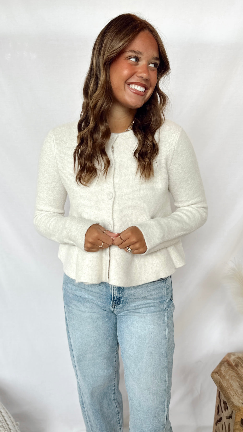 The No Doubt Cardigan blends classic comfort with a playful twist. Its warm tan shade and button-down front offer easy, everyday style, while the fit and flair waist adds a fun, flattering shape that moves with you.