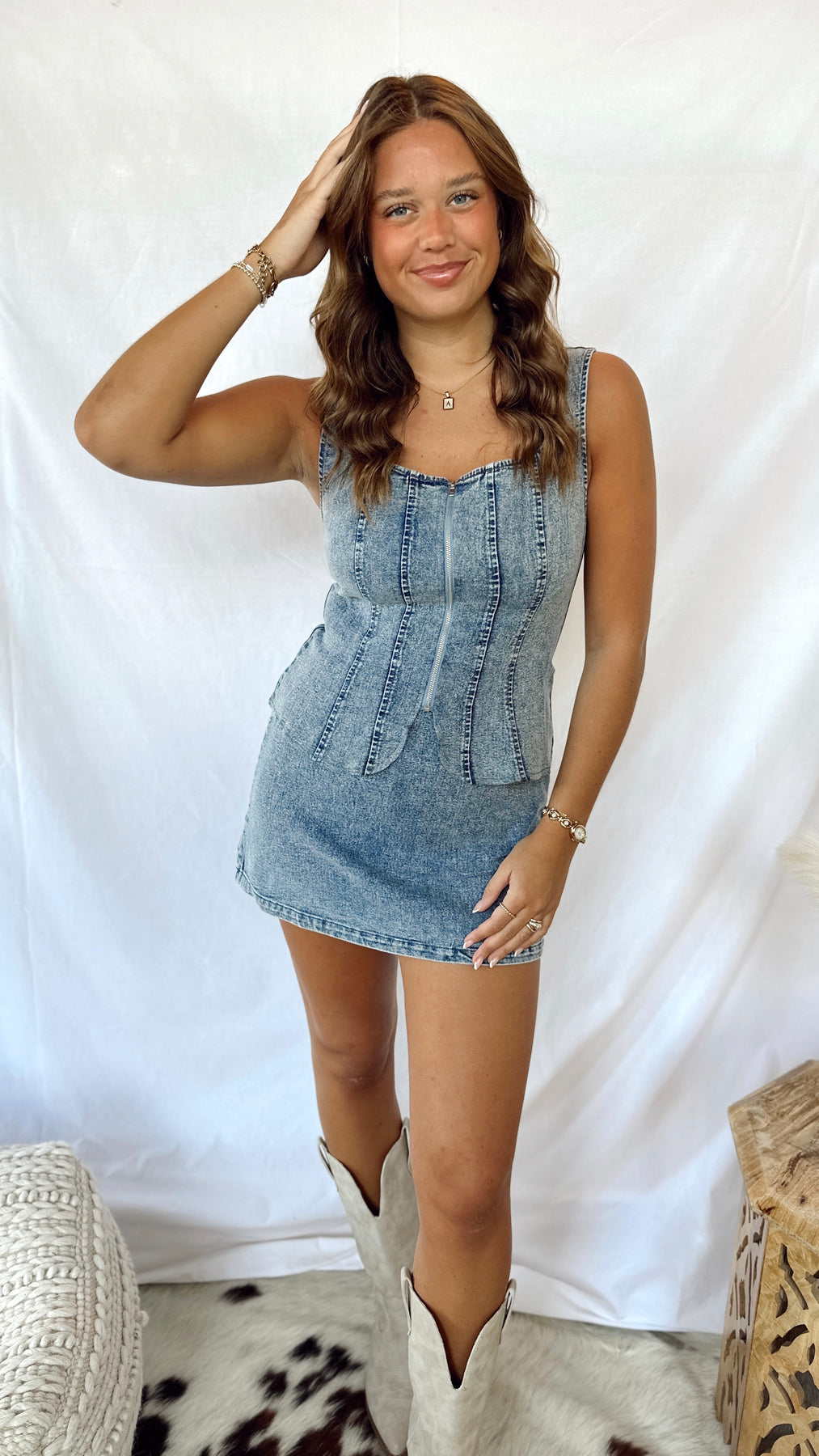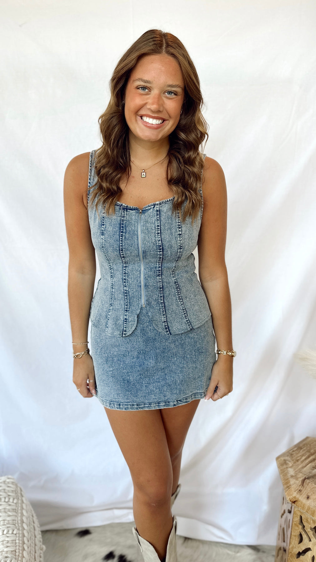 The On Repeat Romper is a playful twist on classic denim, featuring a sleek zipper top for easy wear and a skirt-style bottom that adds a flirty vibe. Perfect for casual outings or weekend adventures, this romper combines comfort and style effortlessly.