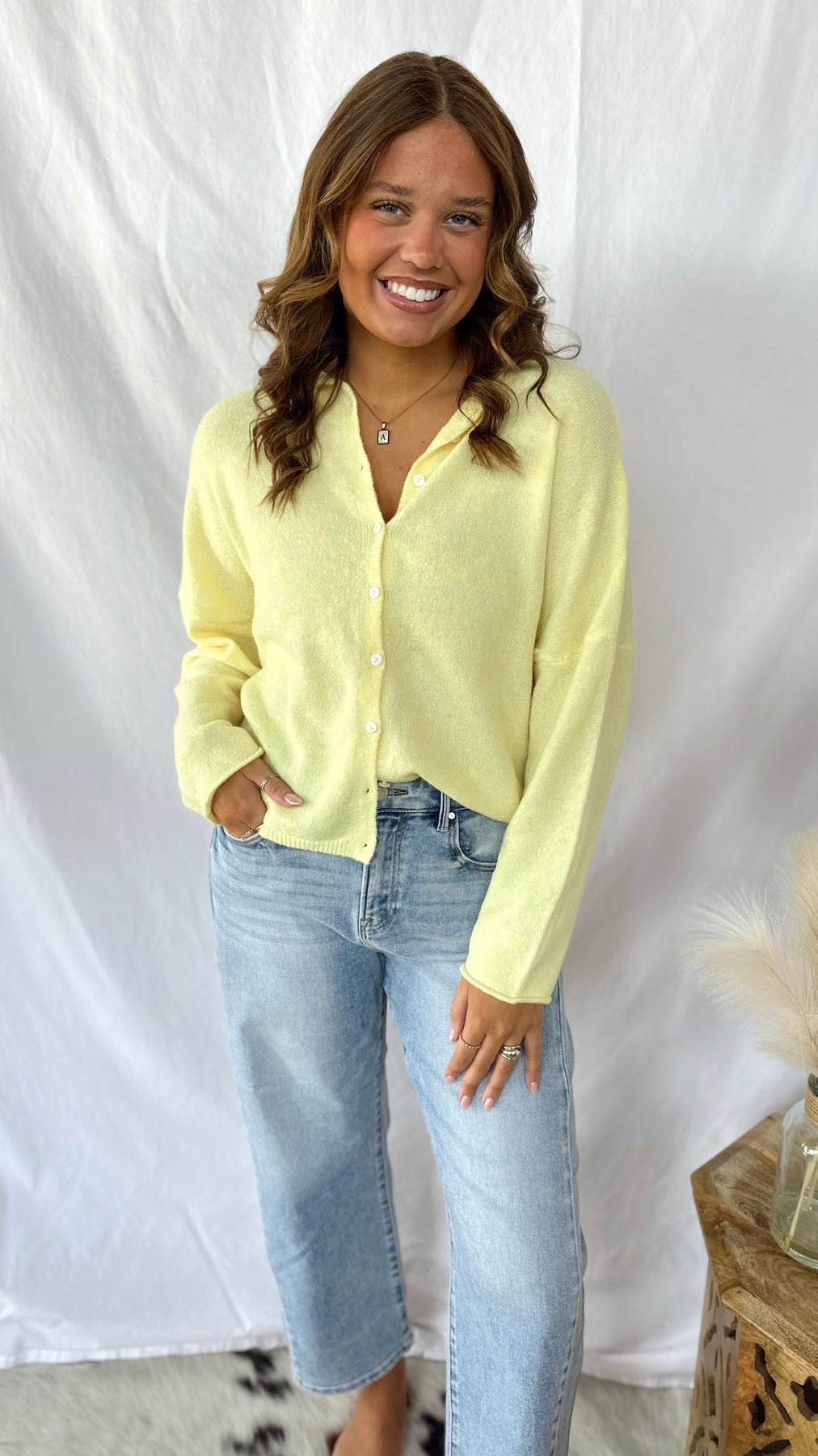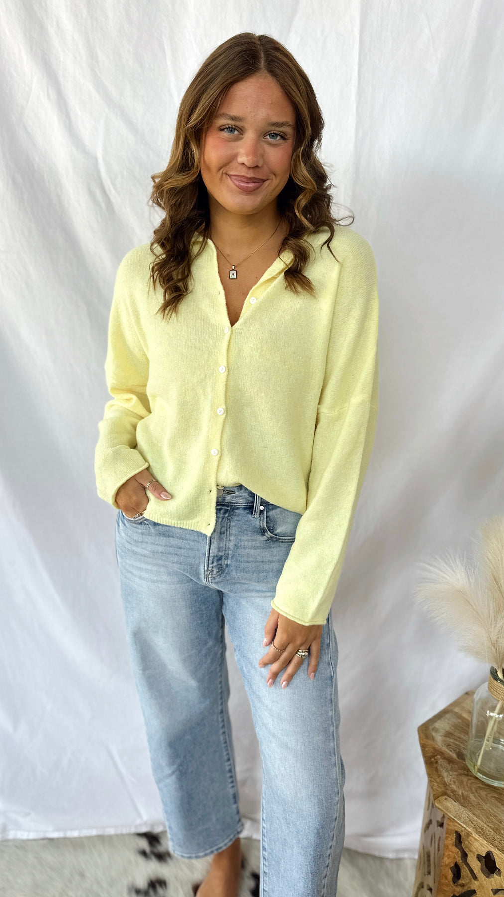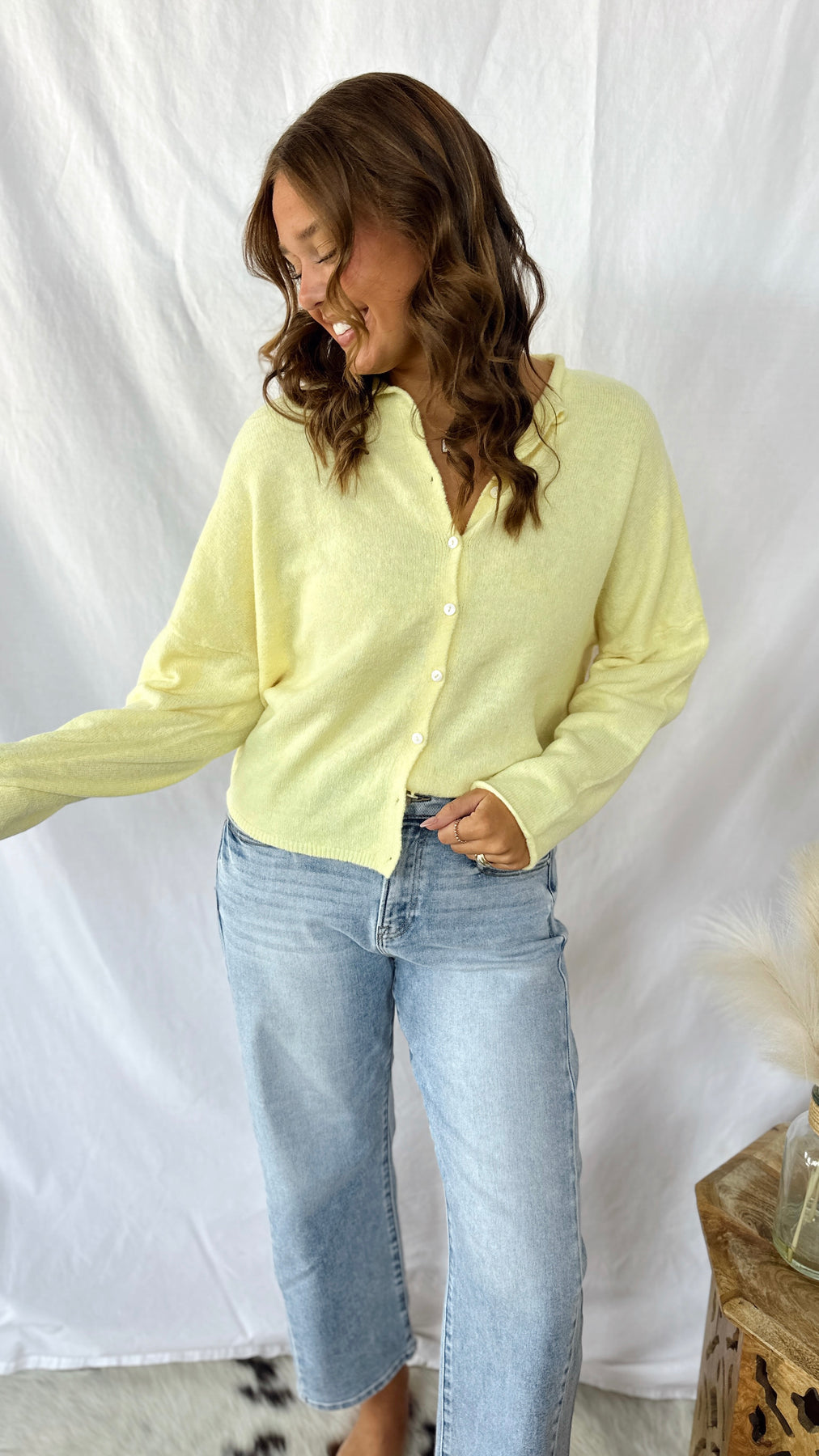 The Happy Days Ahead Sweater is your new go-to for effortless style. This cheerful light yellow knit features charming button-up details that add personality to any outfit.