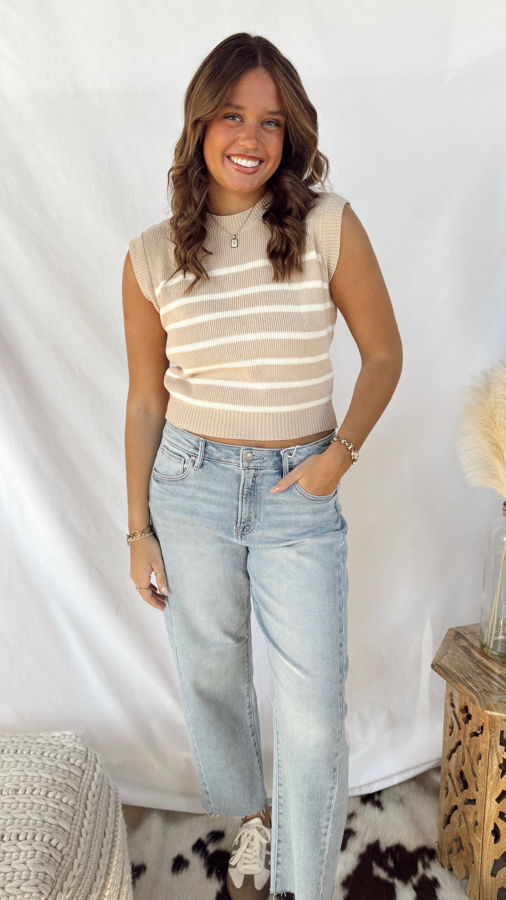 The Avery Top brings effortless style to your everyday rotation. This striped sweater top features a classic pattern that pairs with everything in your closet—dress it up with tailored trousers or keep it casual with your favorite jeans.