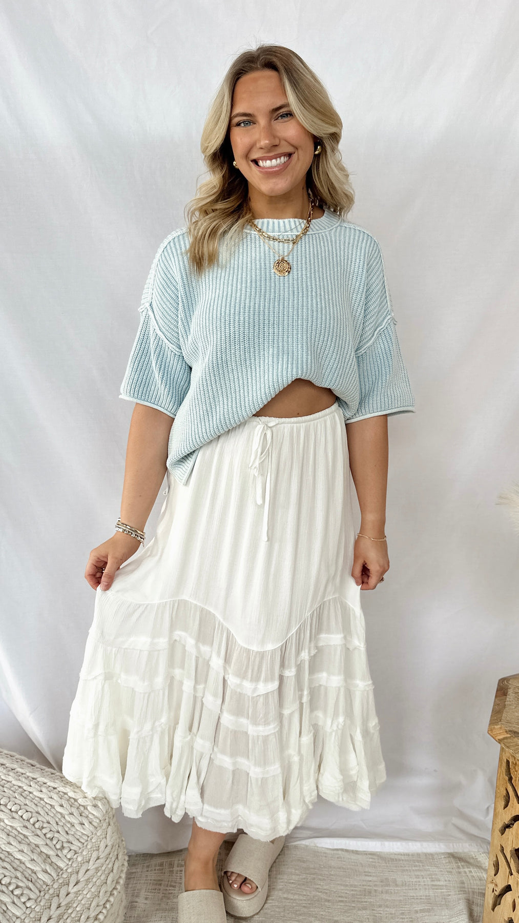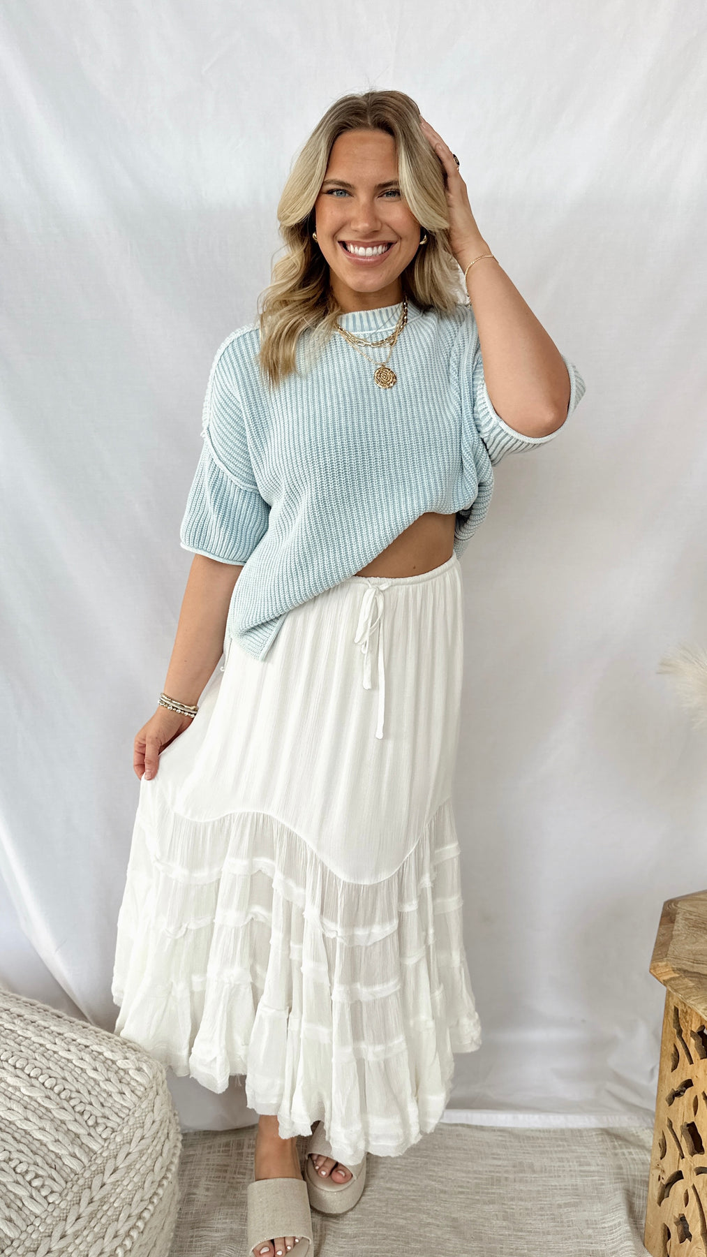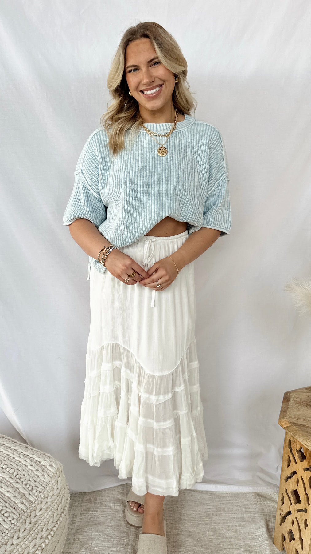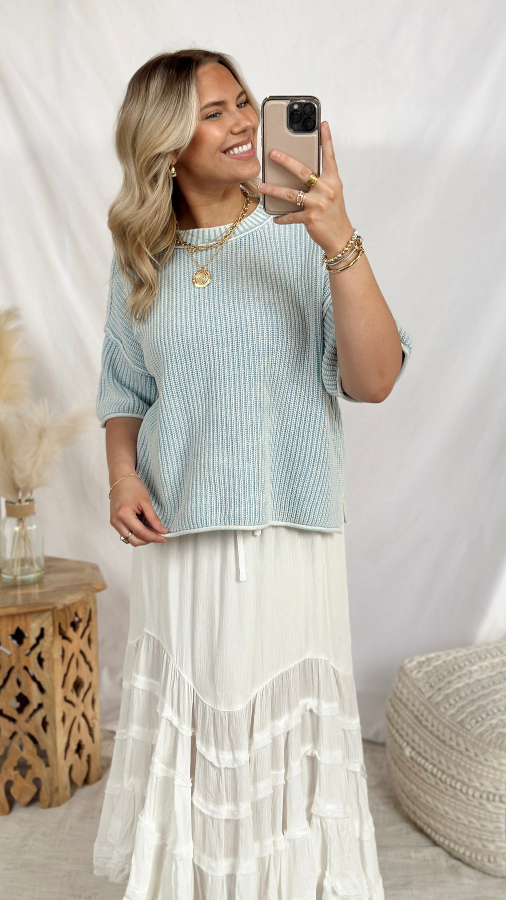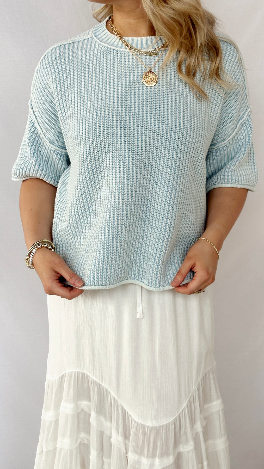 The Leah Top is your new go-to for effortless style. This boxy light blue sweater delivers cozy comfort with a relaxed, modern silhouette that works with everything in your closet.