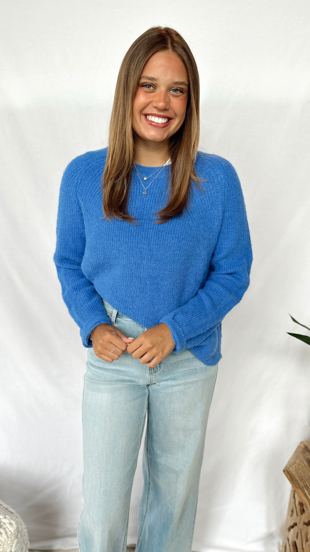 The Lori Sweater is your new go-to for cozy days, available in cheerful blue and playful pink. Its long sleeves keep you warm while adding a splash of color to your outfit. Perfect for layering or wearing on its own, this sweater combines comfort with a fun, simple style you'll love.