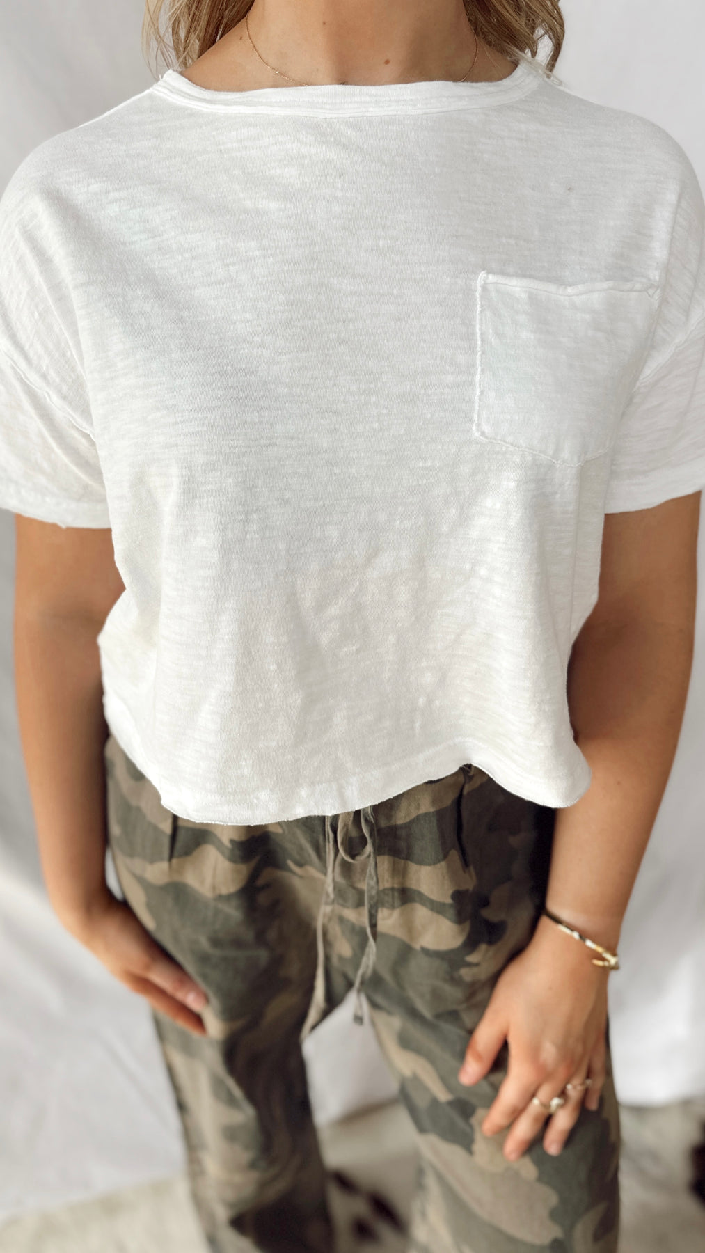 The Oakley Tee is your new go-to for effortless style. This crisp white cropped tee hits just right—perfect for pairing with high-waisted jeans, skirts, or layering under your favorite jacket. The clean, timeless cut works for everything from casual hangouts to dressed-up moments. Soft, comfortable, and versatile enough to wear year-round, it's the kind of piece that makes getting dressed actually fun.