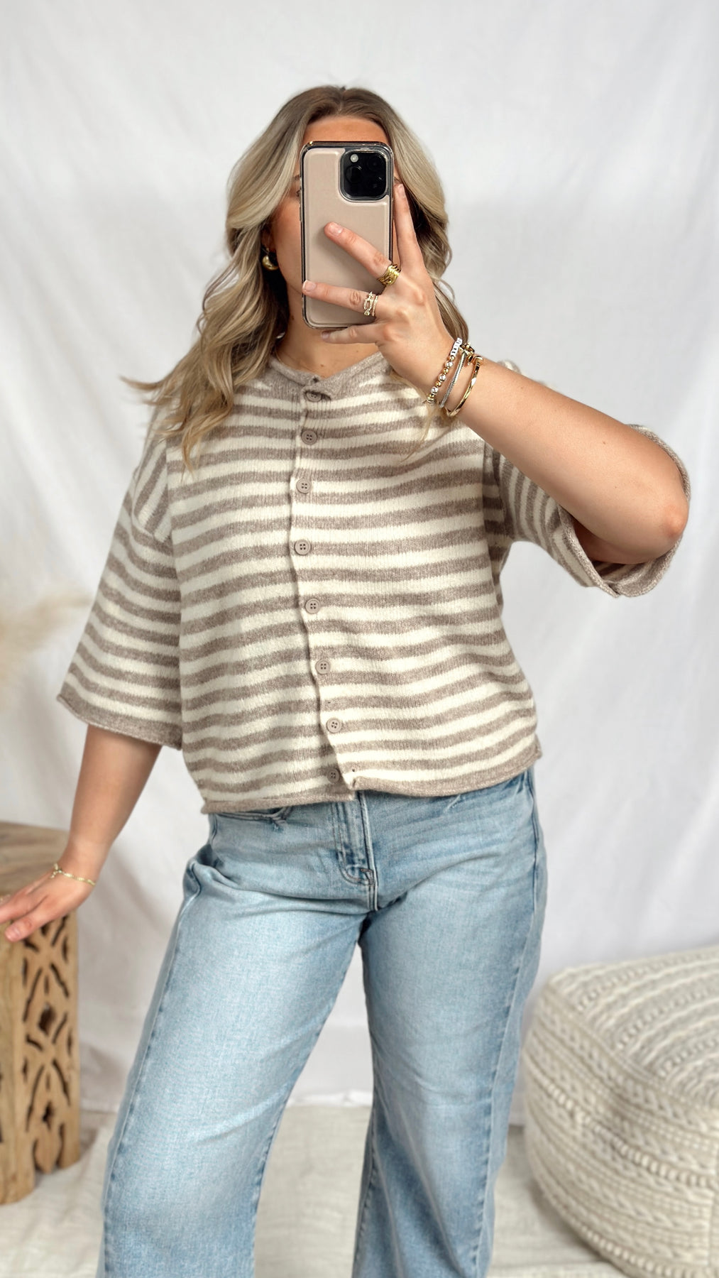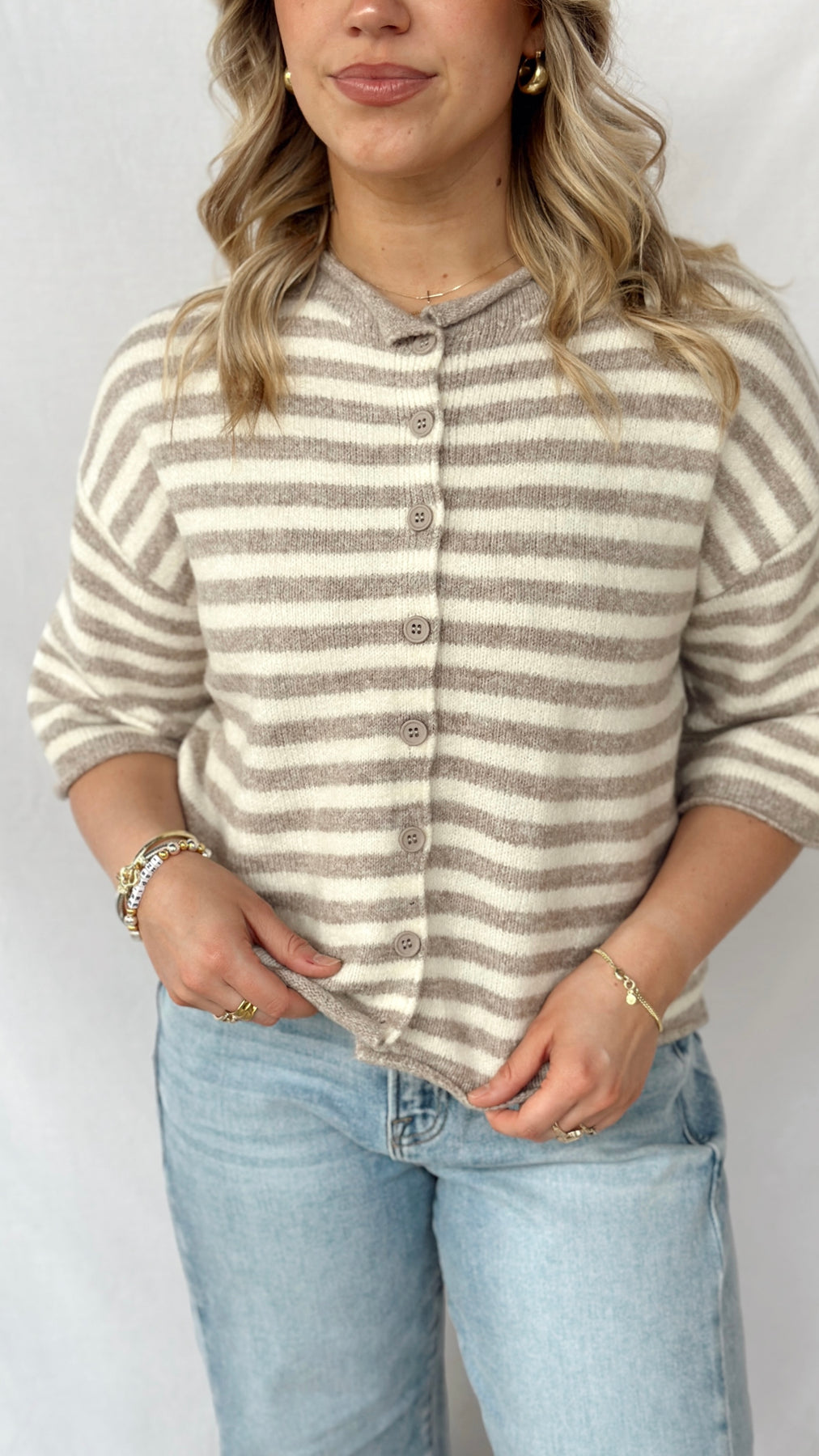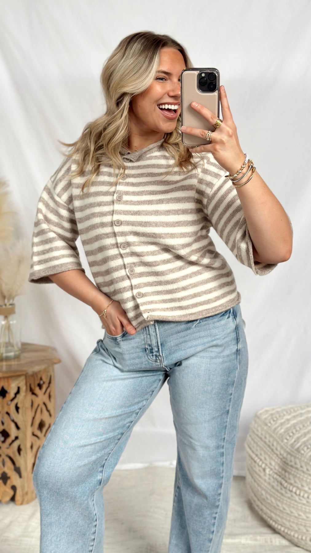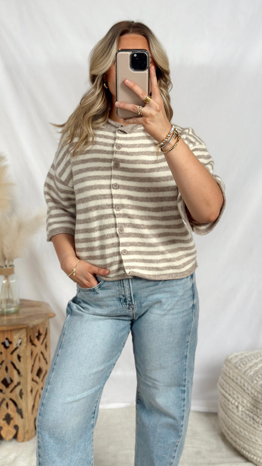 Layer up with The Stick With It Top, a charming striped quarter-sleeve cardigan that's perfect for any season. This cozy knit sweater features classic stripes and a relaxed fit that works with everything in your closet.
