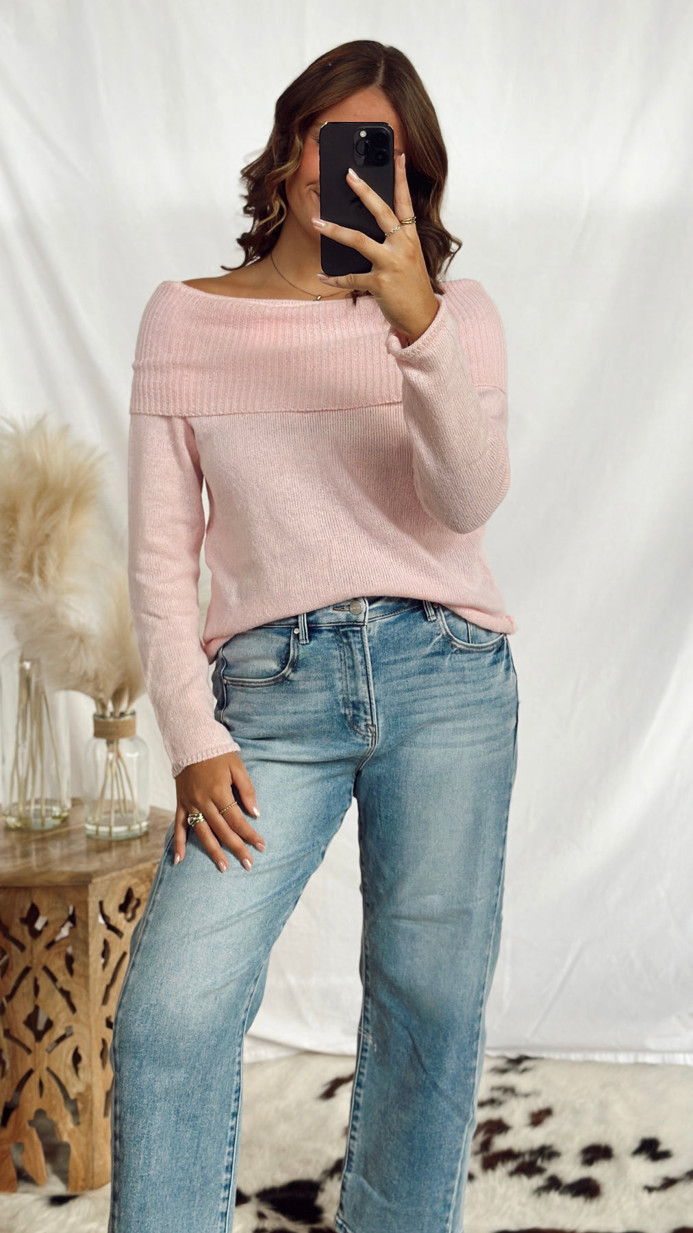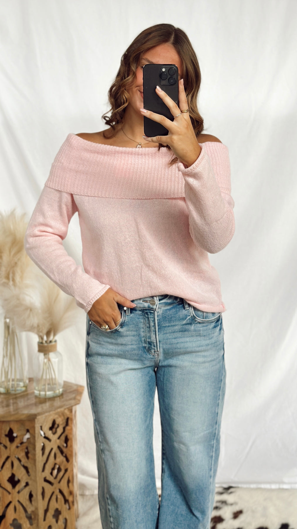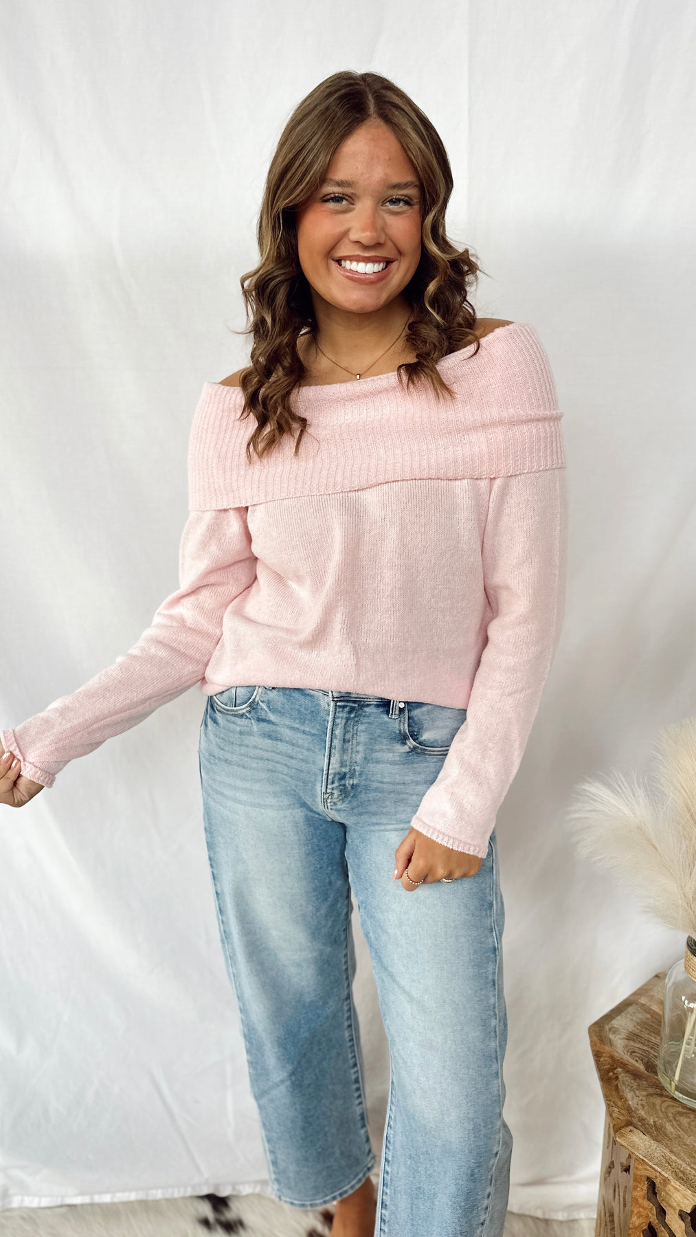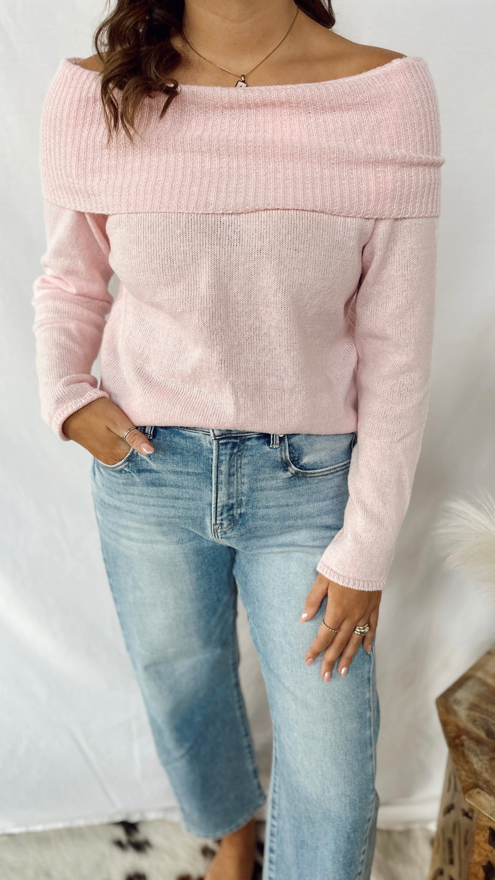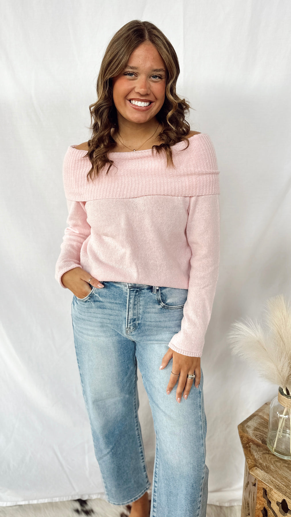 Get cozy and stylish with The Sweet Tart Sweater! This light pink, off the shoulder sweater is super soft and features long sleeves. Perfect for a fun and simple look that will keep you warm and comfortable.