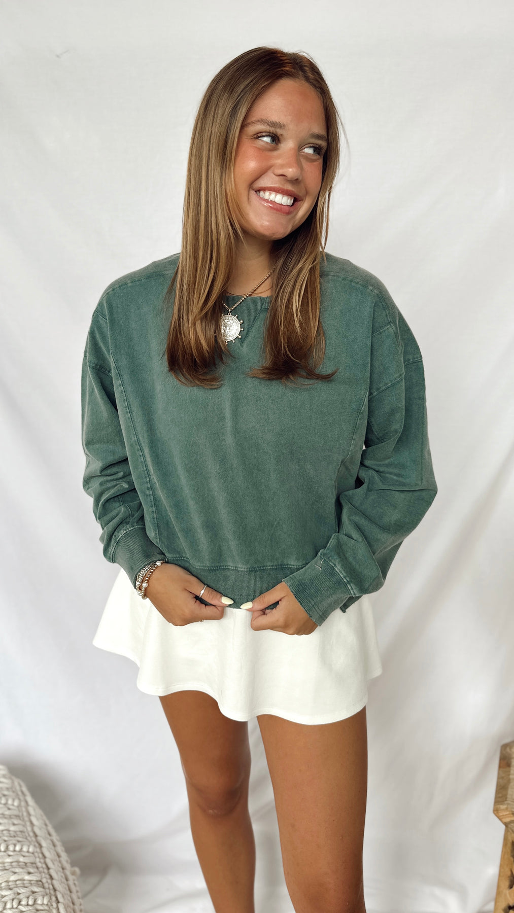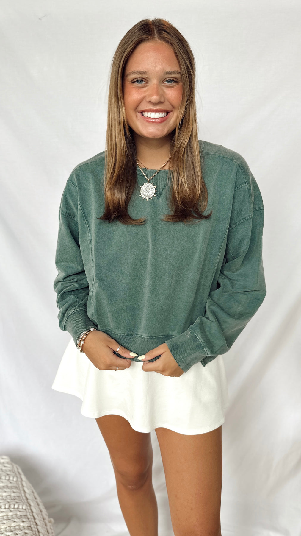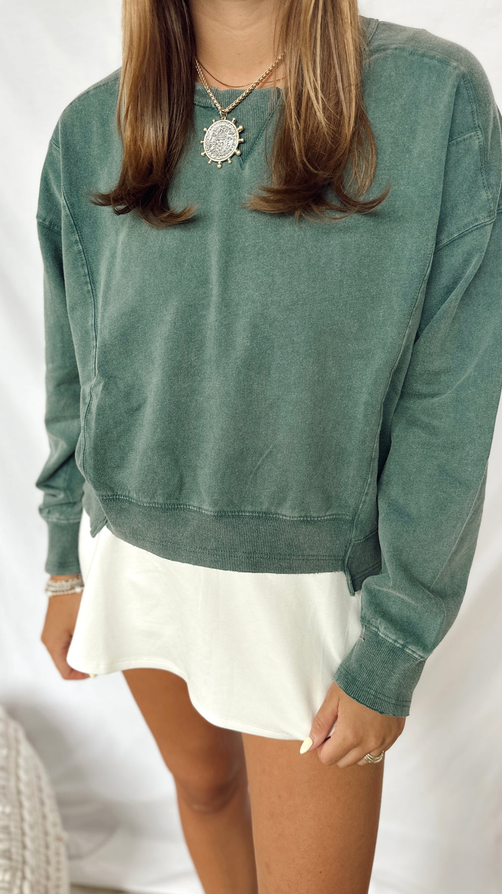 Cozy up in The Forest Top, a deep green sweatshirt that’s perfect for laid-back days. Soft and comfy, it brings a splash of nature-inspired color to your casual wardrobe.