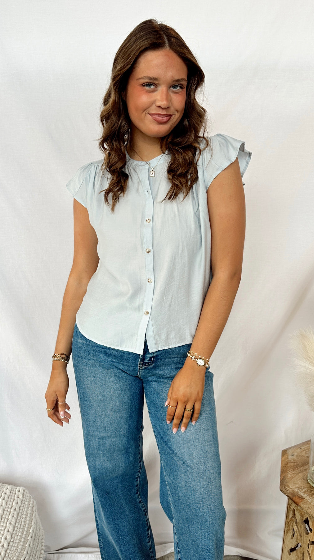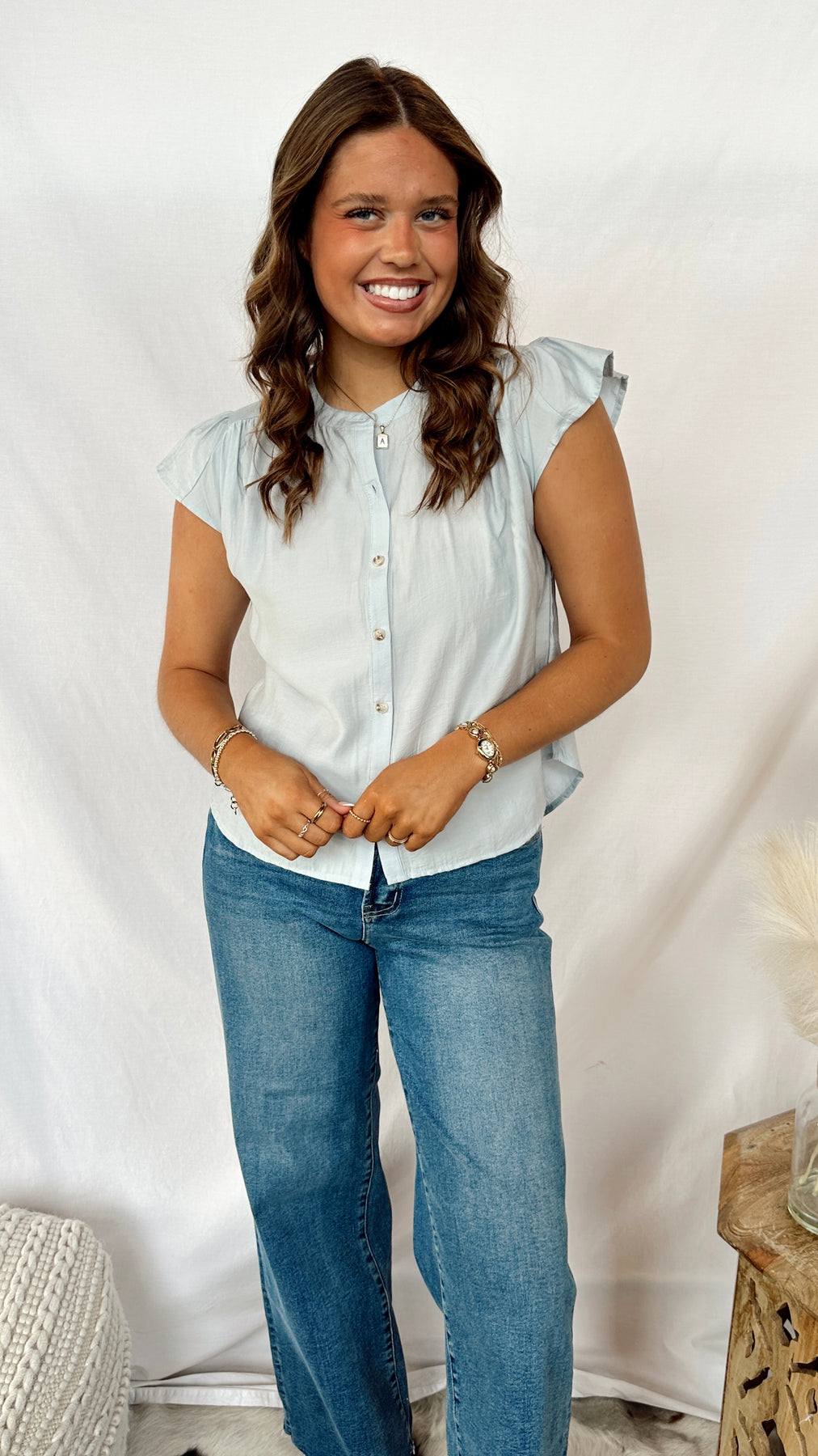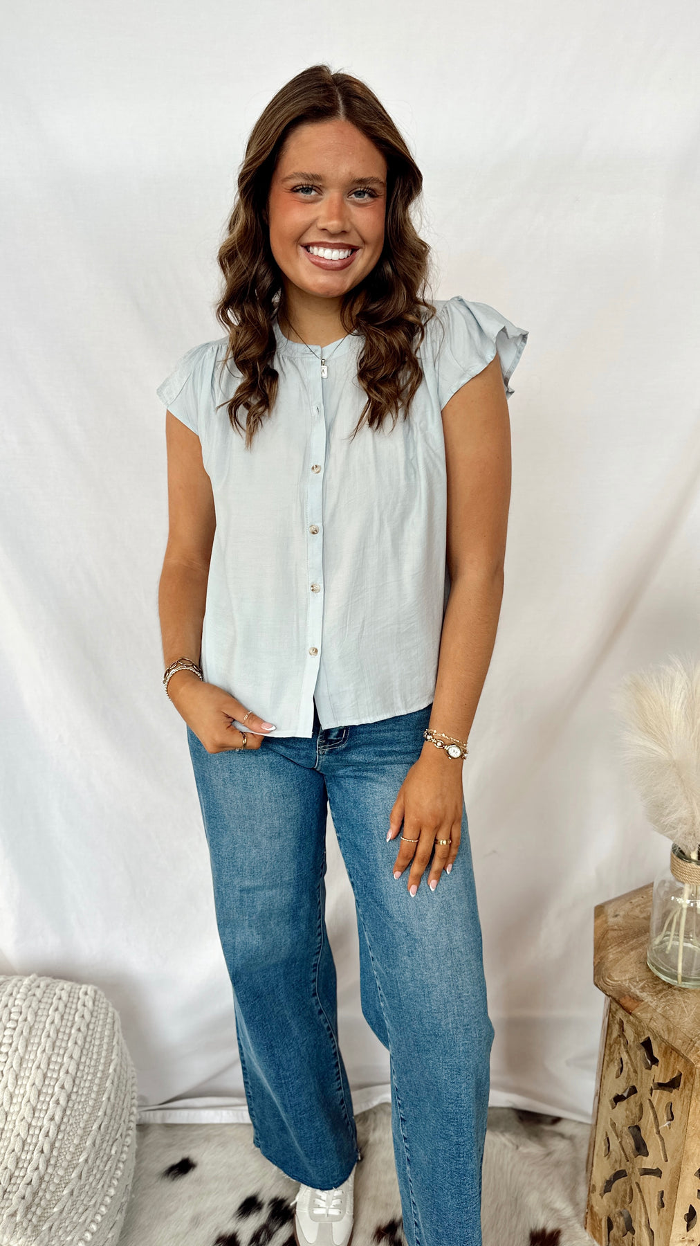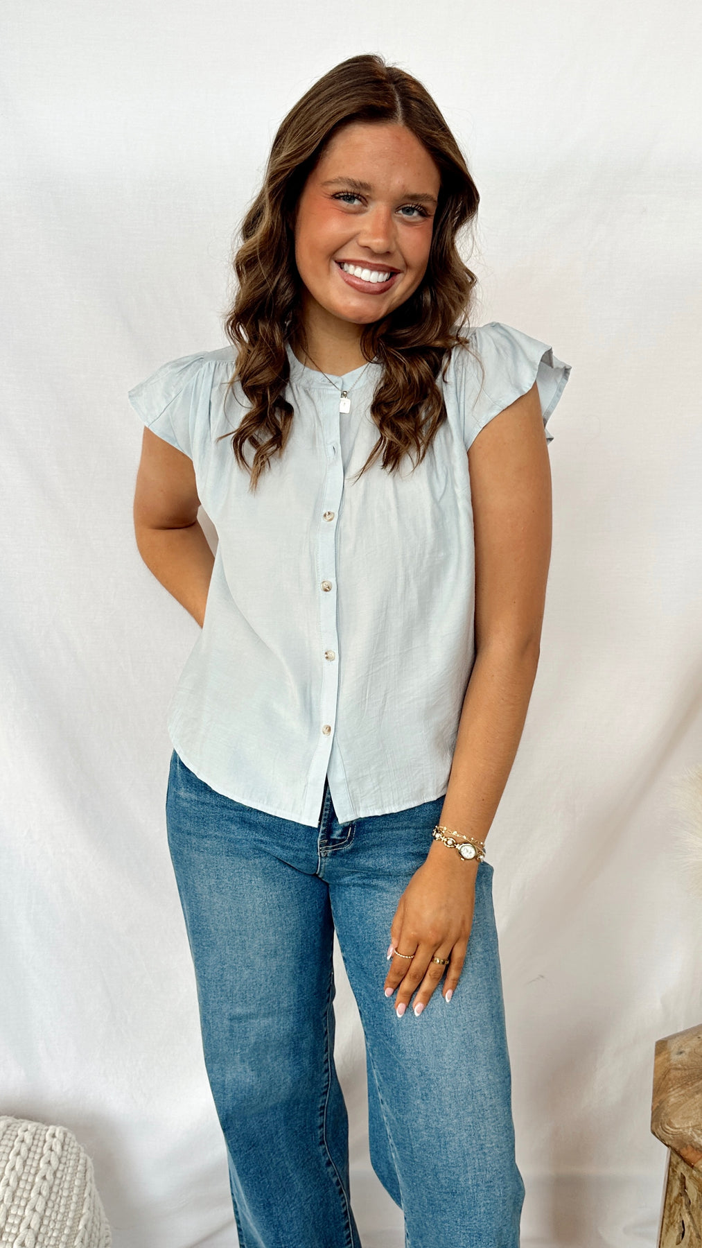 The Poet Blouse is your go-to piece for effortless style. This lightweight blouse features a classic button front that makes getting dressed a breeze—dress it up with tailored pants or keep it casual with your favorite jeans. The airy fabric is perfect for layering or wearing solo, making it a versatile addition to any wardrobe. Whether you're heading to the office or out for the weekend, this blouse delivers comfort without compromising on charm.