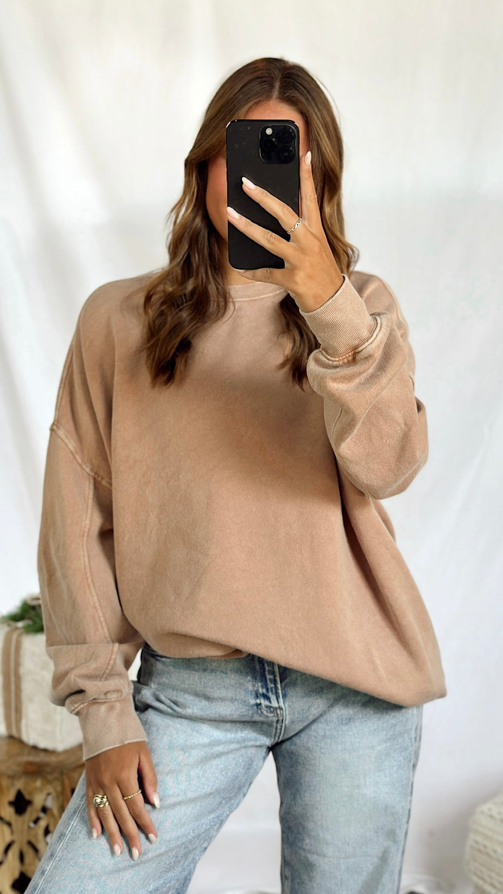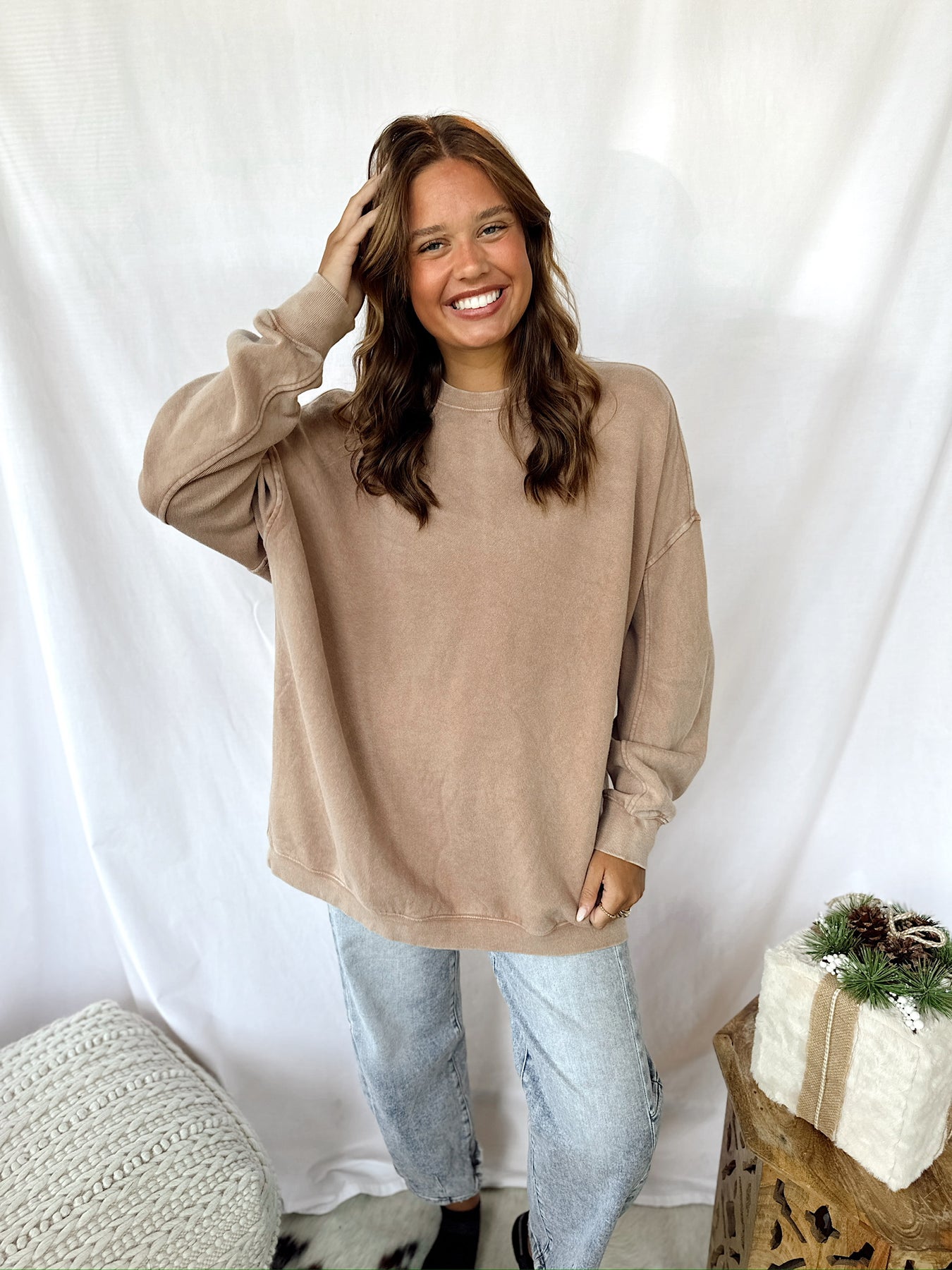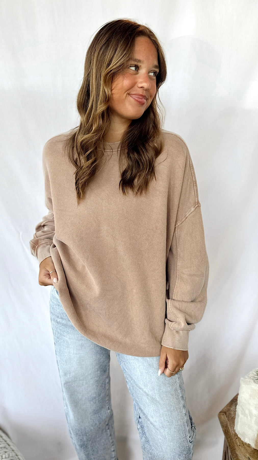 Cozy up in the Elsie Oversized Sweatshirt, featuring a lovely mauve shade and long sleeves for all-day comfort. Its knee-length cut makes it perfect for casual outings or lounging in style.