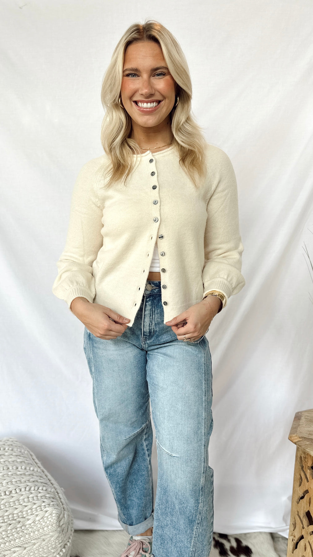 Cozy up in The Maple Cardigan, featuring a charming cream color and easy button-front design. Perfect for layering, it adds a touch of warmth and style to any outfit with a fun, casual vibe you’ll love wearing all season long.