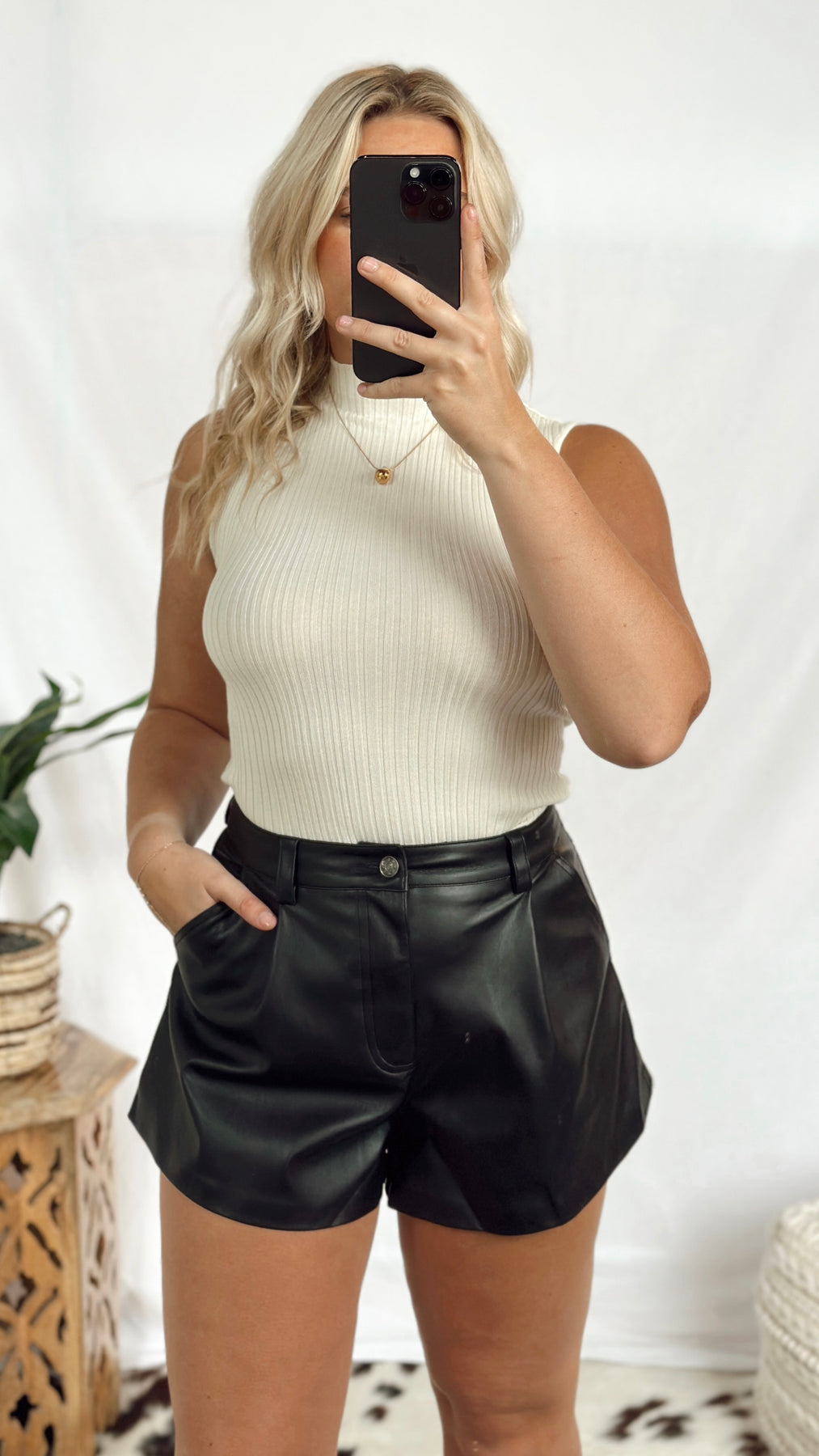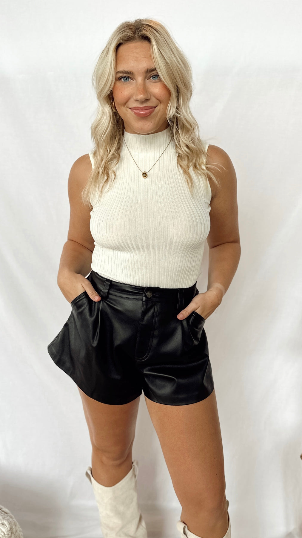 This fun and simple tank top, The Paparazzi Tank, features a cream ribbed mock neck design that is both comfortable and stylish. Perfect for any occasion, it is sure to turn heads and make you feel like a celebrity.
