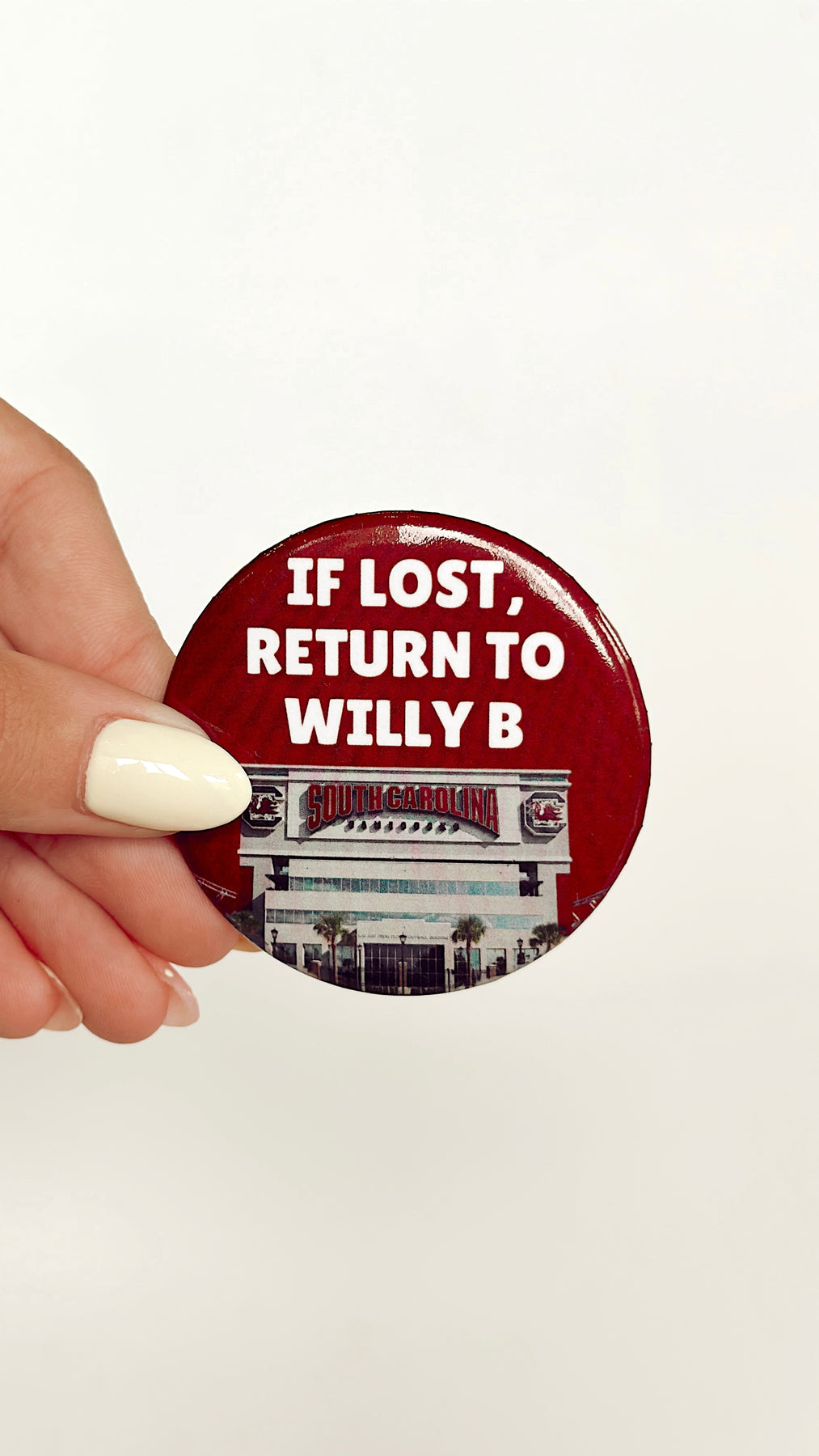 Show your Carolina Gamecocks pride with the If Lost Return To Willy B Pin! This fun and simple accessory is perfect for fans who want to keep a little piece of their favorite football stadium close. Whether you’re at the game or out and about, this pin adds a playful touch to your outfit while reminding everyone where you belong. Easy to wear and a great conversation starter!