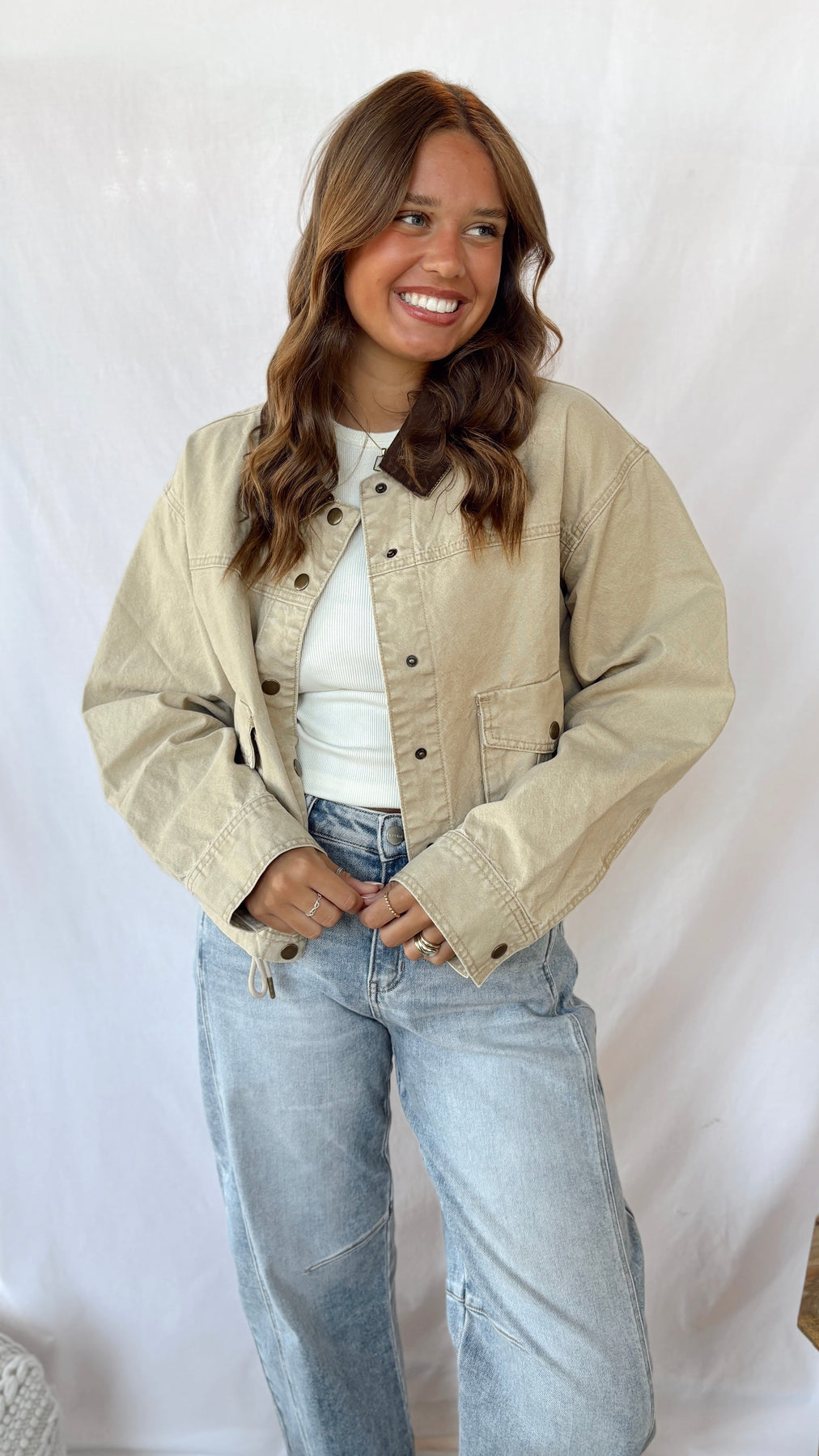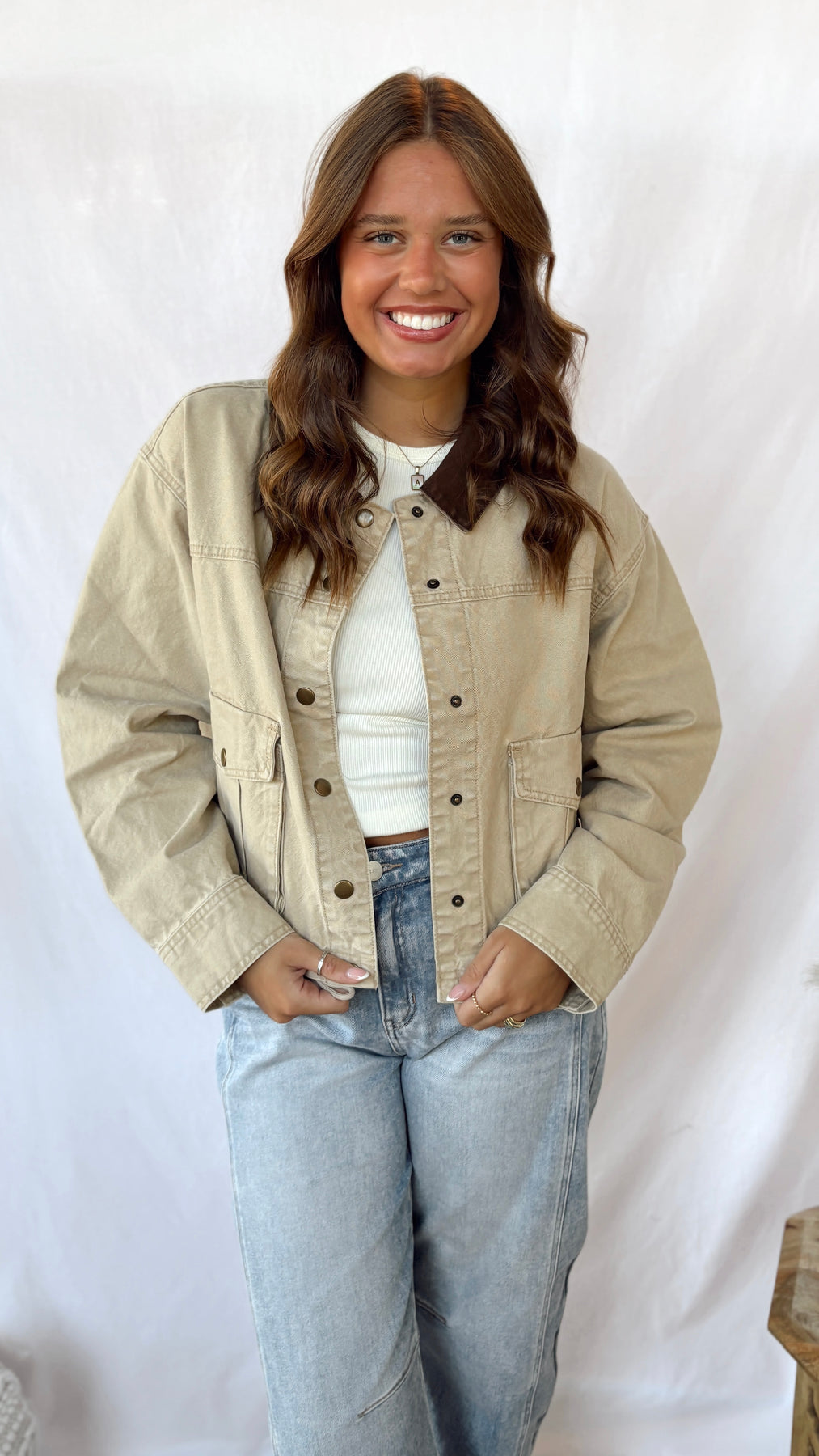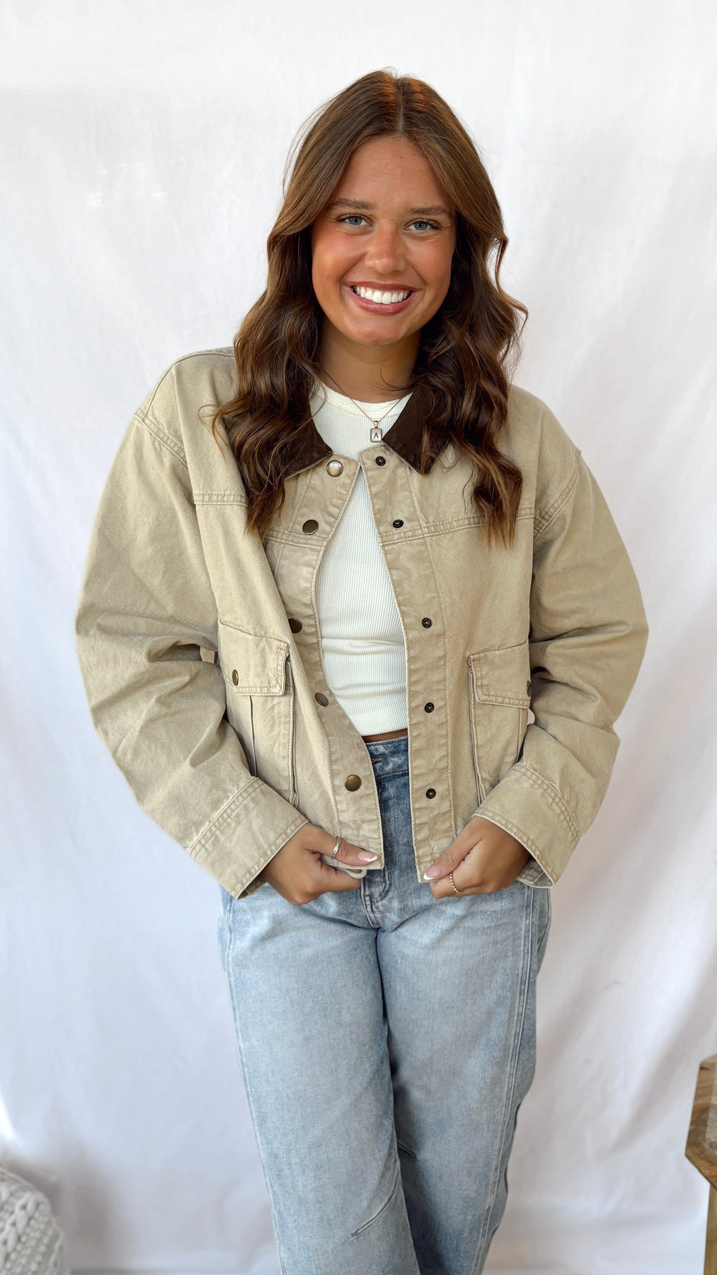The Nicole Jacket is a playful and practical piece for your little one. Its tan color pairs perfectly with a cozy dark brown collar, adding a touch of charm. Featuring handy utility-style pockets, this jacket is as functional as it is cute, perfect for holding treasures or snacks on any adventure.