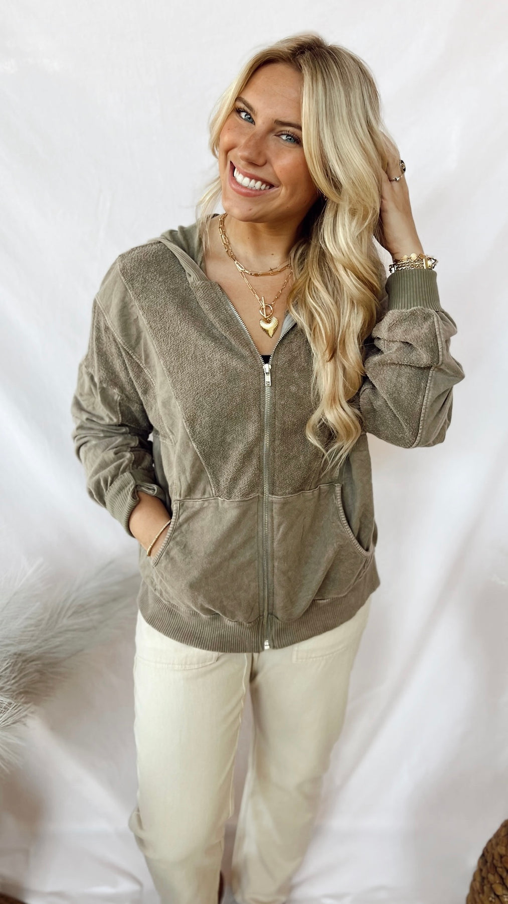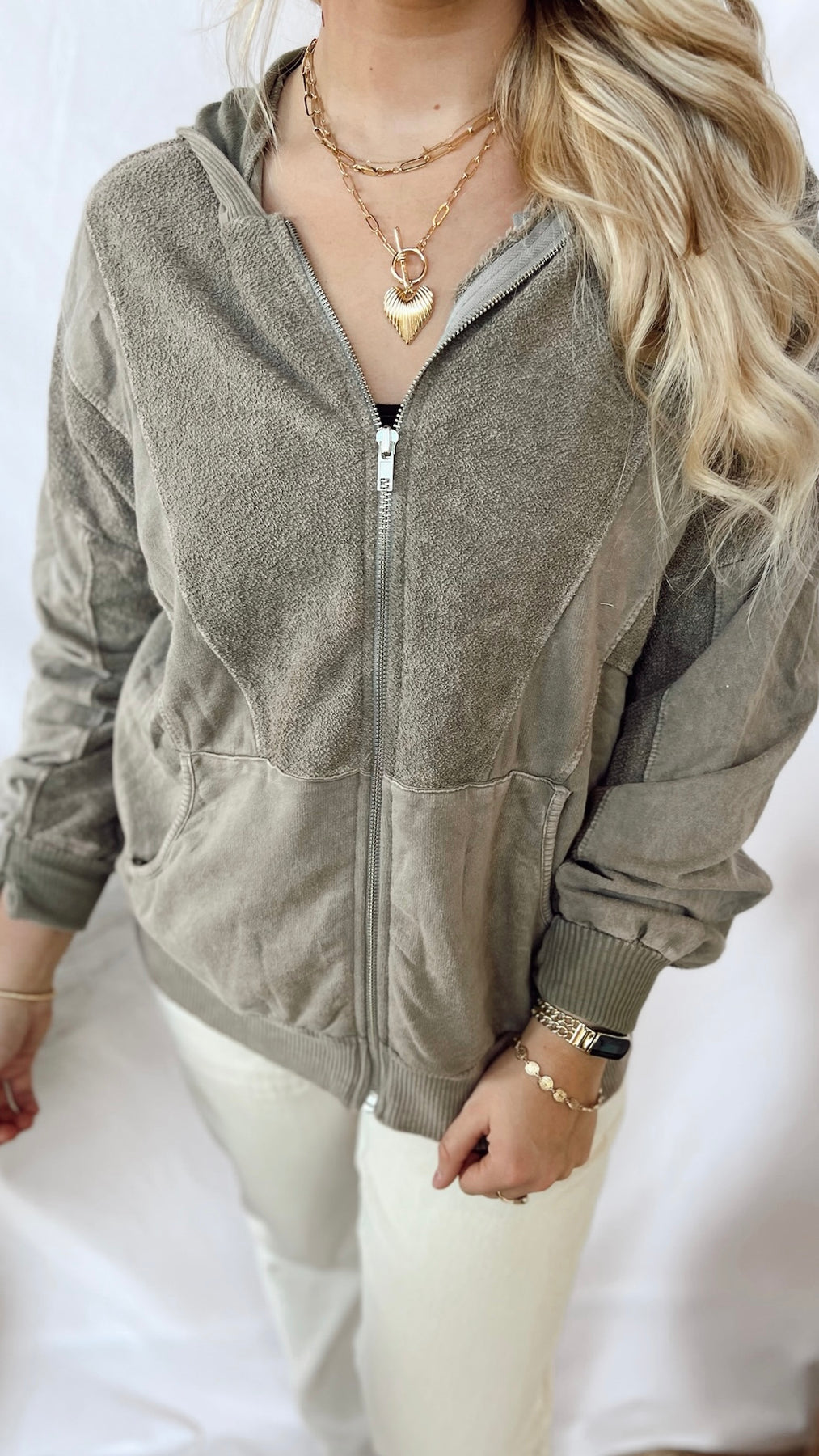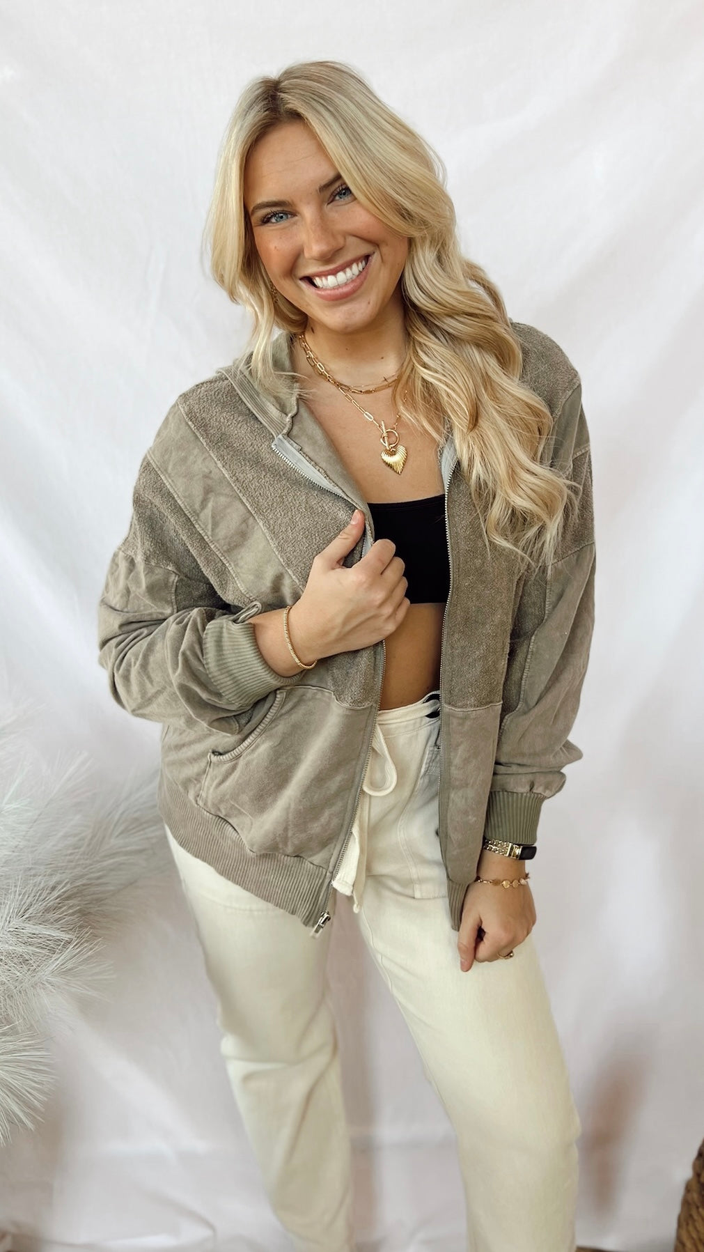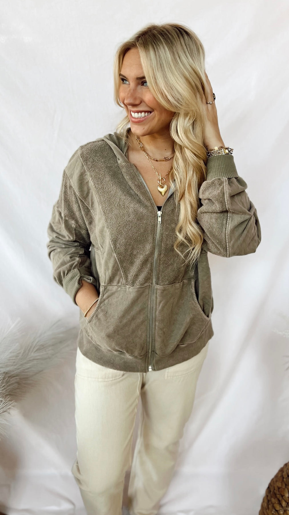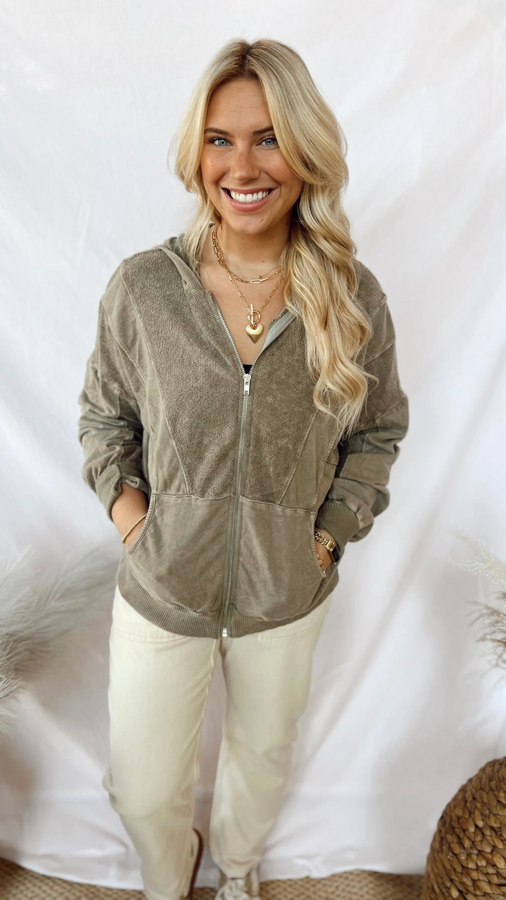 Stay warm and stylish this October with The October Jacket. This green oversized jacket features a convenient zip-up front for easy wear. Embrace the fall weather in comfort with this must-have piece.