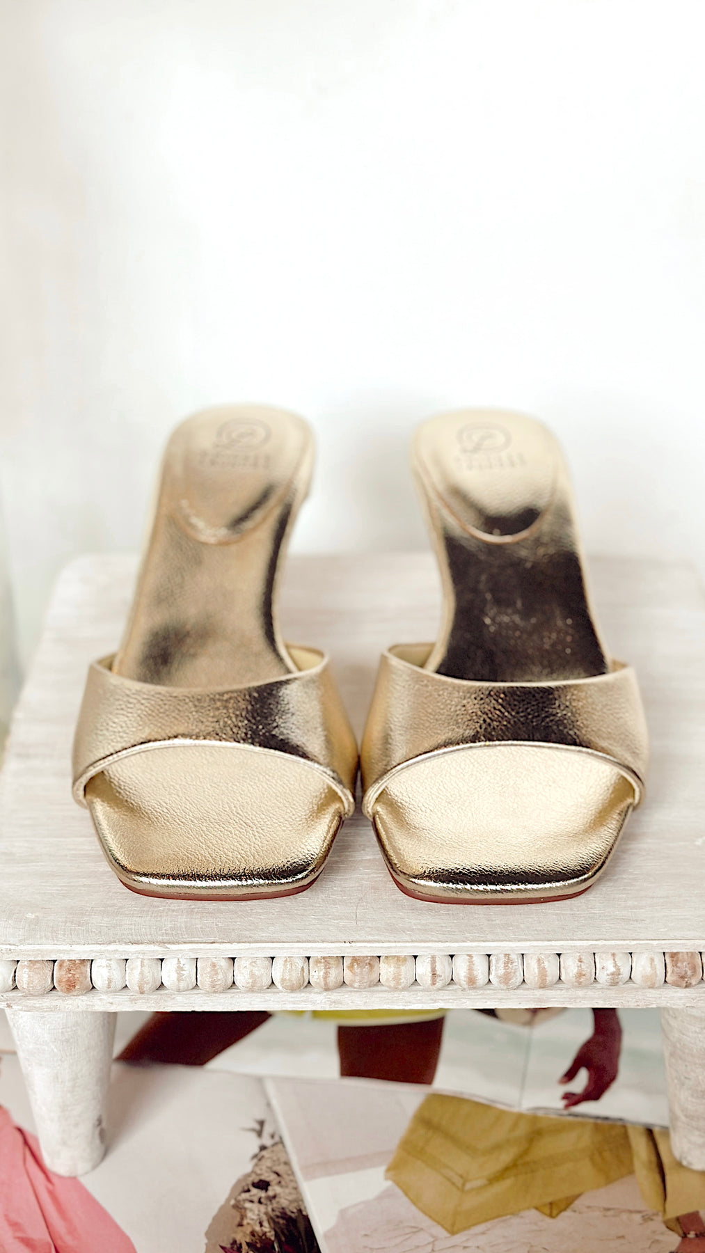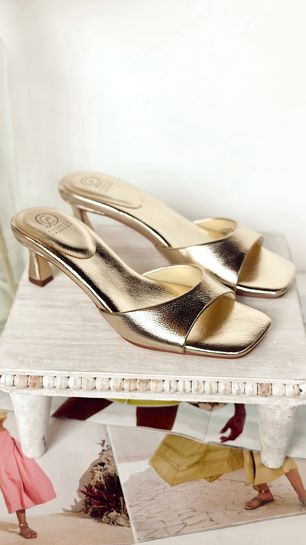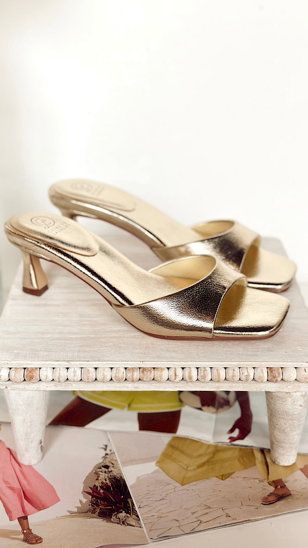 Get ready to shine with The Lomita Metallic Kitten Heel! This stylish shoe features a metallic gold kitten heel that adds a touch of glamour to any outfit. With a comfortable height and a sleek design, these heels are perfect for any occasion.