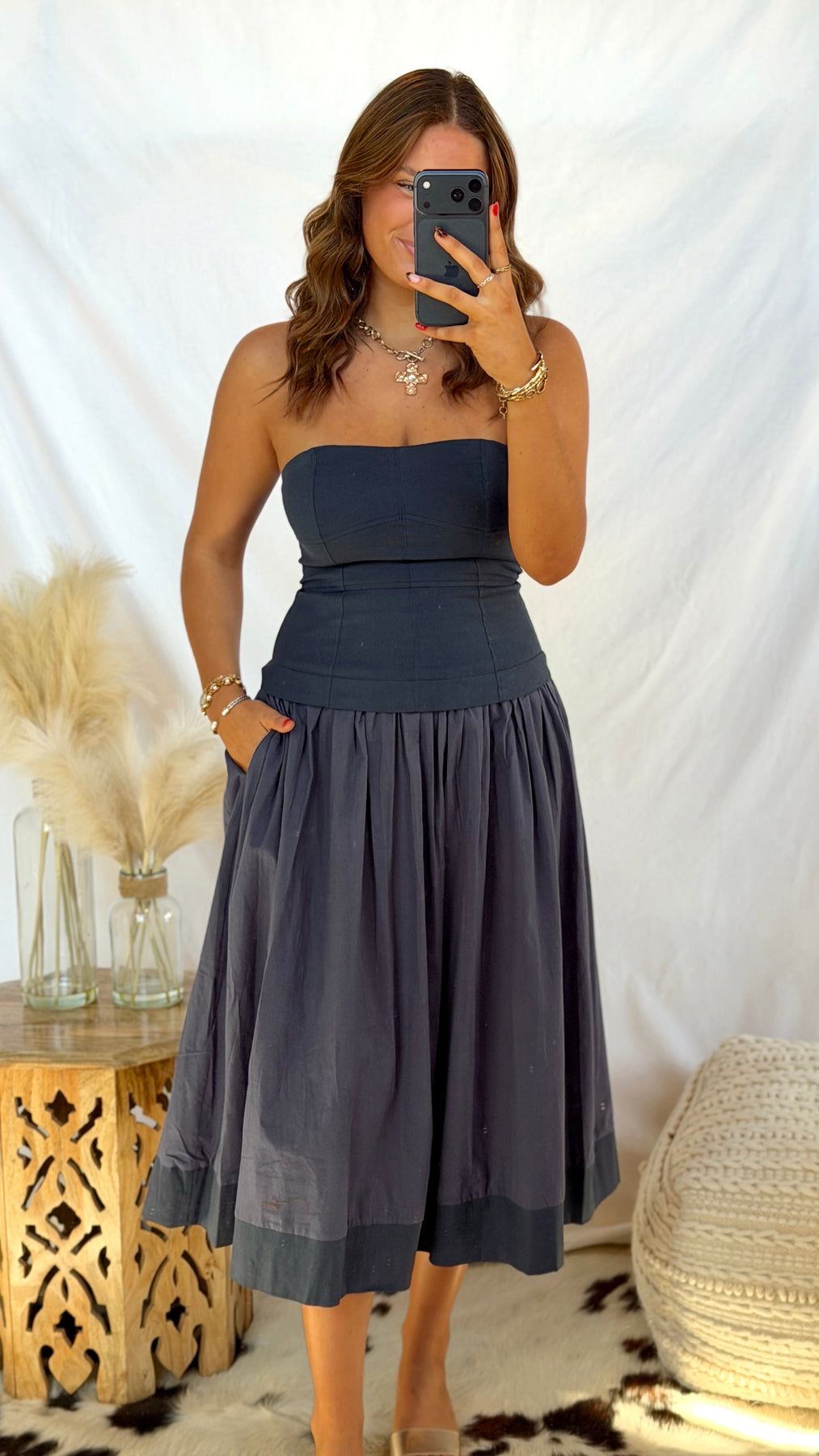 Turn heads effortlessly in The Saturday Night Dress, a sleek black strapless maxi that blends elegance with a playful vibe. Its flowing silhouette moves gracefully with you, perfect for dancing the night away or making any evening unforgettable. Simple, stylish, and ready for your next adventure!
