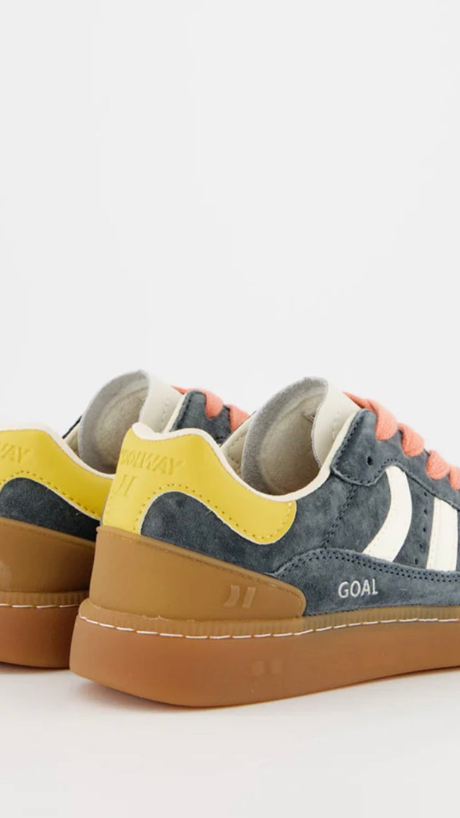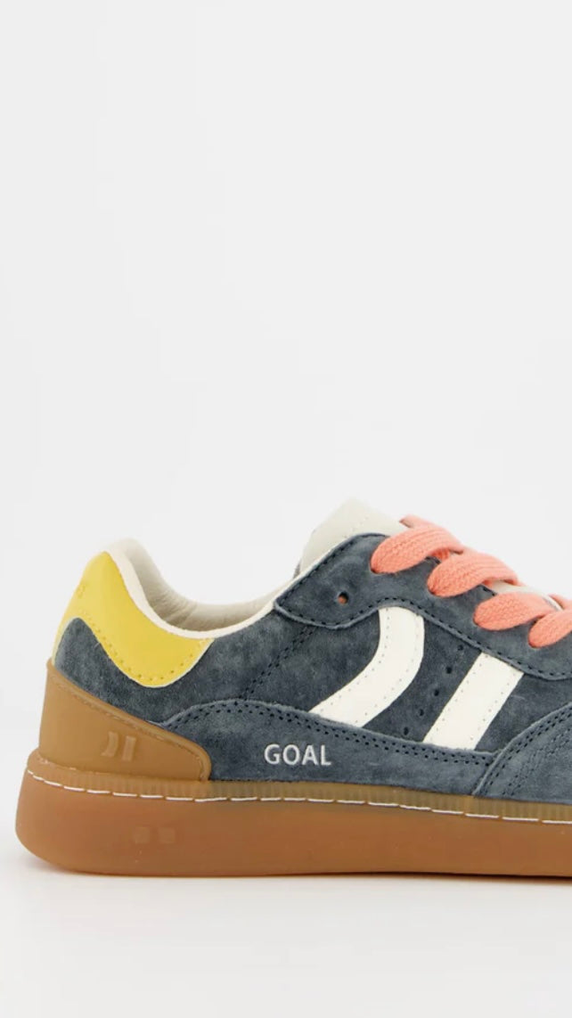 Finished with flat cotton laces in two tones and an old gold “GOAL” logo on the side—this pair blends sporty function with standout street style.