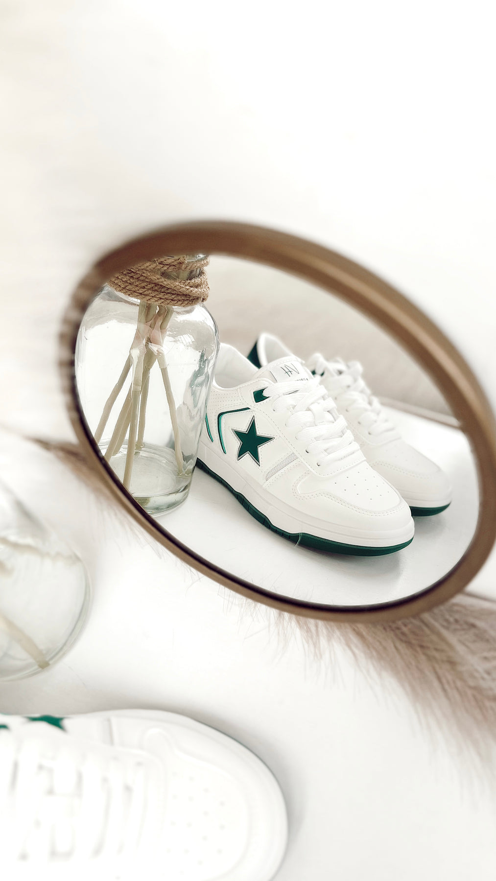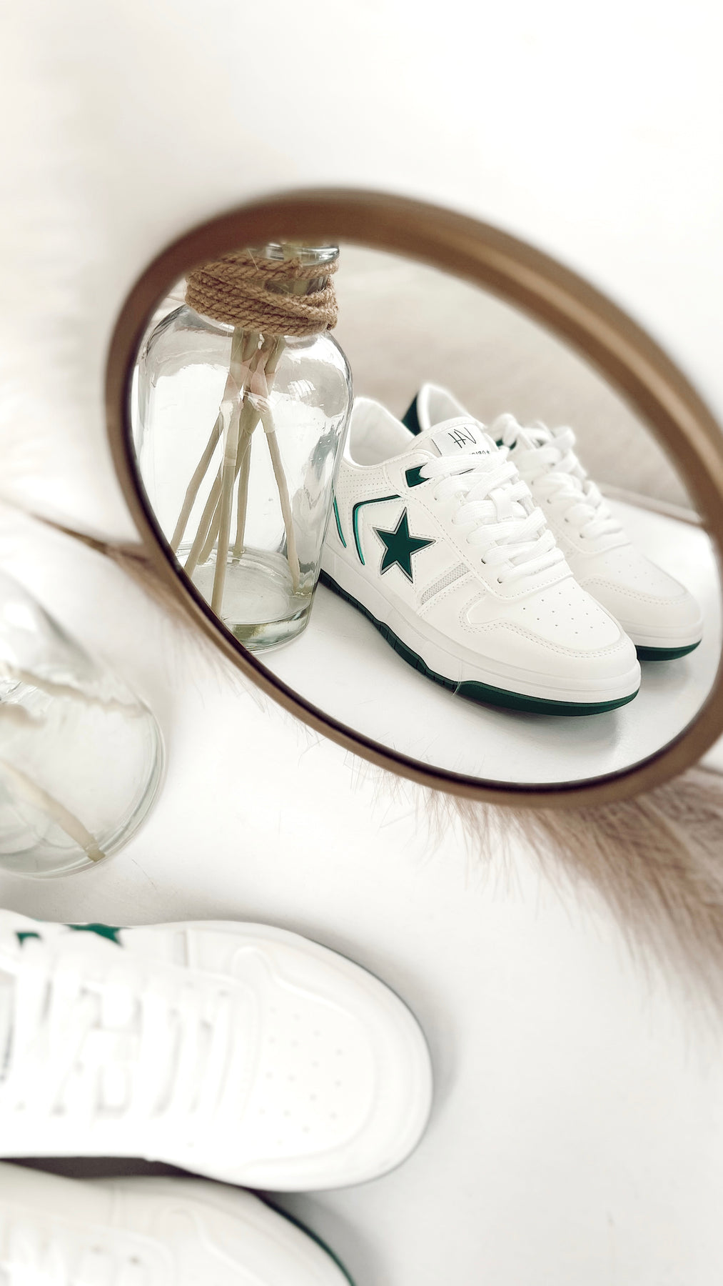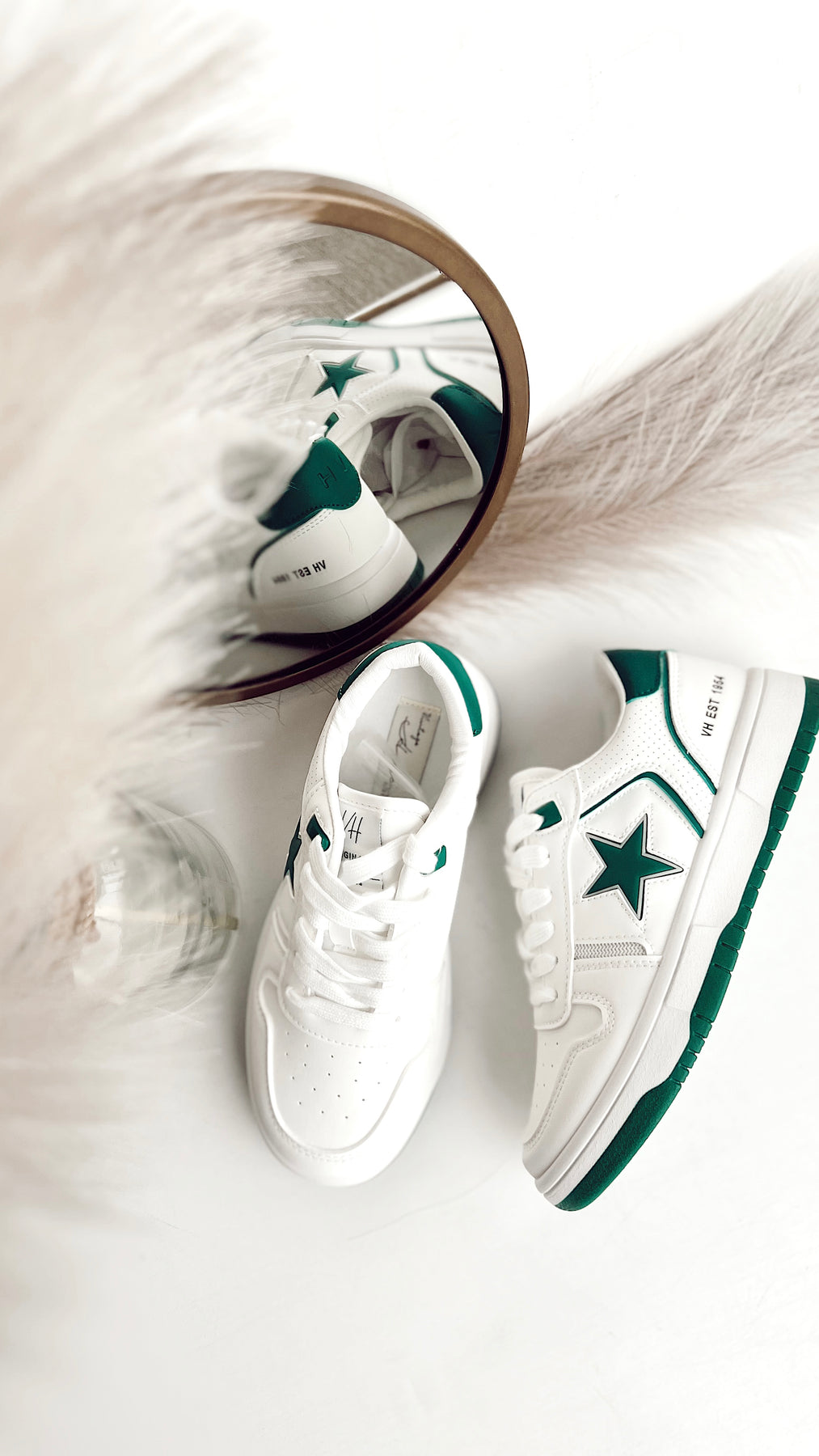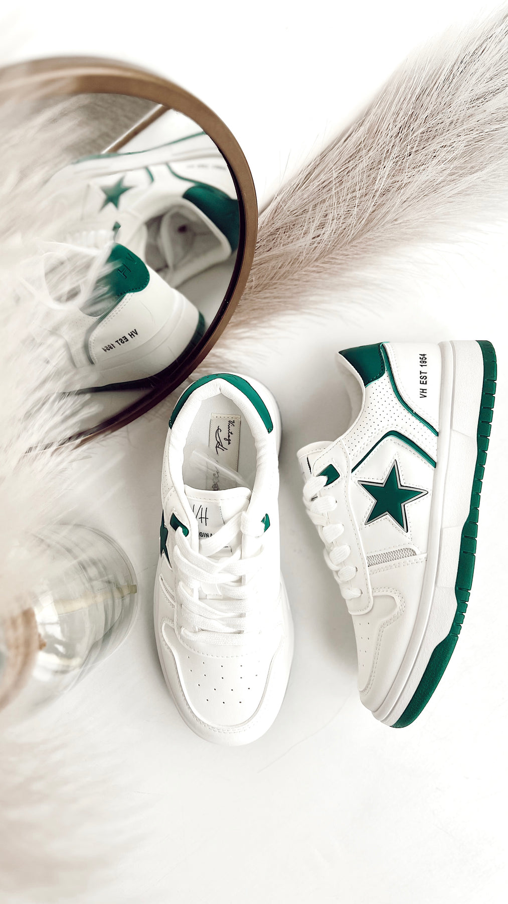 "Step up your sneaker game with the Fresh 3 Sneaker by Vintage Hanana. In a stylish green and white design, these kicks not only look cool, but also come with a cute little keychain. Stay on trend and add some fun to your outfit with these must-have sneakers."