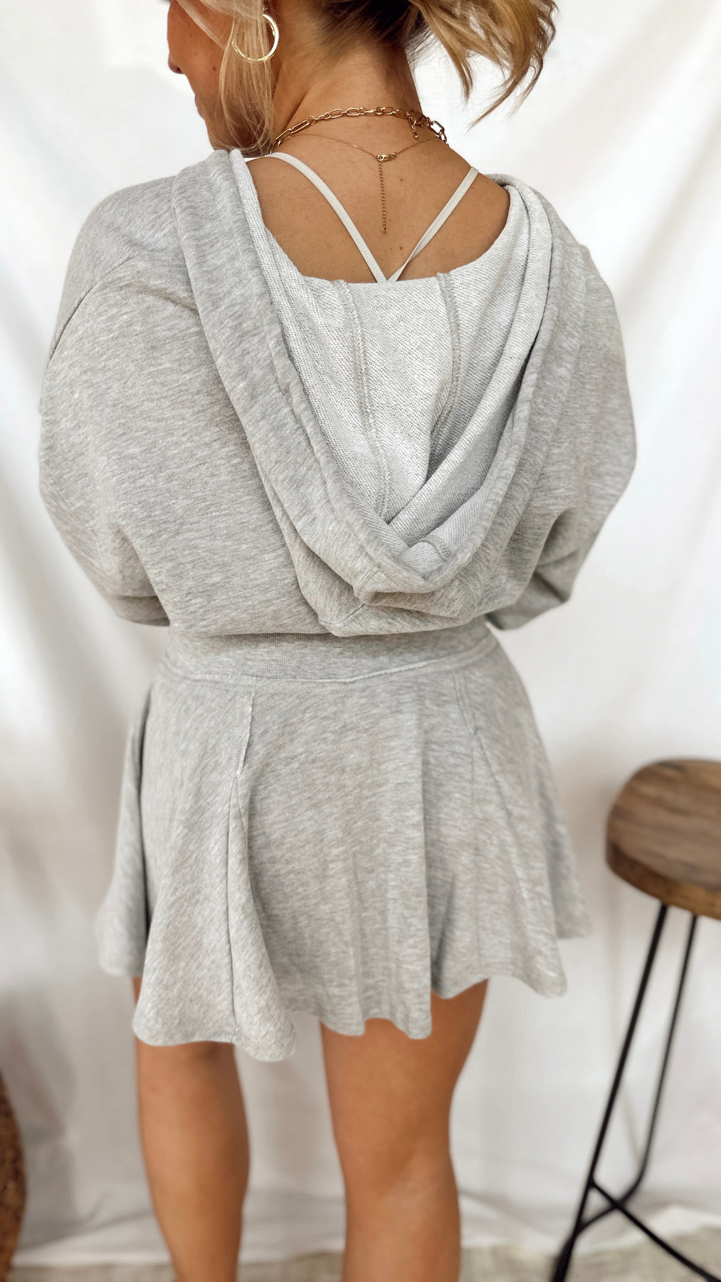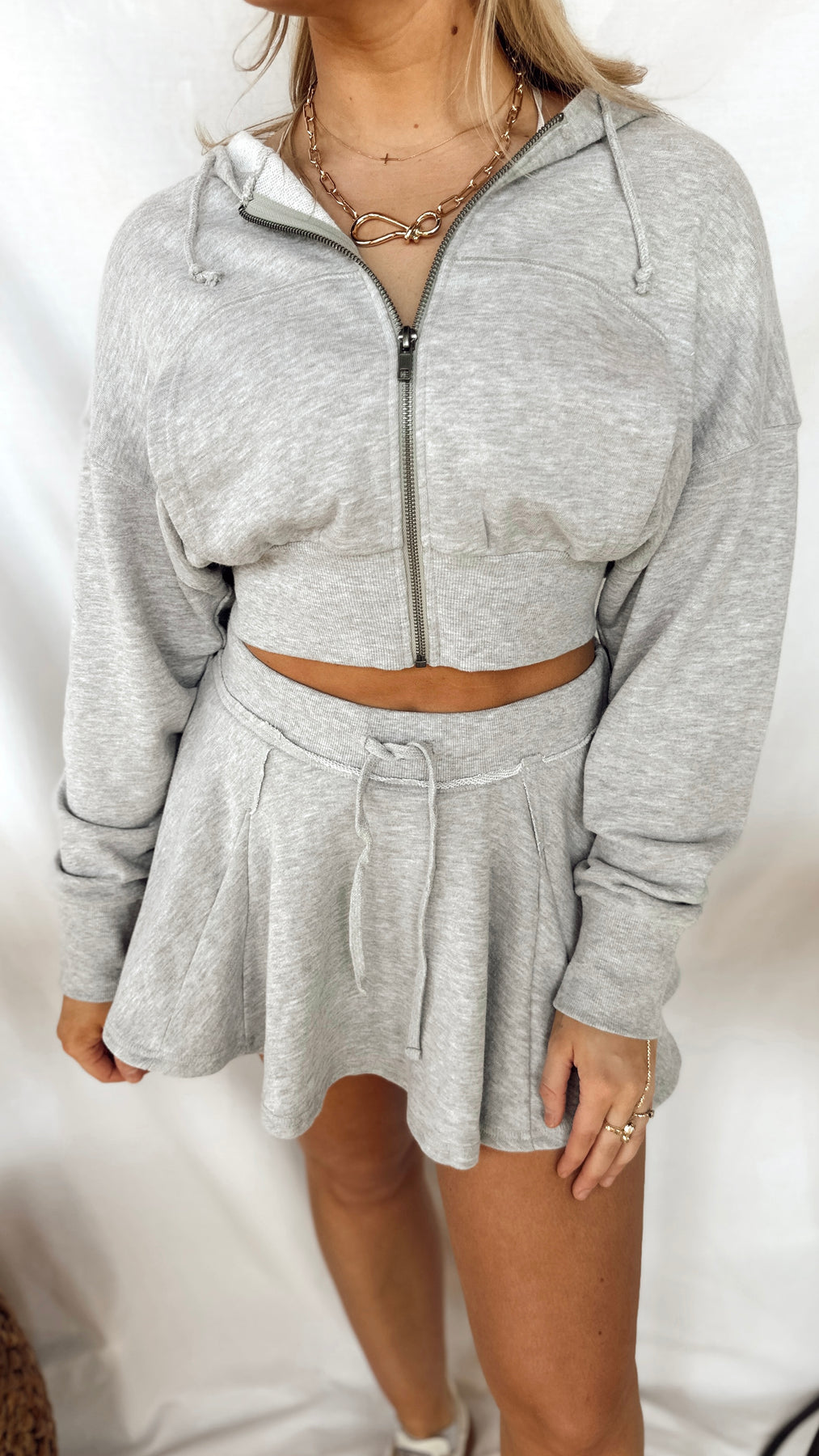 Upgrade your active wardrobe with The Active Girl Zip Up Sweatshirt. This grey cropped sweatshirt is not only super cute but also versatile when paired with the matching skort (sold separately).