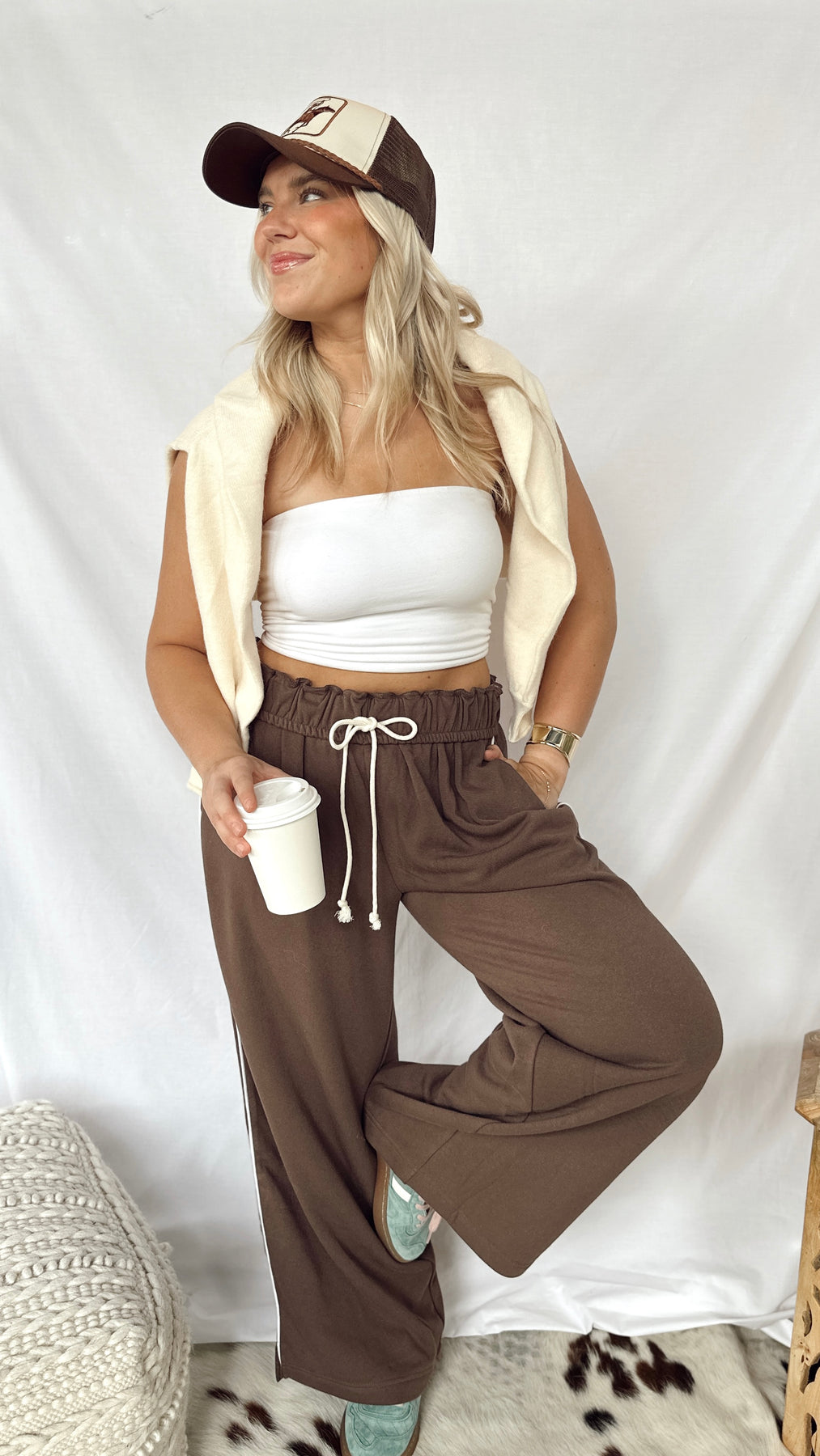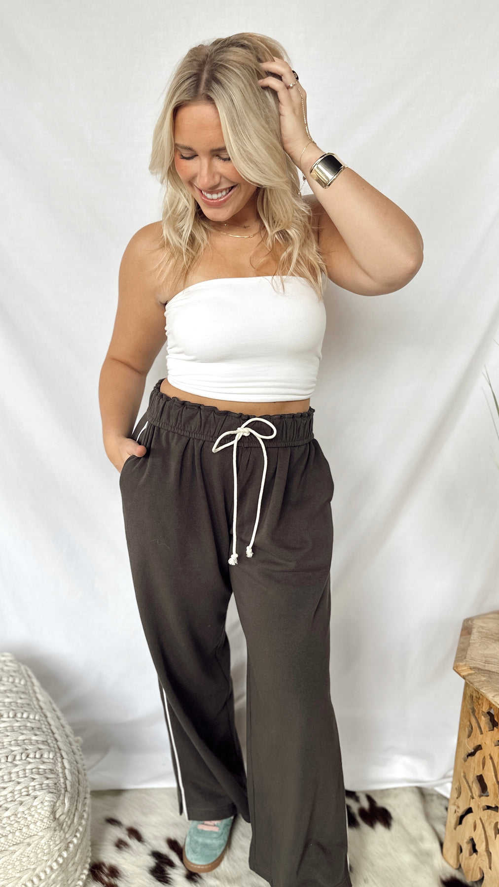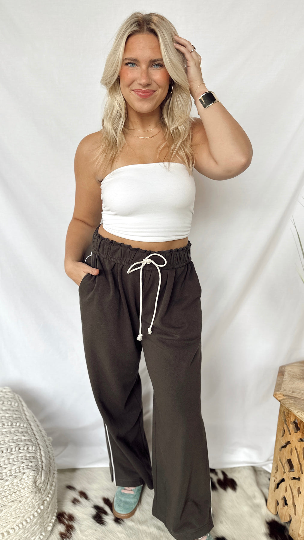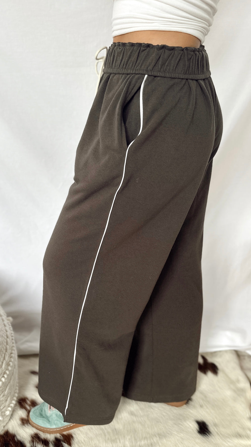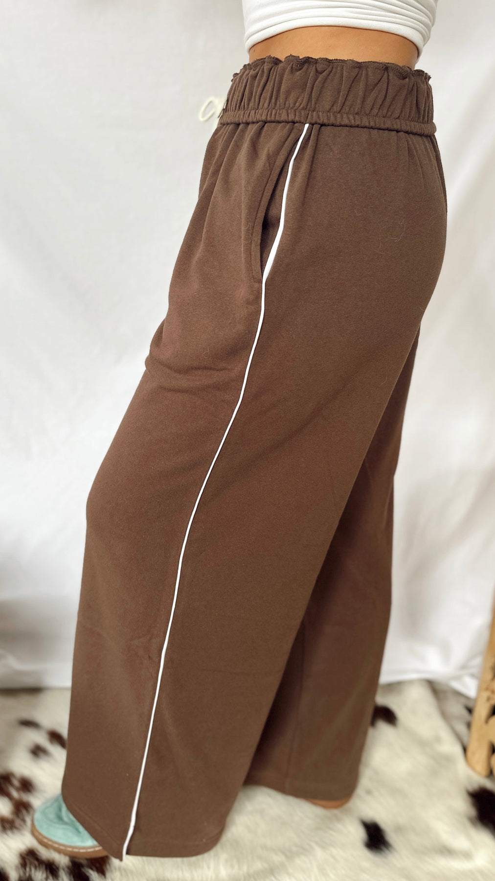 The Anderson Sweatpants combine cozy softness with stylish detail. Featuring a soft fold-over waistband with an adjustable drawstring, they offer a perfect fit every time. A thin stripe runs down the side for a subtle sporty touch, making these sweatpants great for lounging or casual outings. Comfortable, simple, and fun to wear!