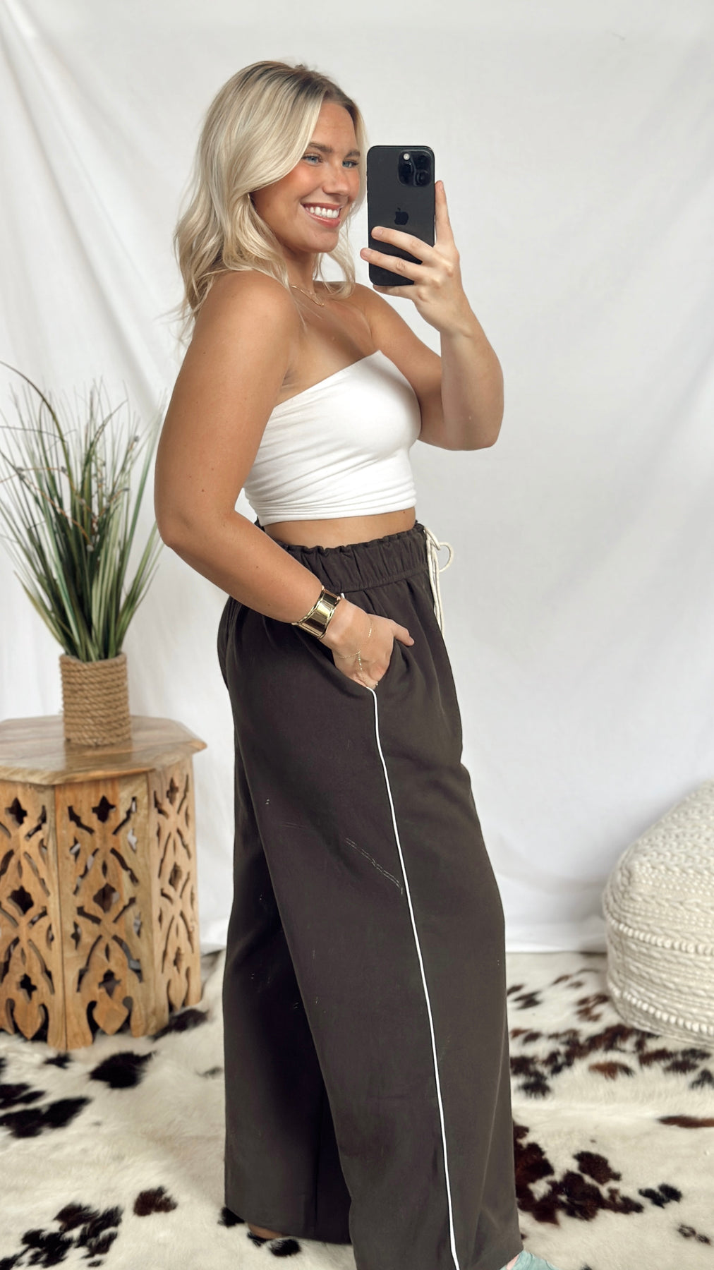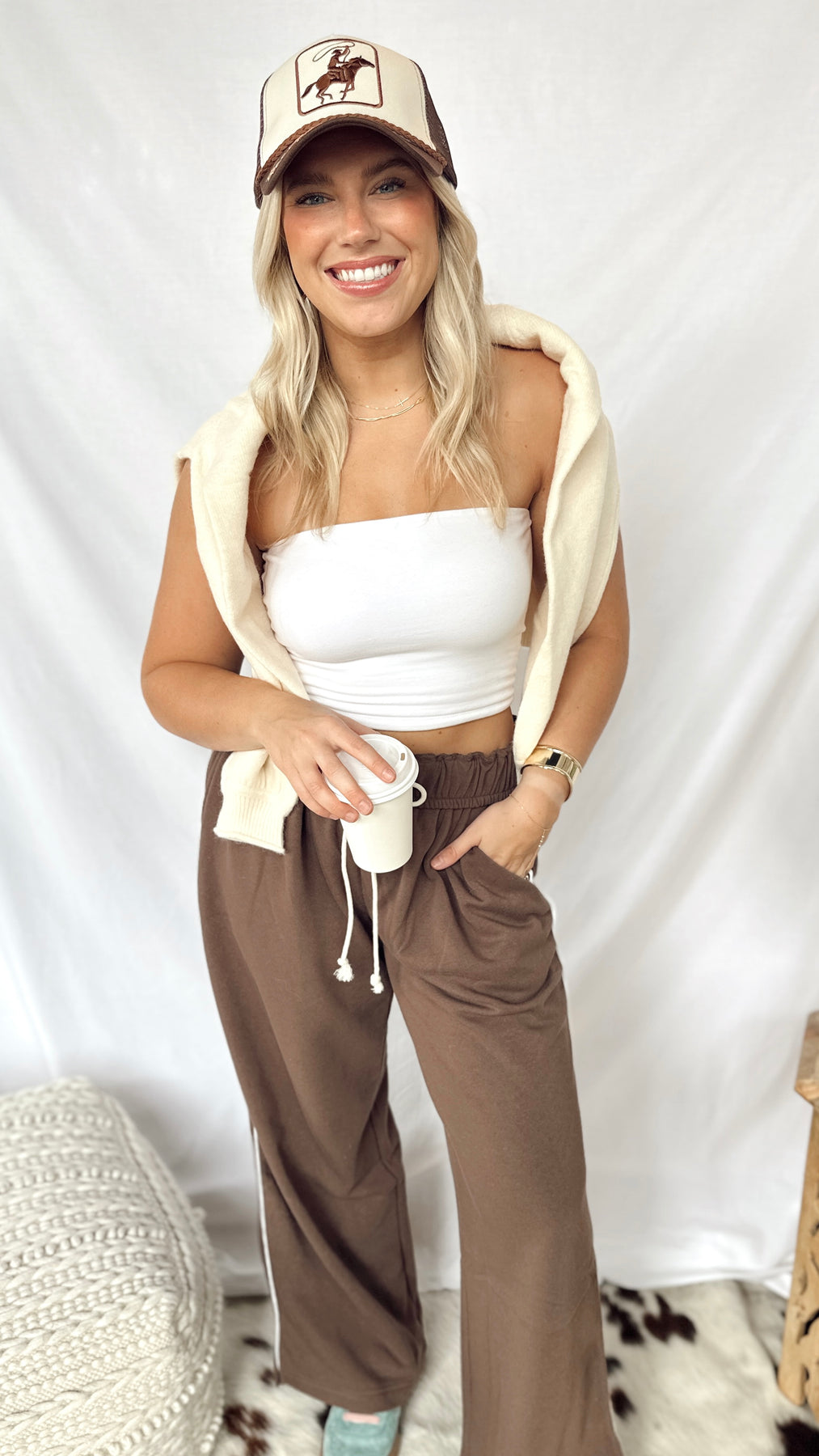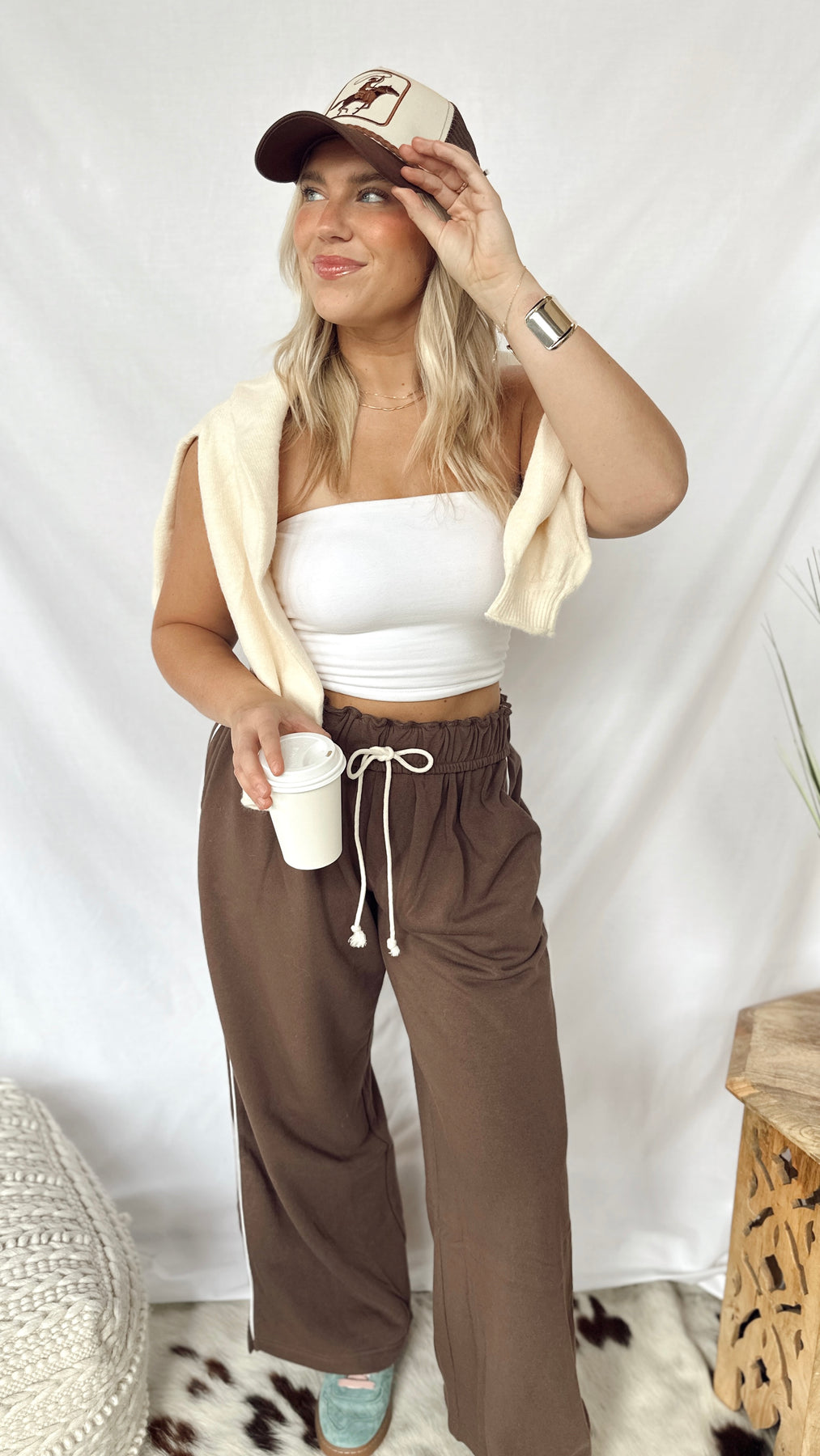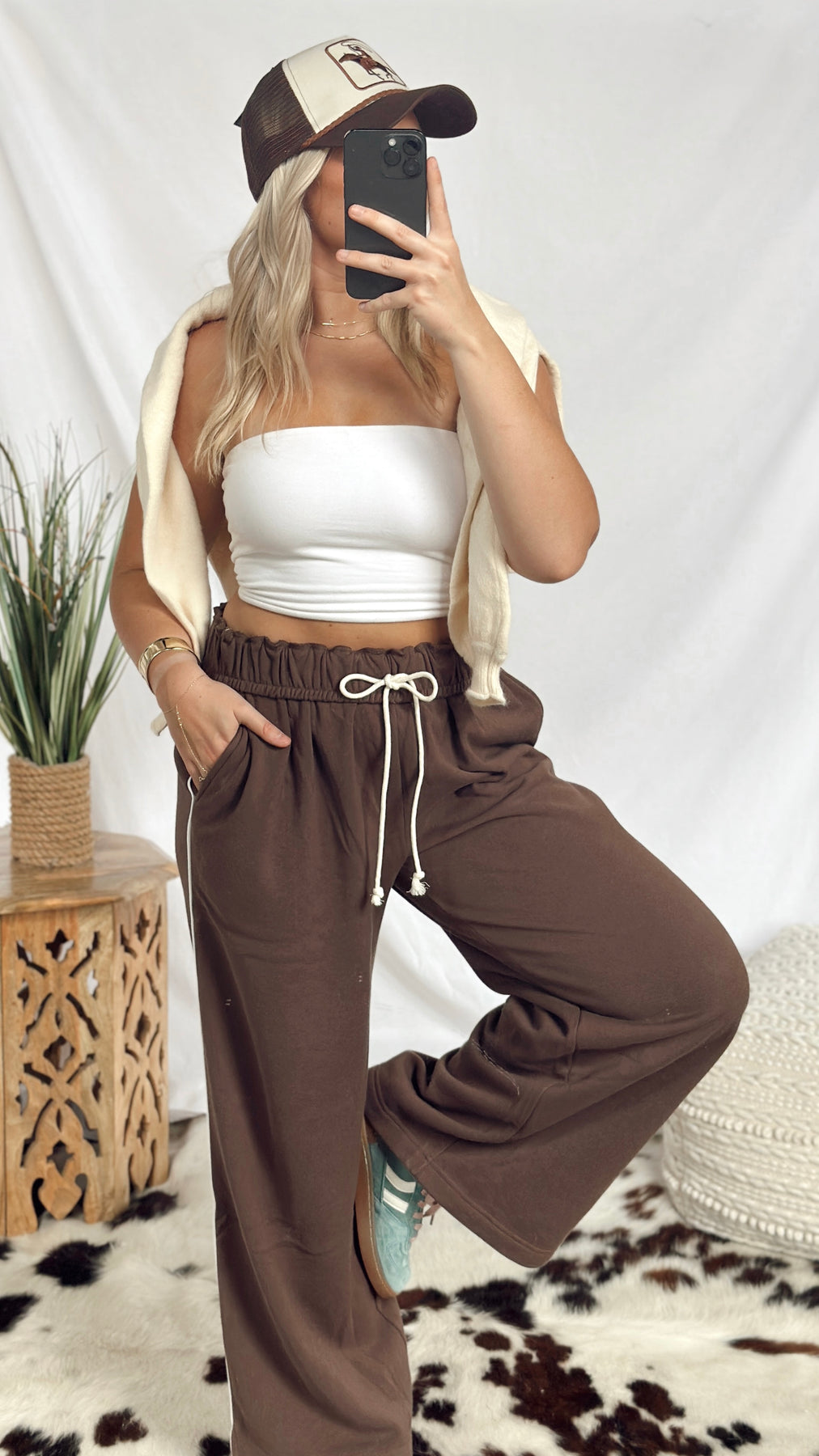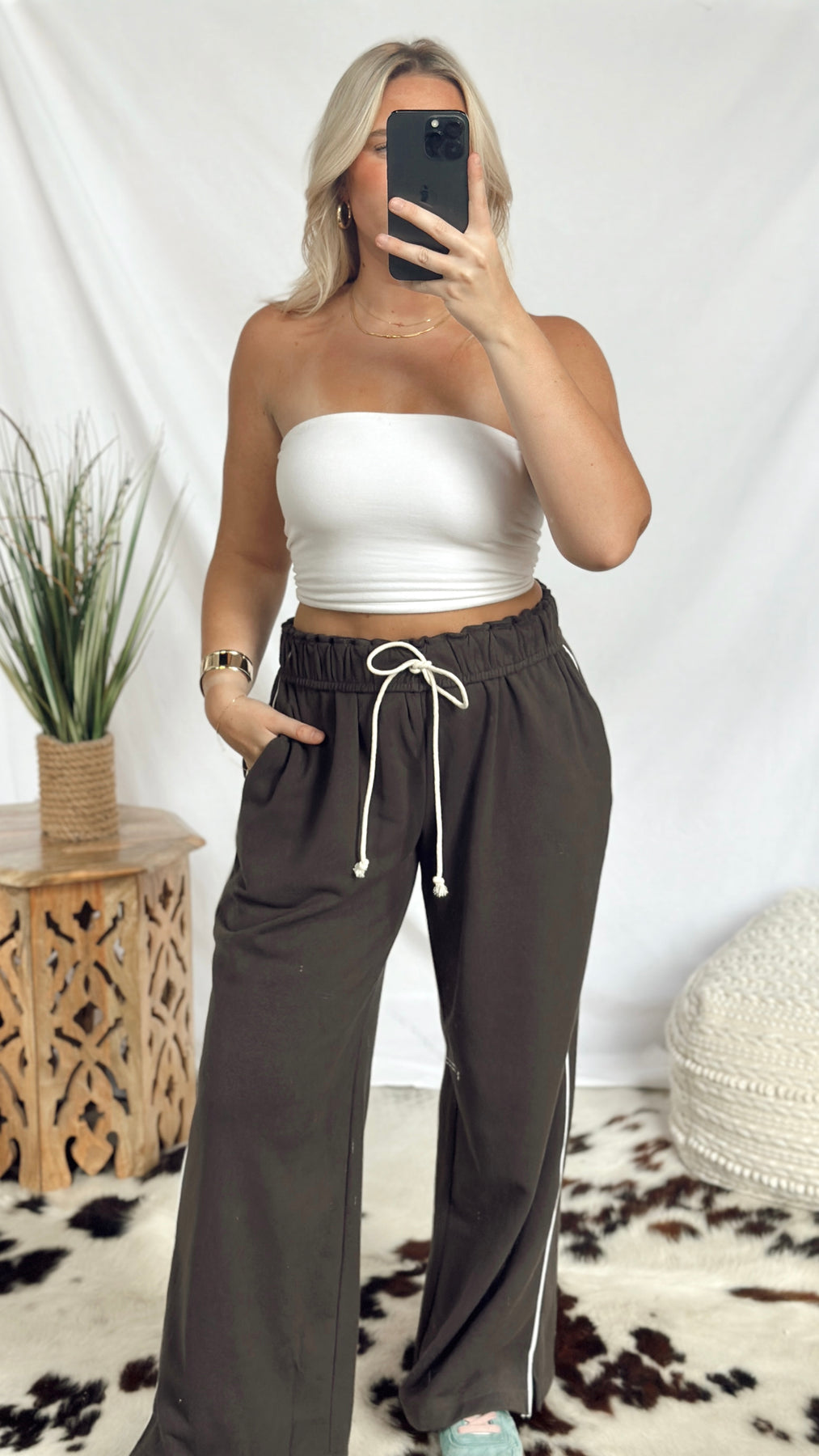 The Anderson Sweatpants combine cozy softness with stylish detail. Featuring a soft fold-over waistband with an adjustable drawstring, they offer a perfect fit every time. A thin stripe runs down the side for a subtle sporty touch, making these sweatpants great for lounging or casual outings. Comfortable, simple, and fun to wear!