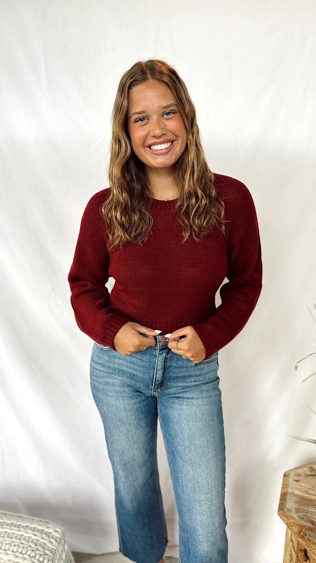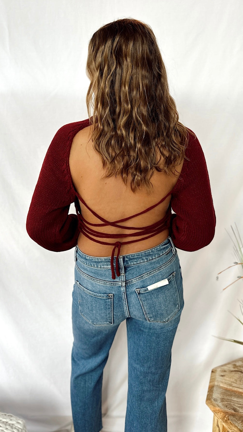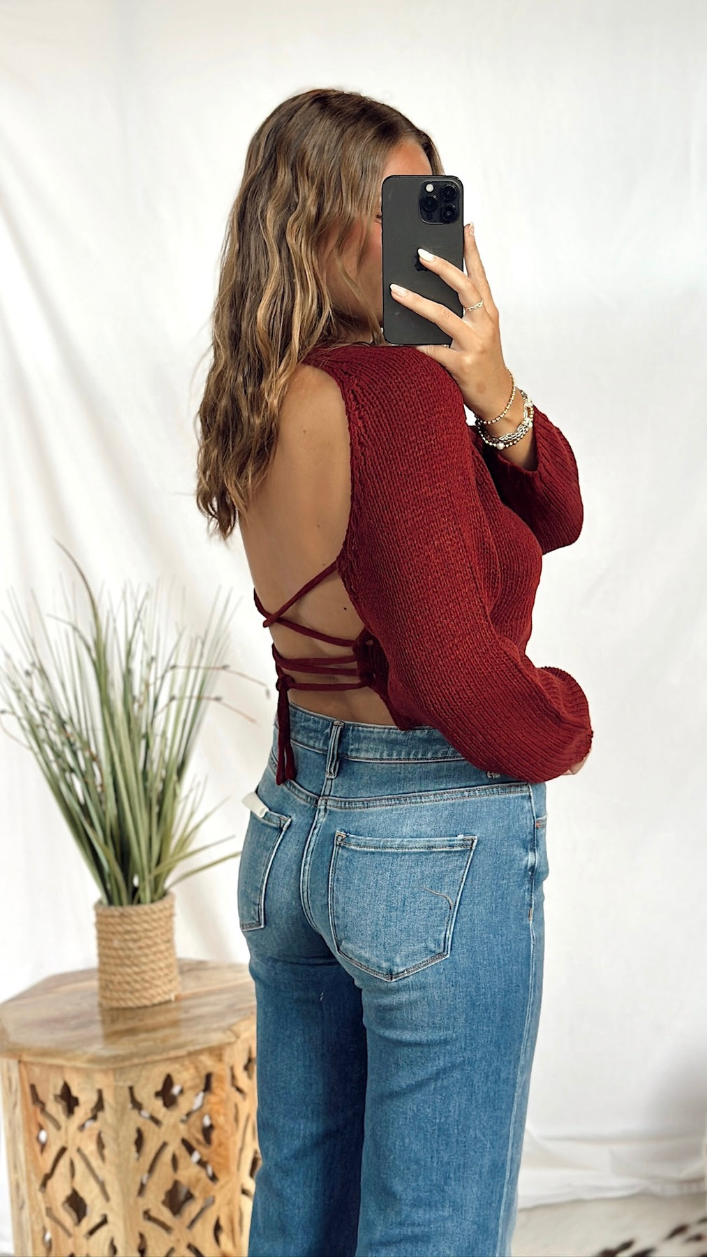 The Ansley Sweater is your new go-to for cozy days with a playful twist. Featuring a long sleeve design, it keeps you warm while the open back and tie detail add a fun, flirty touch. Just a heads up—it runs small, so consider sizing up for the perfect fit. Perfect for layering or wearing on its own for a stylish, relaxed look. It comes in either a cream color or garnet color.