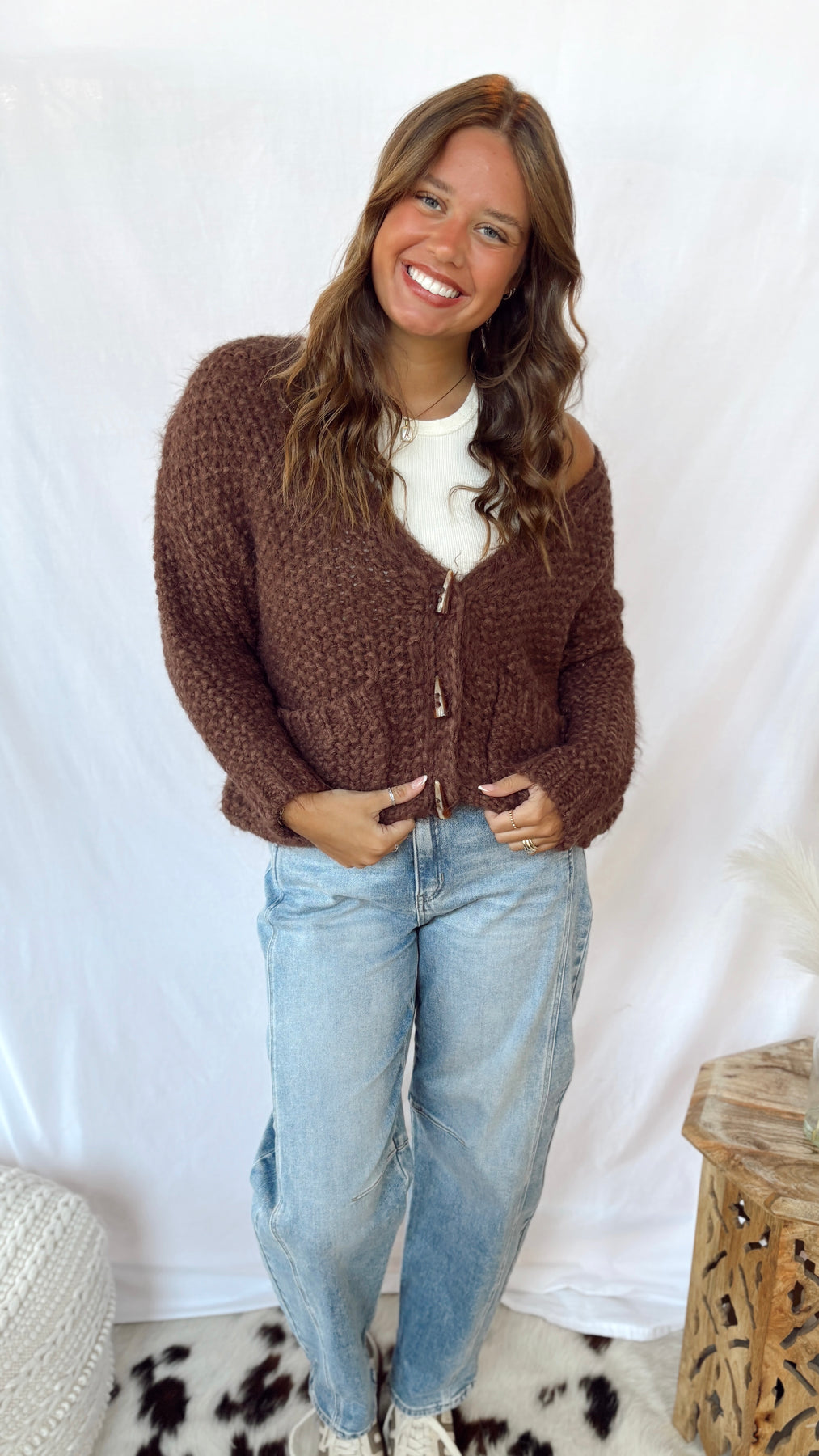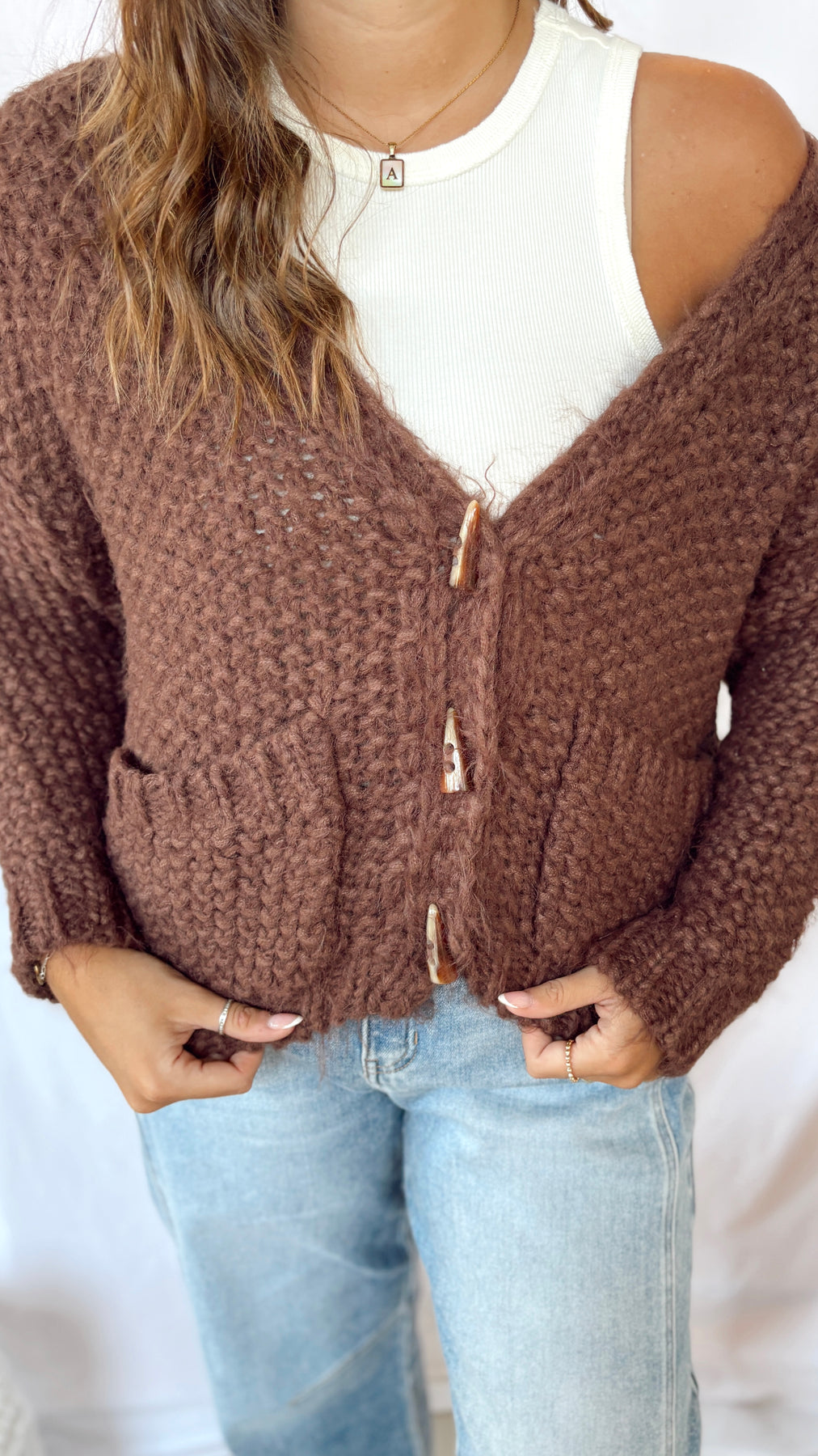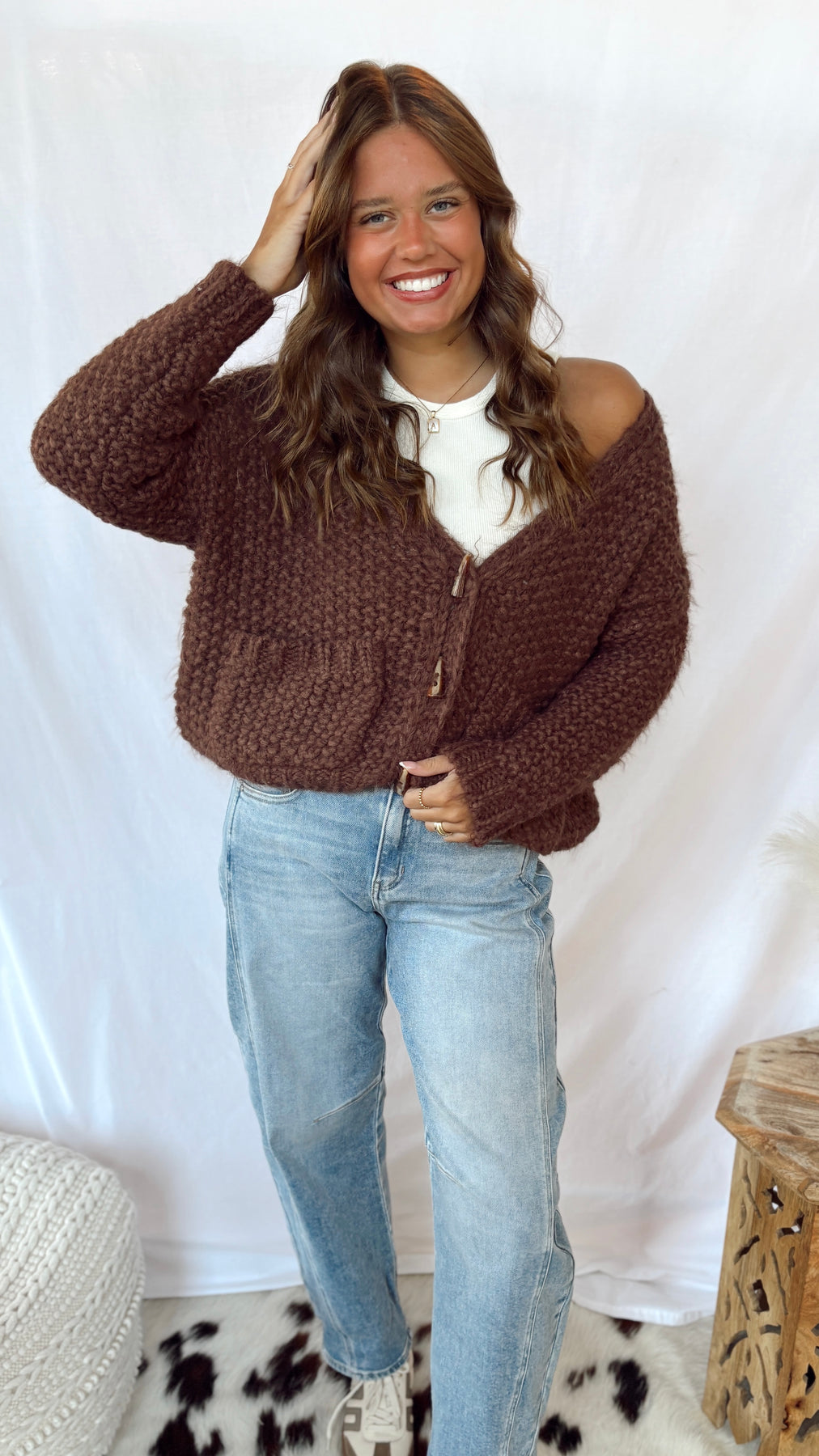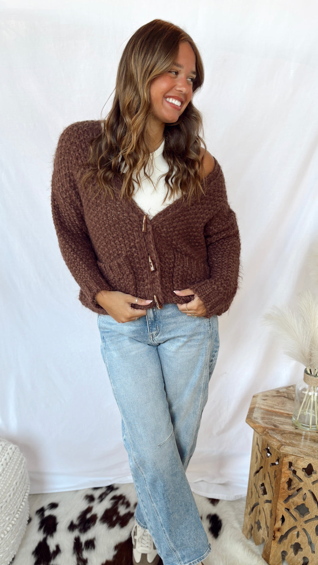 The Ashlane Cardigan is your new go-to cozy companion. This brown cardigan features charming button details down the front, adding a cute and classic touch to any outfit. Perfect for layering or wearing on its own, it’s both comfy and stylish for everyday fun.