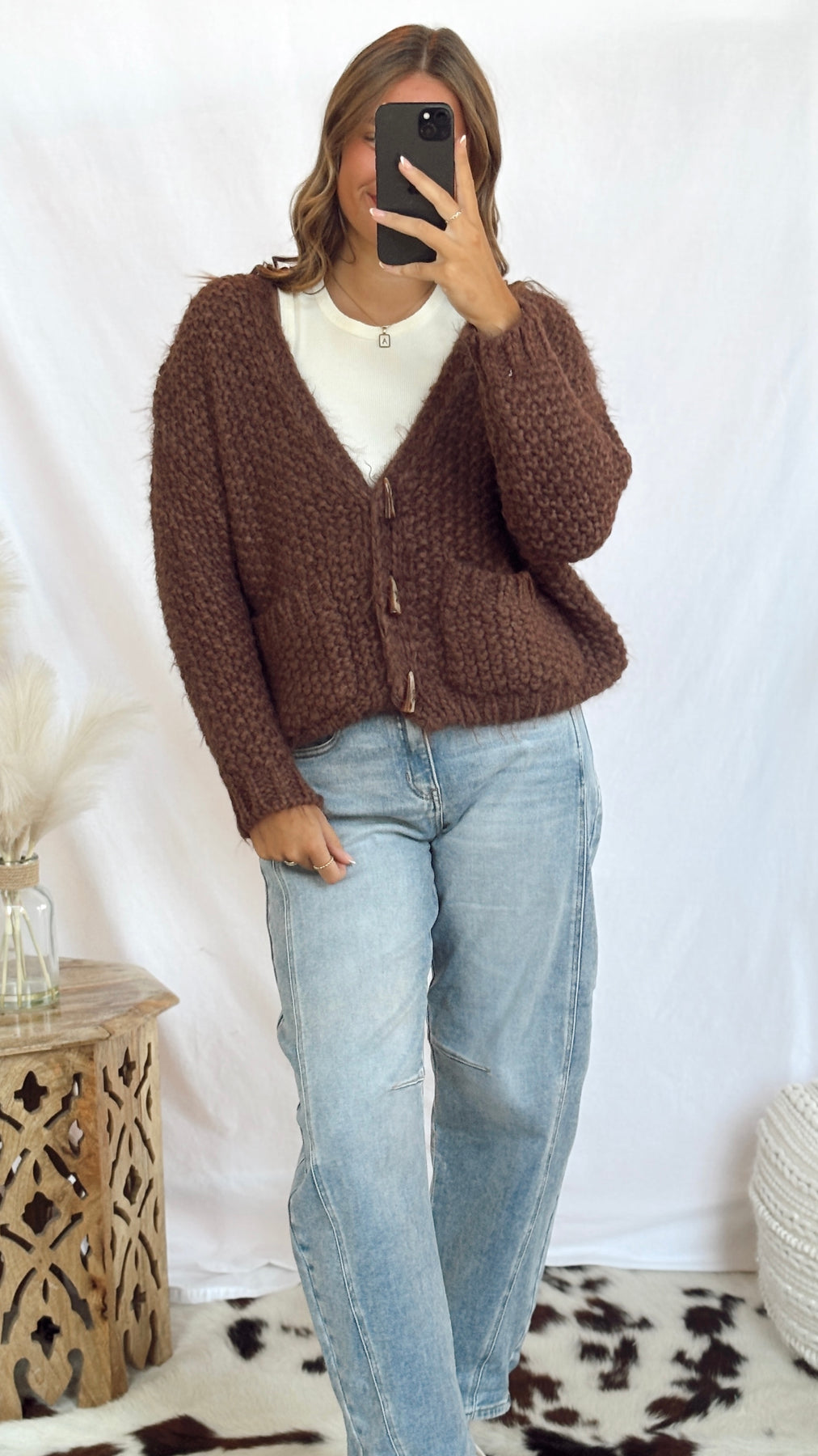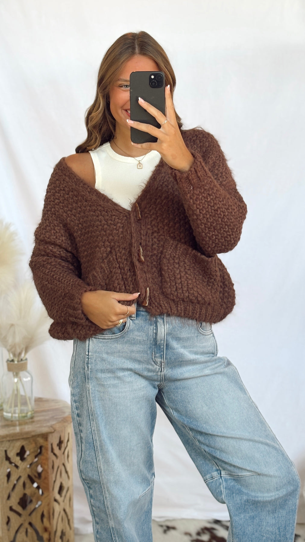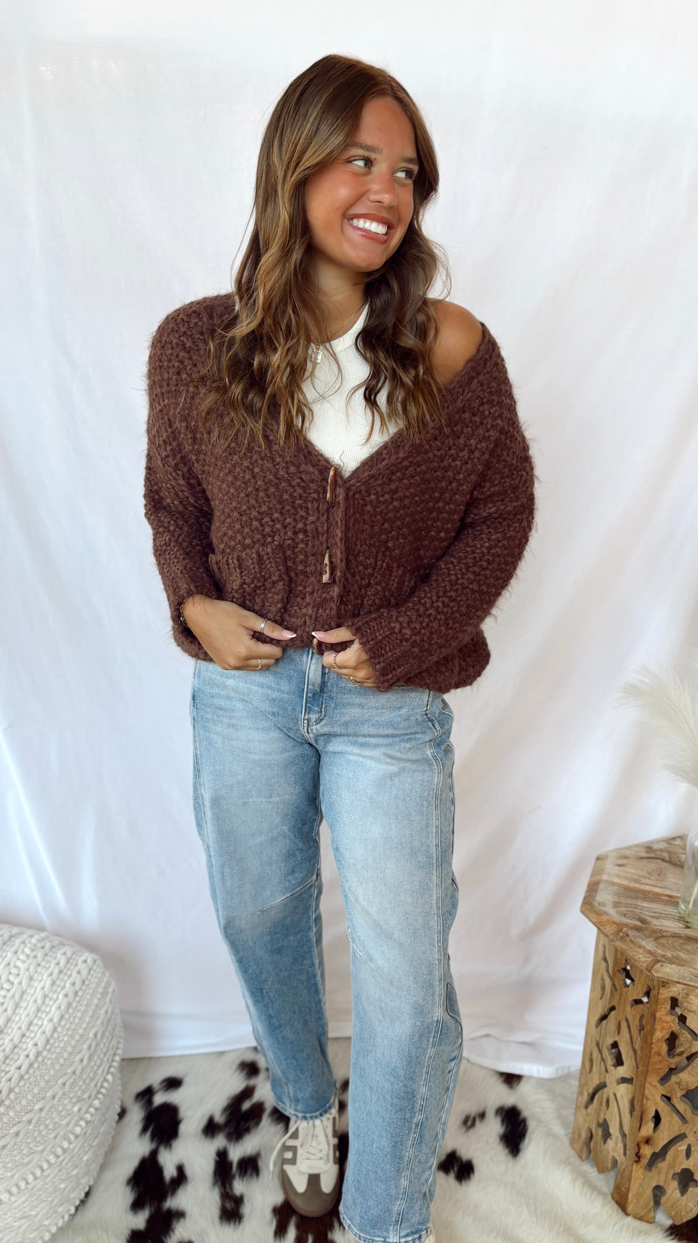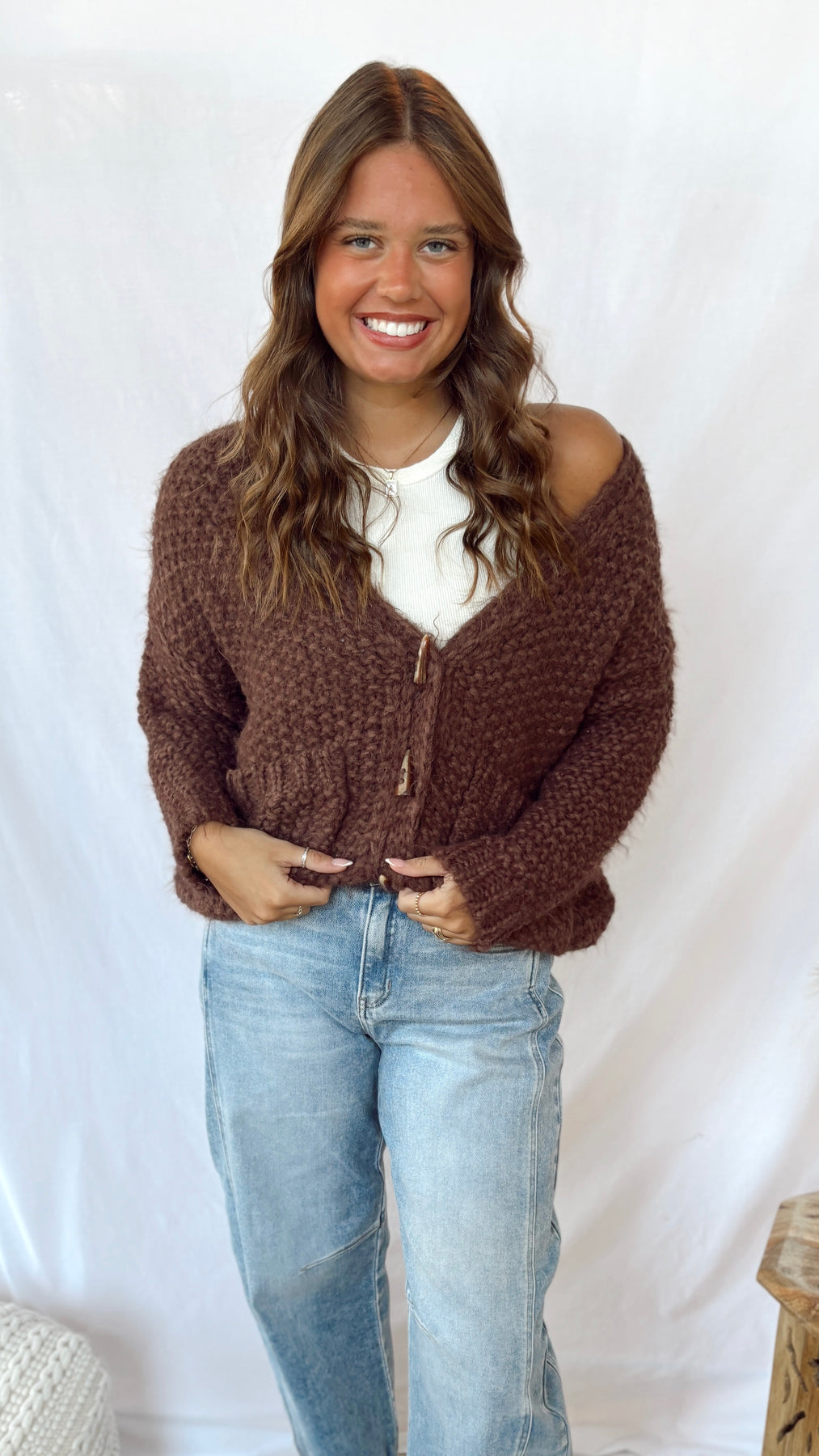 The Ashlane Cardigan is your new go-to cozy companion. This brown cardigan features charming button details down the front, adding a cute and classic touch to any outfit. Perfect for layering or wearing on its own, it’s both comfy and stylish for everyday fun.
