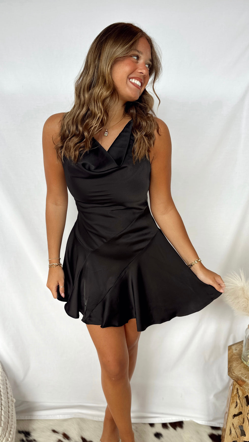 Slip into elegance with The Blair Dress, a black satin beauty featuring a chic drop neck design. Simple yet stunning, this dress combines comfort and style effortlessly for your next night out.