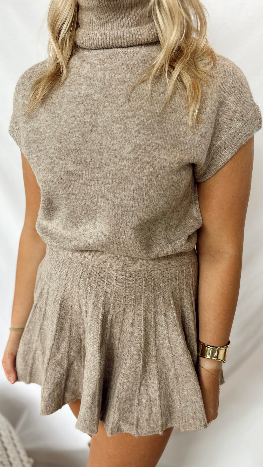 The Casey Set is a cozy taupe sweater top and matching skirt designed for easy, stylish wear. Perfect for lounging or casual outings, this set blends comfort with a relaxed, chic look.