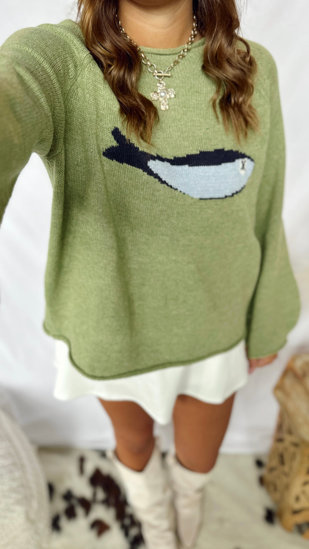 Stay cozy and quirky with this olive green sweater featuring a playful sardine graphic. Its relaxed fit and soft fabric make it perfect for casual days, while the fun design adds a splash of personality to your look. Easy to pair and even easier to love, it’s a catch you won’t want to miss.