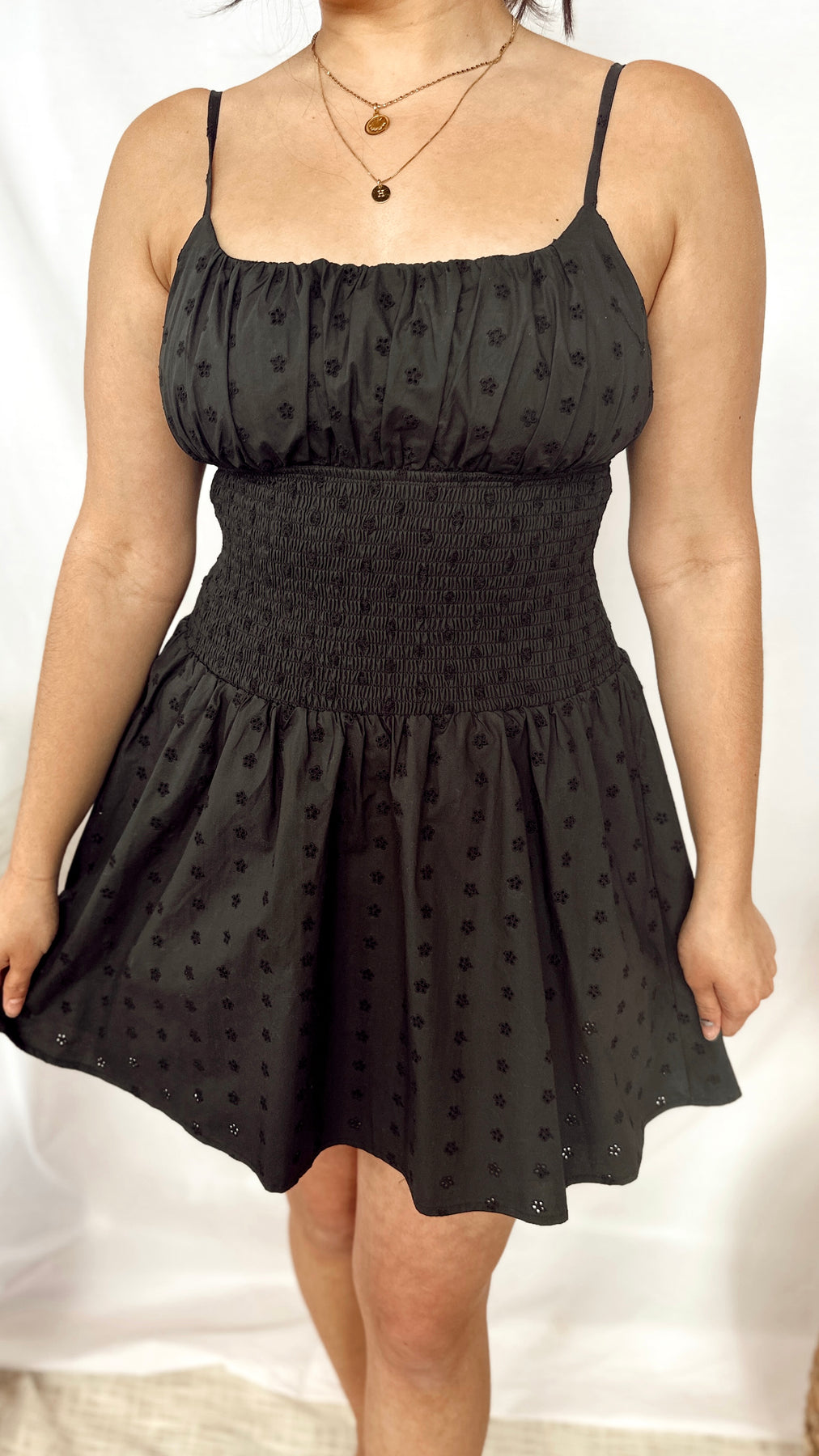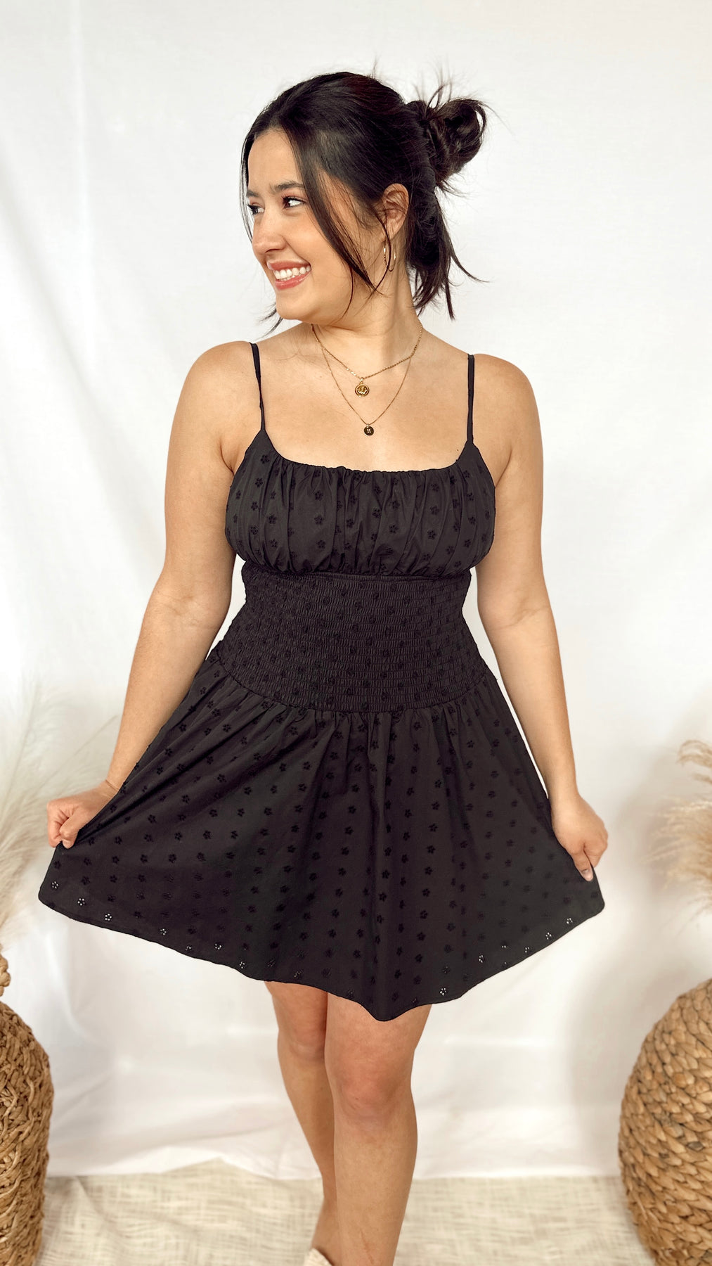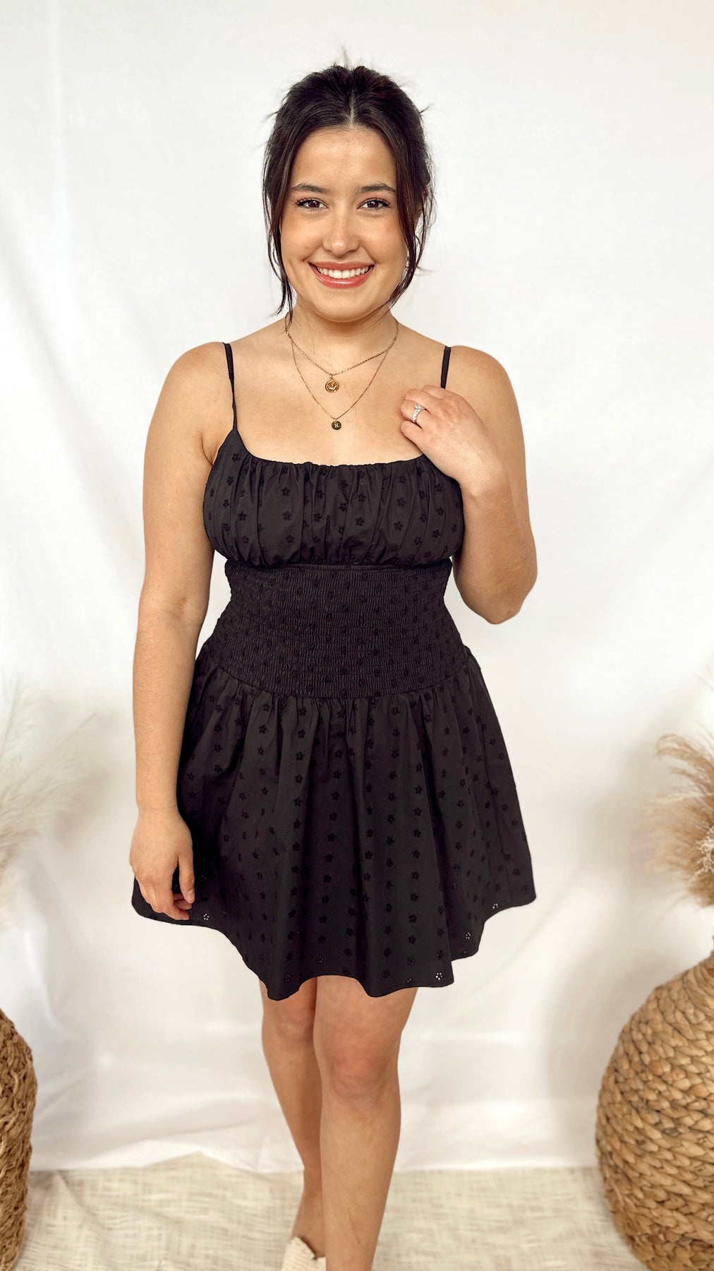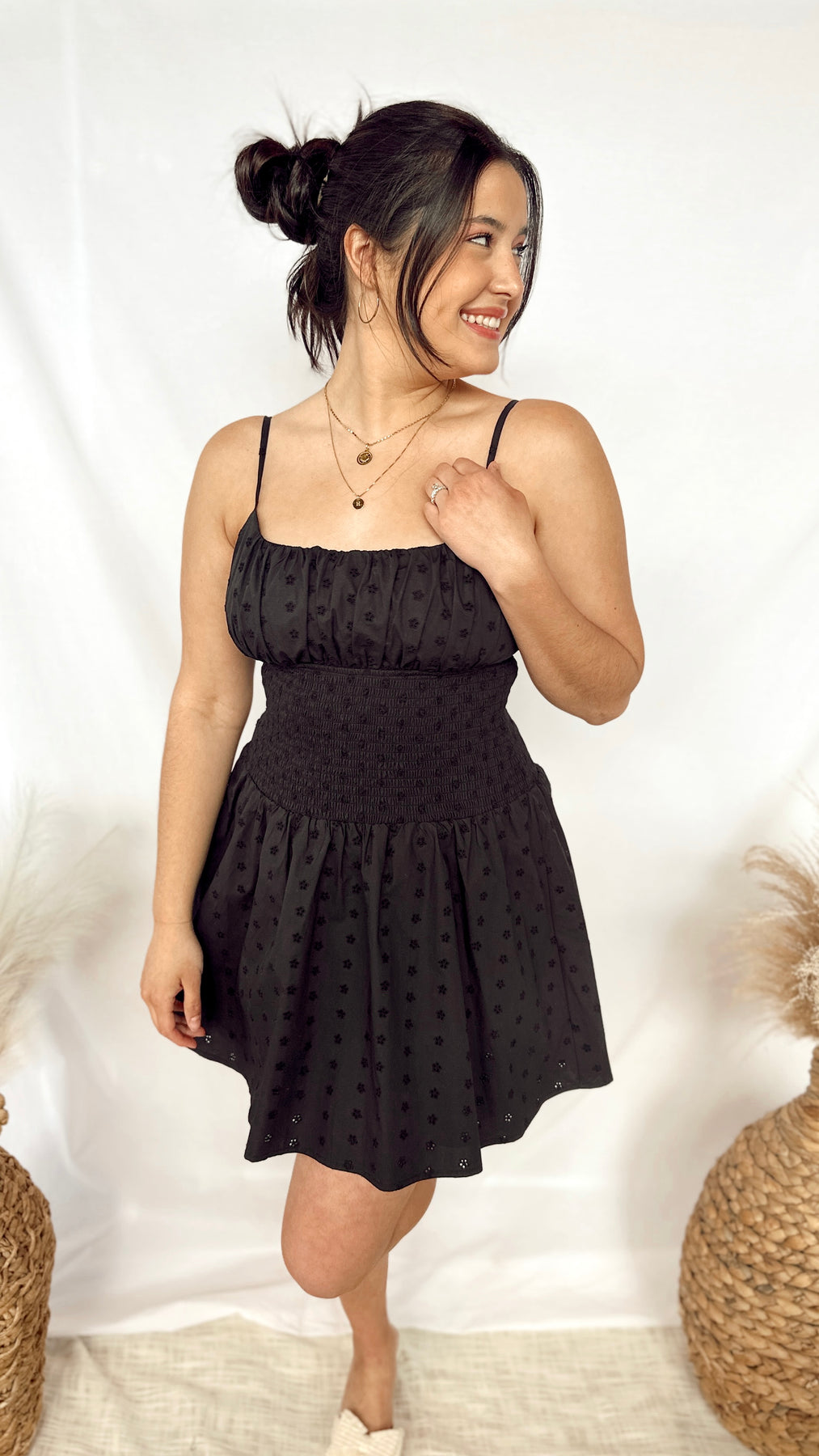 The Darling Delight Dress is a fun and simple black dress that features delicate straps and a gorgeous floral pattern. The ruching in the middle section adds a flattering touch, making you the center of attention at any event. Embrace the beauty and charm of this dress and stand out from the crowd.