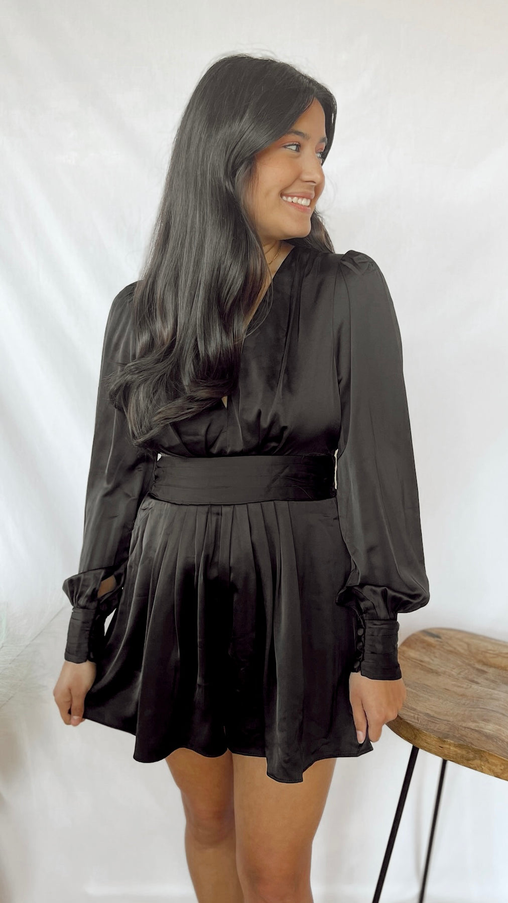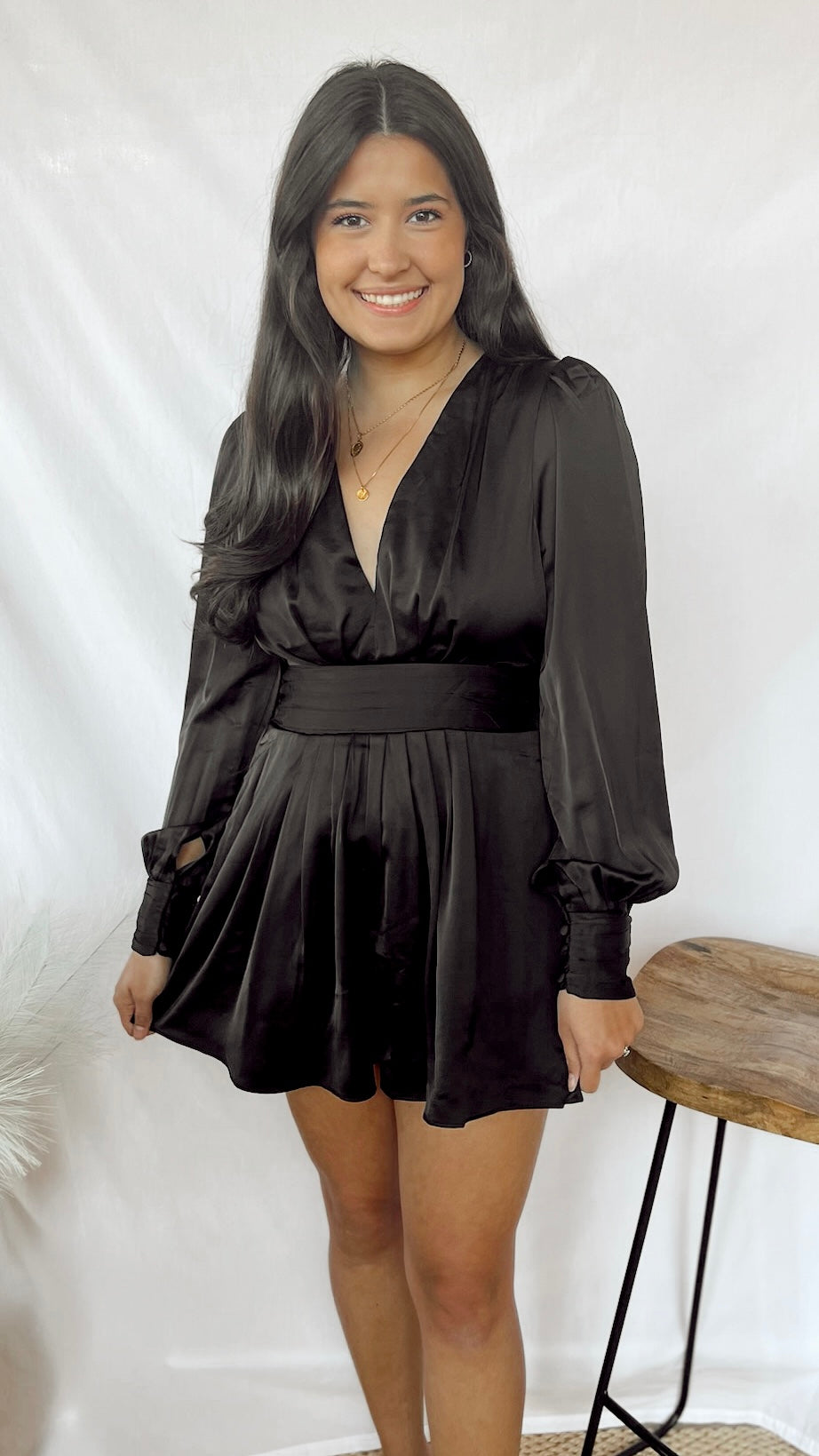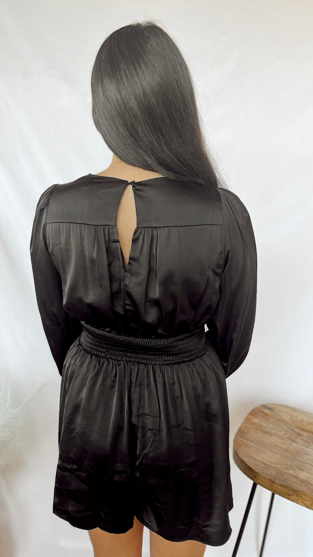 Effortlessly stylish and comfortable, The Midnight Romper is perfect for any occasion. This black romper features a flattering v-neck and flowy long sleeves, making it a must-have in your wardrobe. Whether you're lounging at home or out for a night on the town, this romper will keep you feeling chic and relaxed.