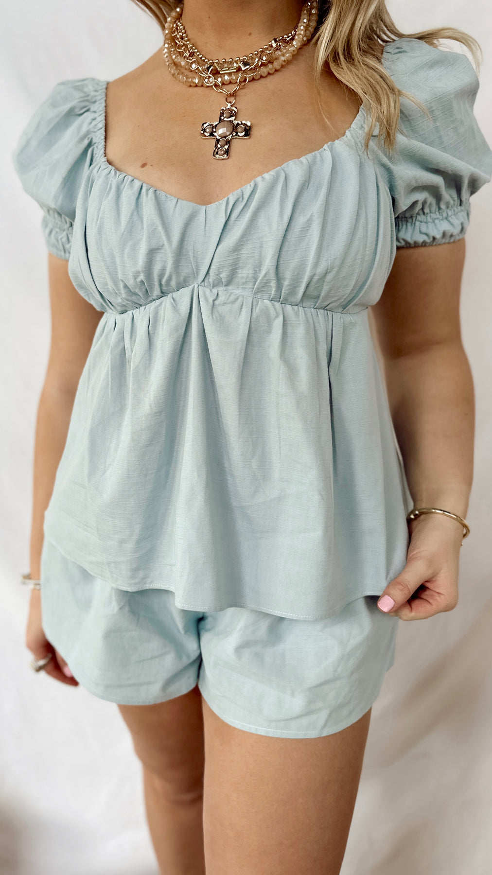 The Paige Top is your go-to blue piece that's anything but boring. This breezy top features a flattering tie-back design that lets you adjust the fit to perfection—cinch it tight for a defined silhouette or keep it relaxed for laid-back vibes. Whether you're dressing it up for a night out or pairing it with your favorite jeans, this versatile blue beauty works overtime in your wardrobe. Simple, stylish, and ready for whatever comes your way.