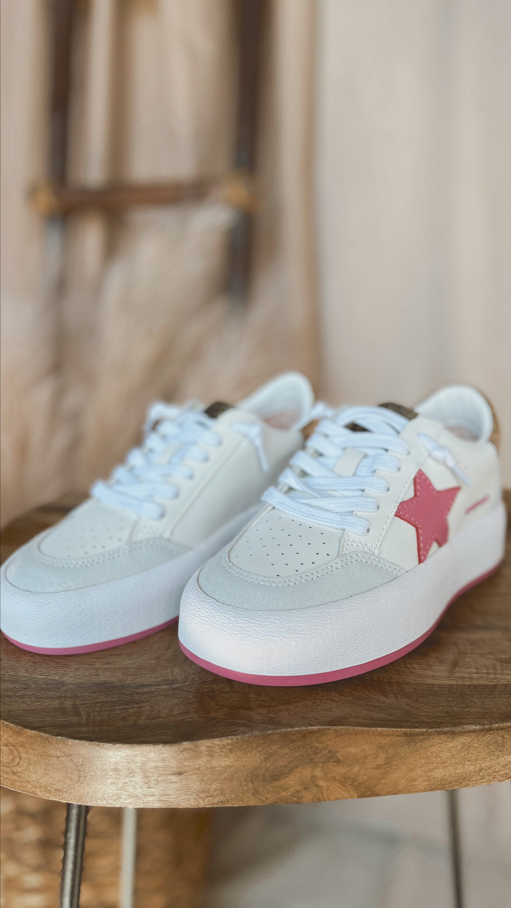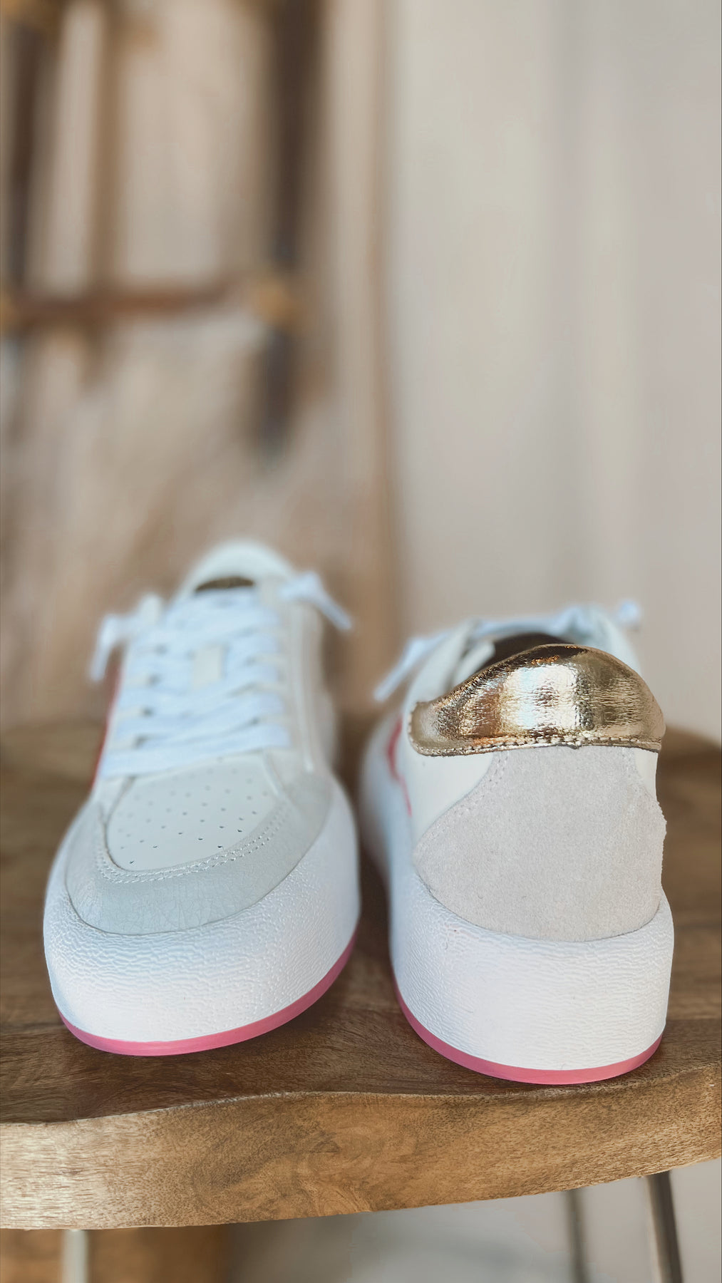 The Pink and White Vintage Havana Sneaker with Platform is a stylish shoe that combines a retro aesthetic with modern design elements. The shoe features a soft pink and white color scheme that is eye-catching and trendy. The platform sole adds height and a fashionable touch, while the vintage-inspired design gives the shoe a classic and timeless feel. Perfect for a casual day out or dressing up your favorite outfit, these sneakers are sure to turn heads.