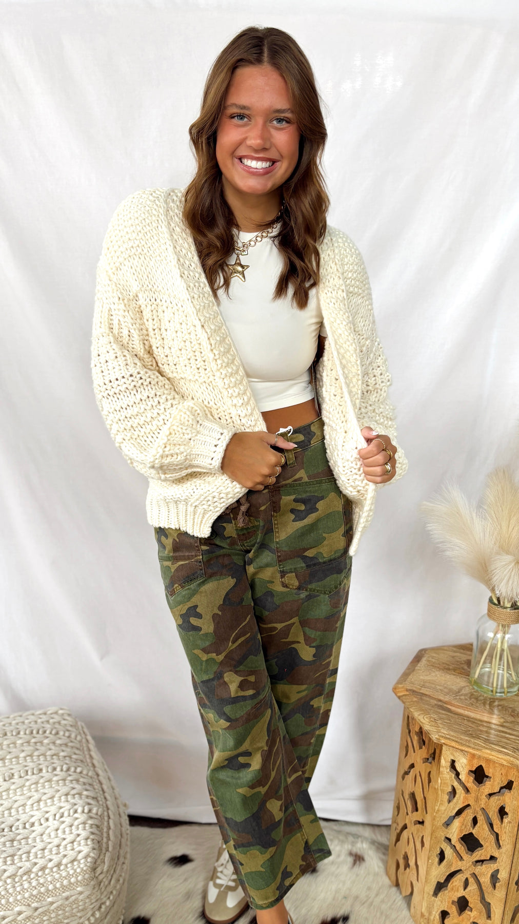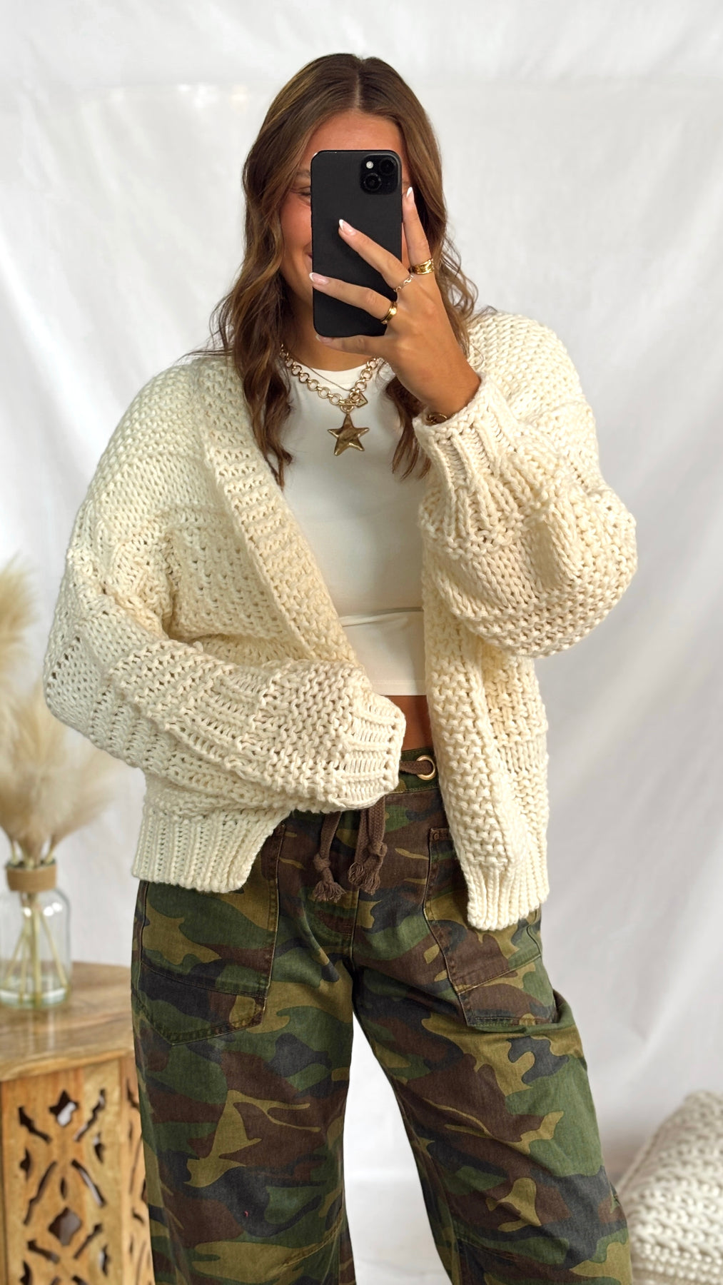 Stay cozy and cute in The Sadie Cardigan, a cream knit sweater perfect for layering any day. Soft, lightweight, and easy to wear, it adds a touch of warmth without weighing you down. Whether paired with jeans or your favorite skirt, this cardigan keeps your look effortlessly stylish and comfy.