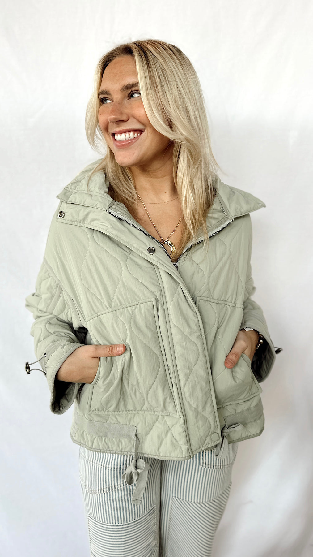Stay cozy and stylish with The Samson Jacket, a sage quilted jacket that’s perfect for layering on chilly days. Its lightweight design keeps you warm without the bulk, while the soft sage color adds a fresh, easygoing touch to any outfit. Whether you’re running errands or heading out for a casual adventure, this jacket combines comfort and cool effortlessly.