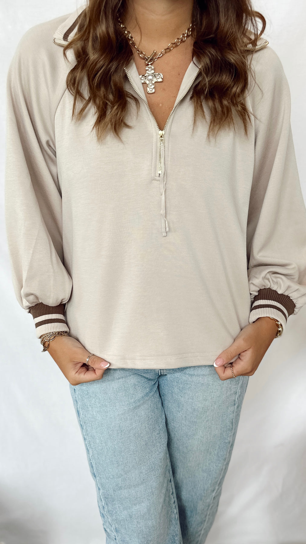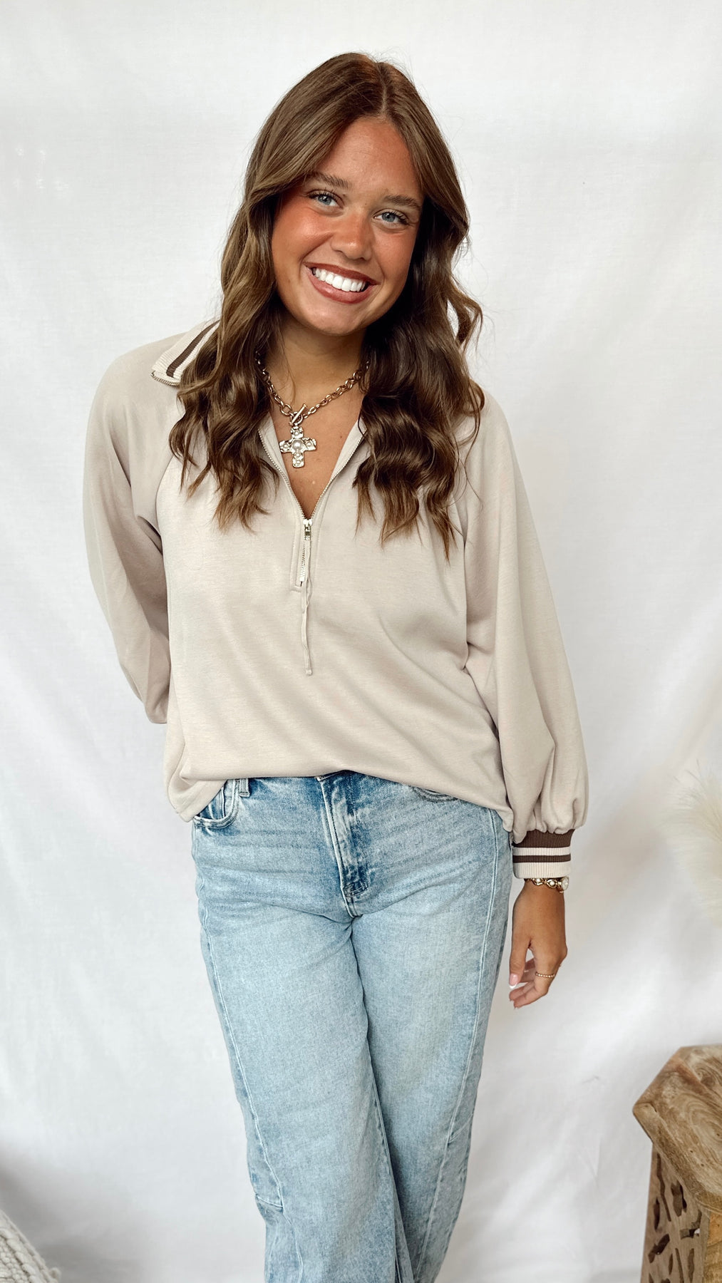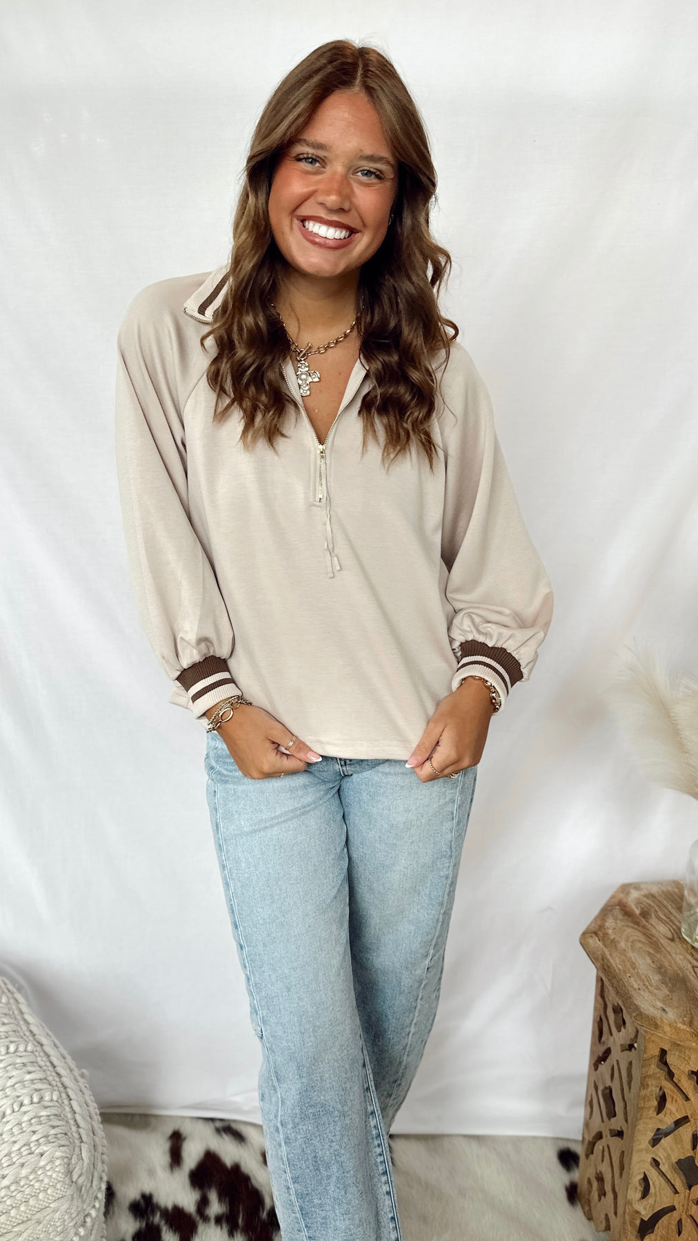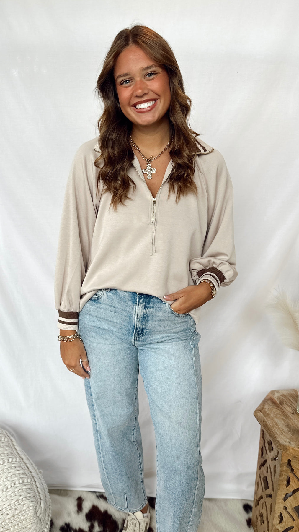 Cozy up in the Shelby Pullover, featuring a warm almond color that pairs perfectly with any outfit. Its handy quarter zip and classic collar add just the right touch of sporty style, making it easy to layer or wear solo on chillier days. Simple, comfortable, and ready for whatever your day brings!