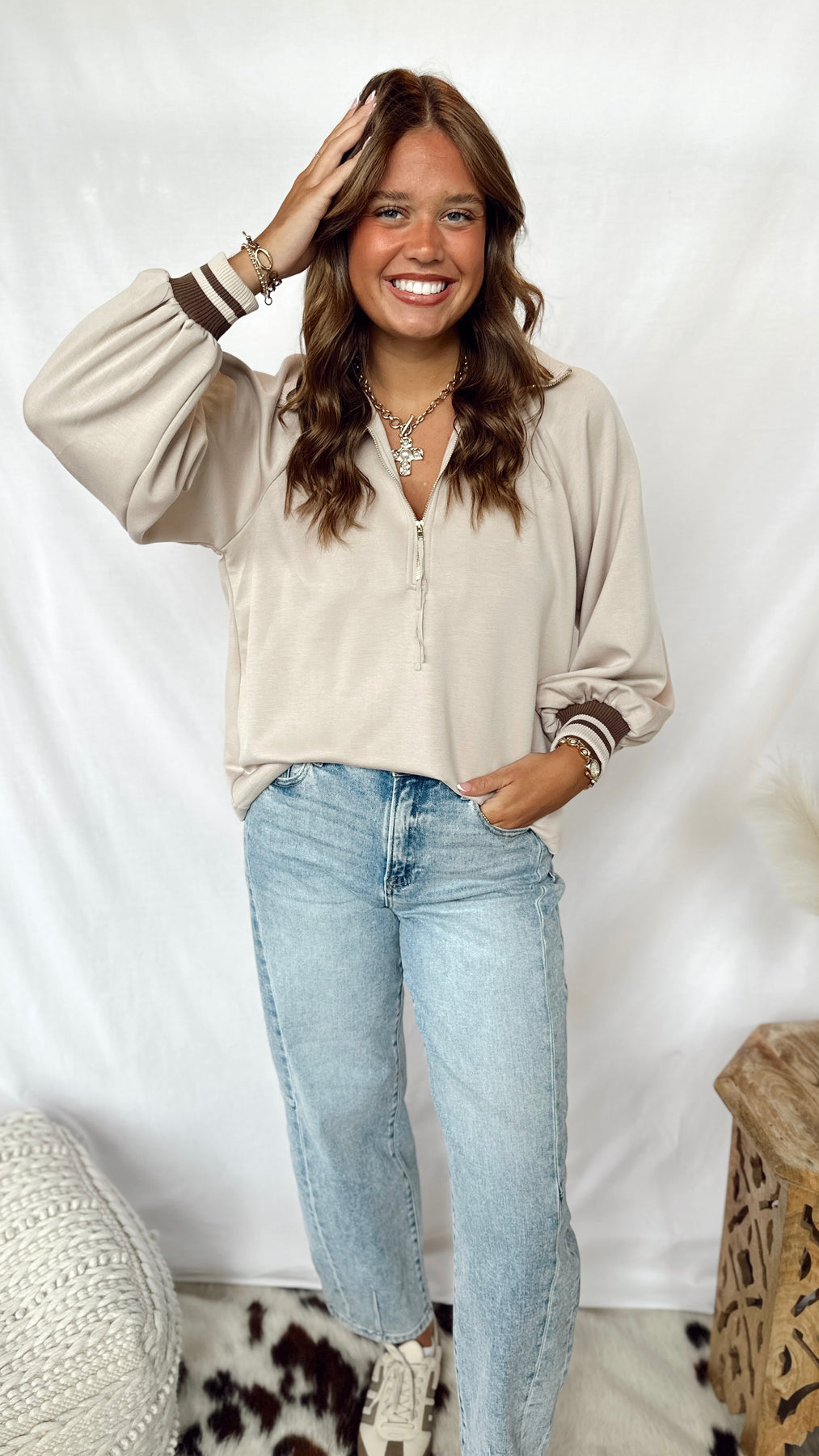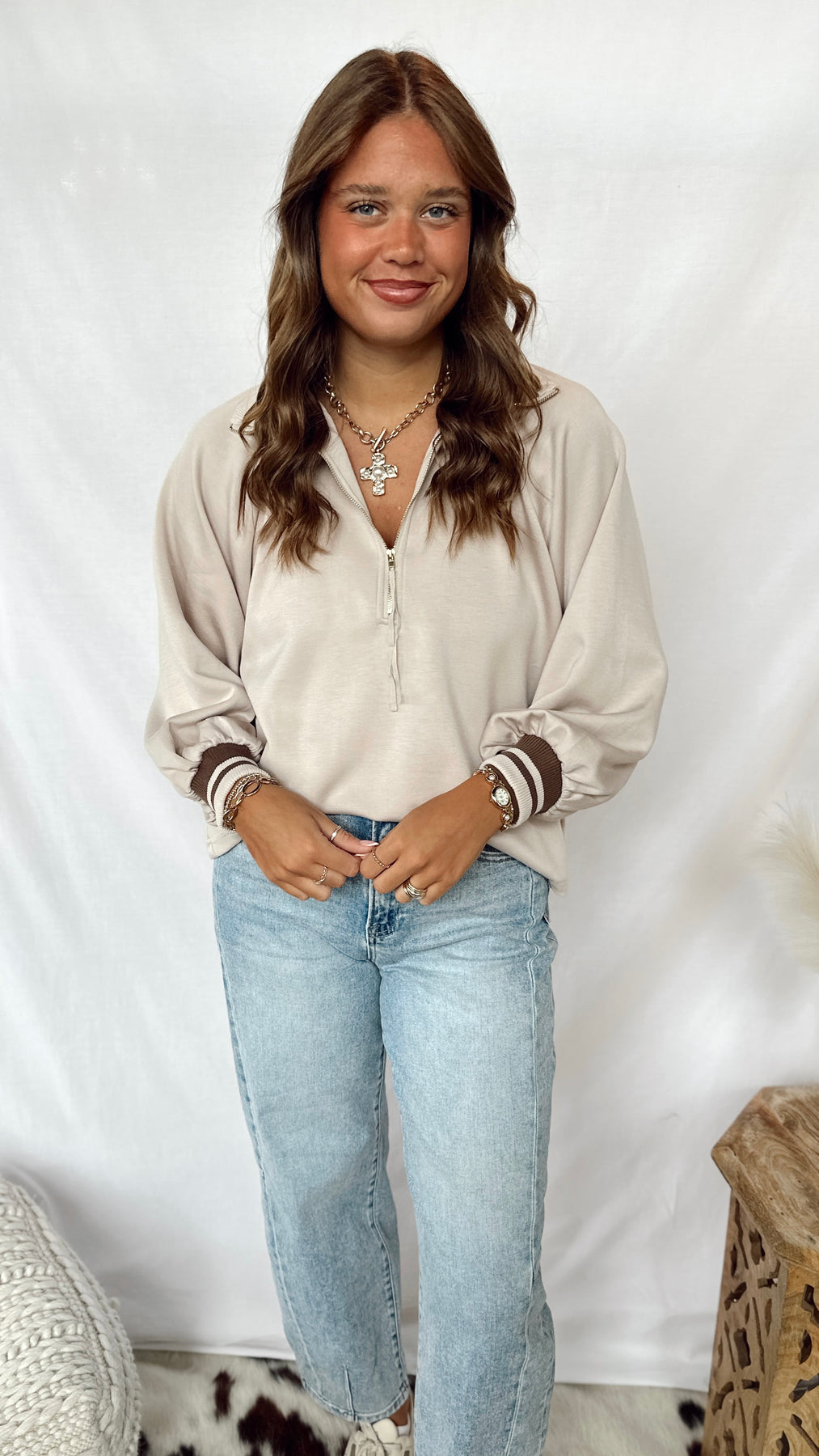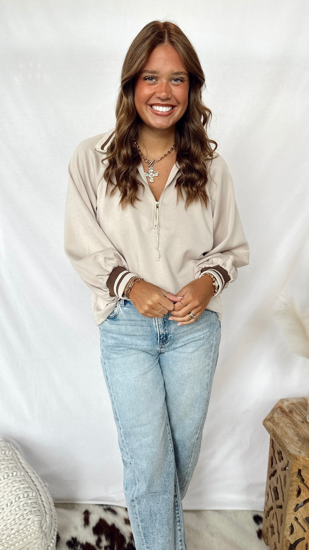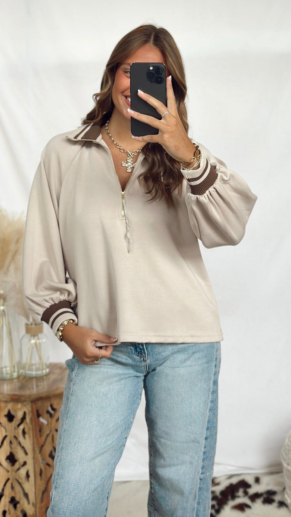 Cozy up in the Shelby Pullover, featuring a warm almond color that pairs perfectly with any outfit. Its handy quarter zip and classic collar add just the right touch of sporty style, making it easy to layer or wear solo on chillier days. Simple, comfortable, and ready for whatever your day brings!