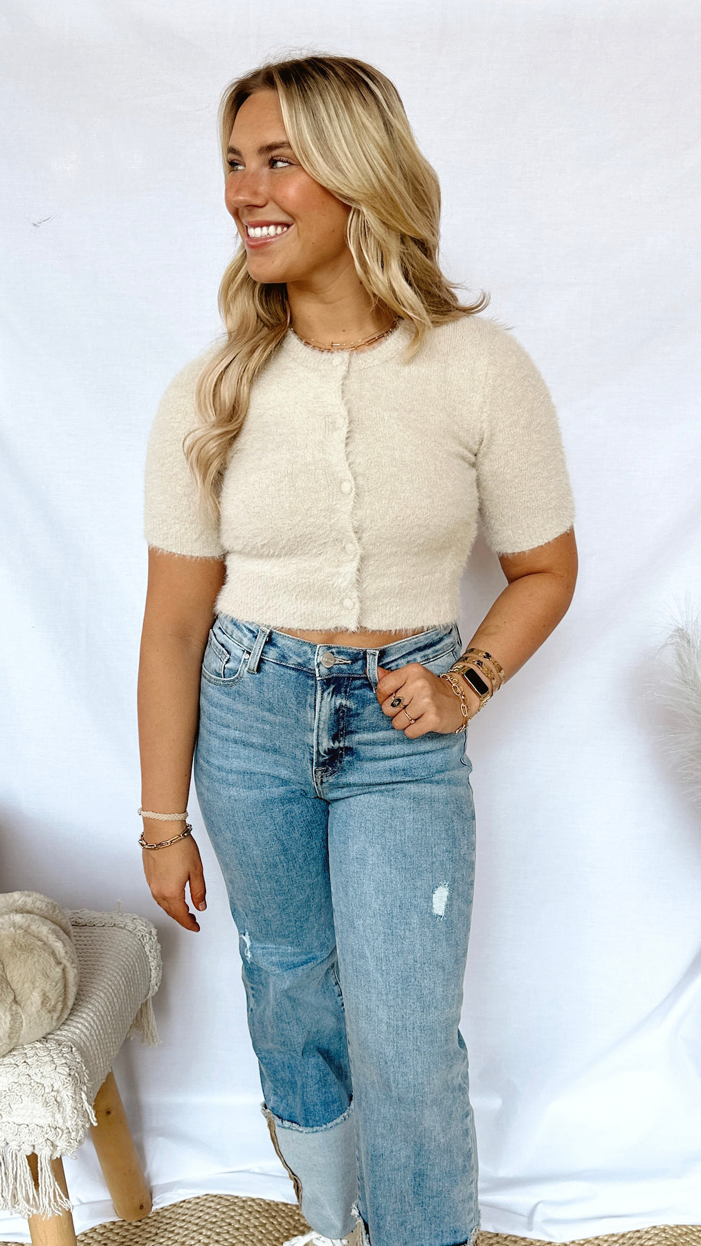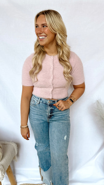 Looking for a fun and simple way to update your wardrobe? The Social Girl Top has got you covered! Made from super soft fabric and featuring a cute button-up detail, this cropped top is available in both pink and taupe. Perfect for a stylish and comfortable look.