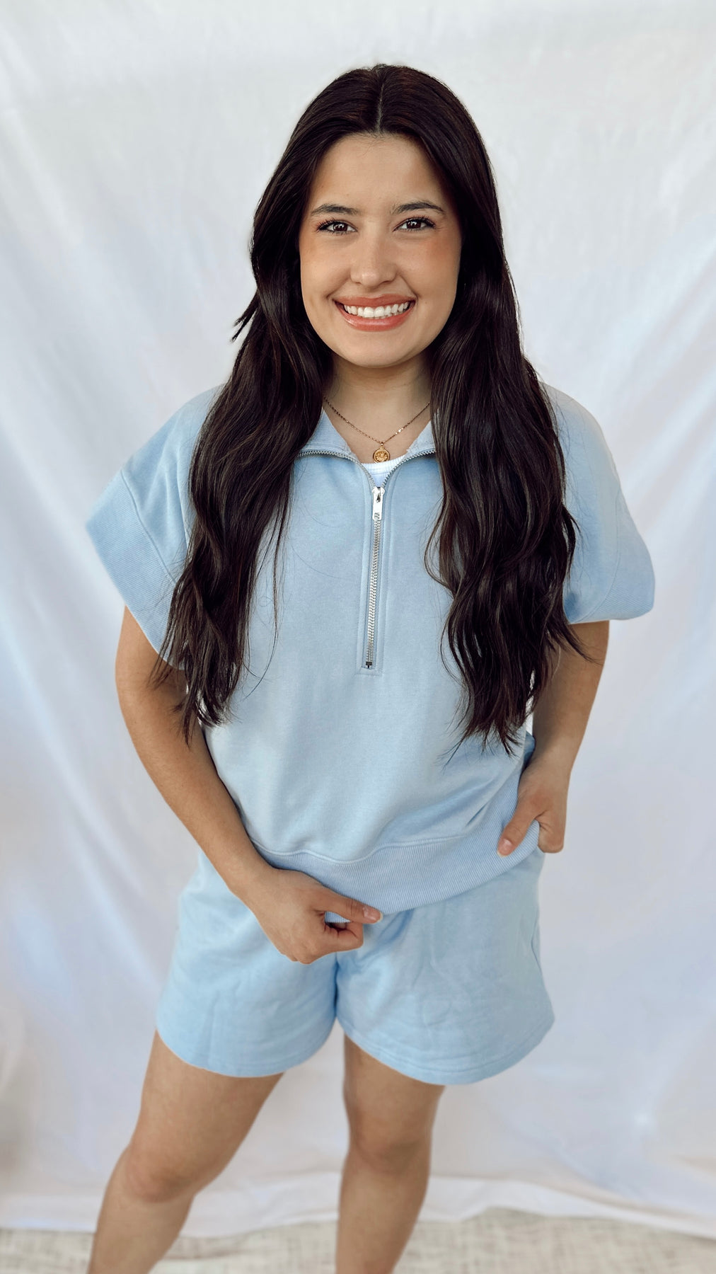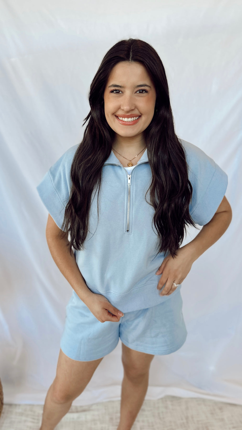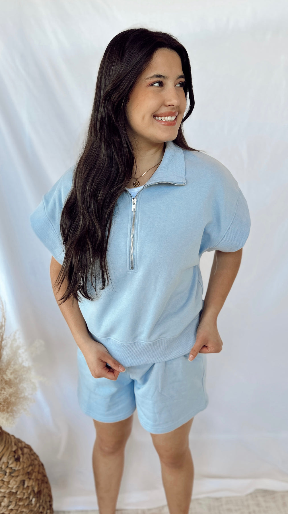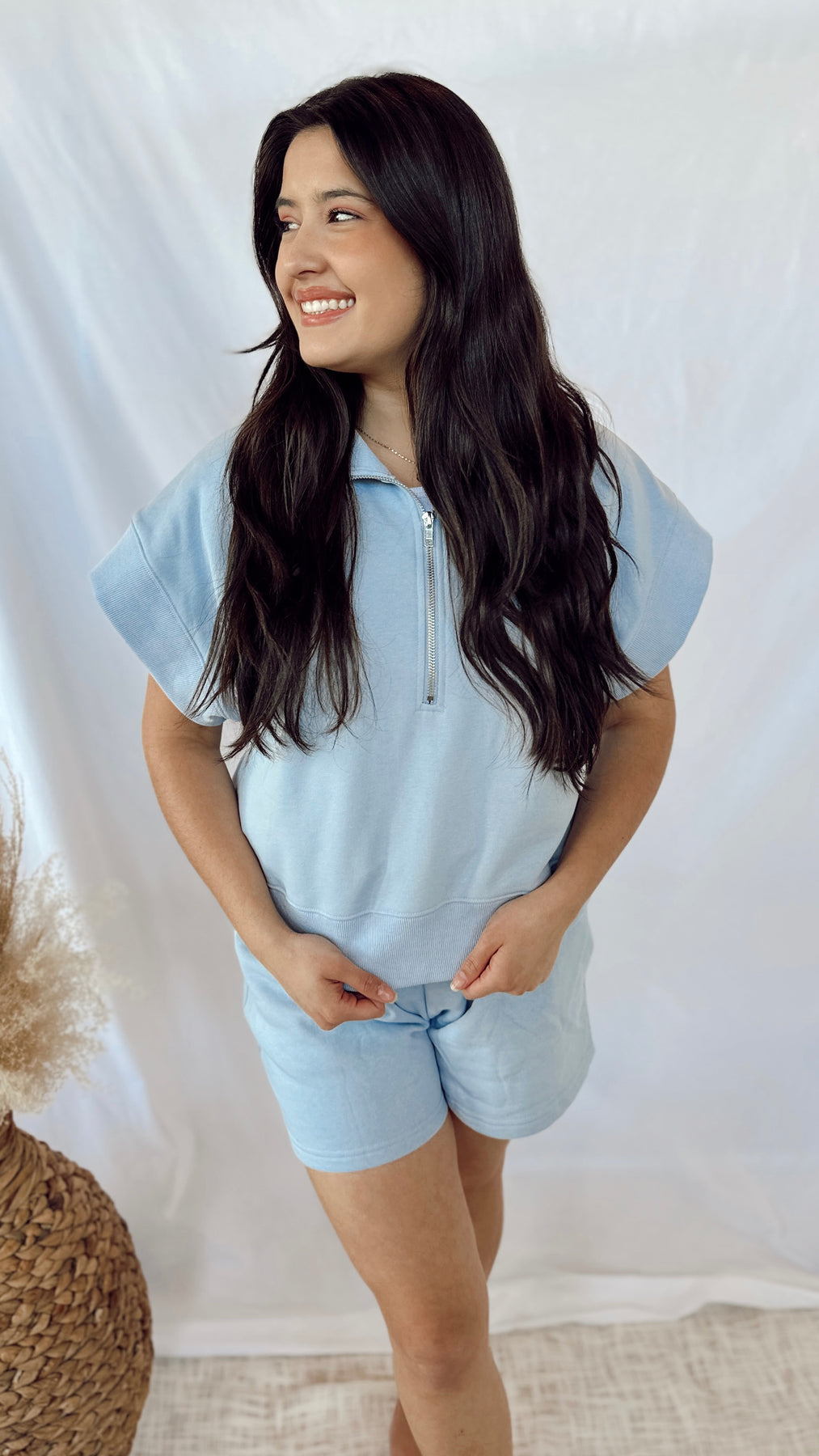 Stay comfortable and stylish with our light blue Tides Shorts. Made with a soft sweat material, these shorts are perfect for a day out on the town. With convenient pockets, you'll have everything you need at your fingertips.