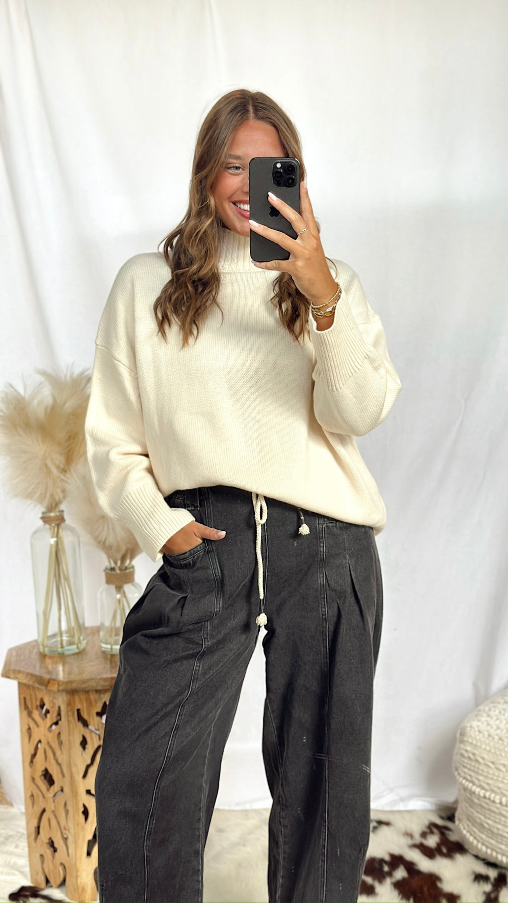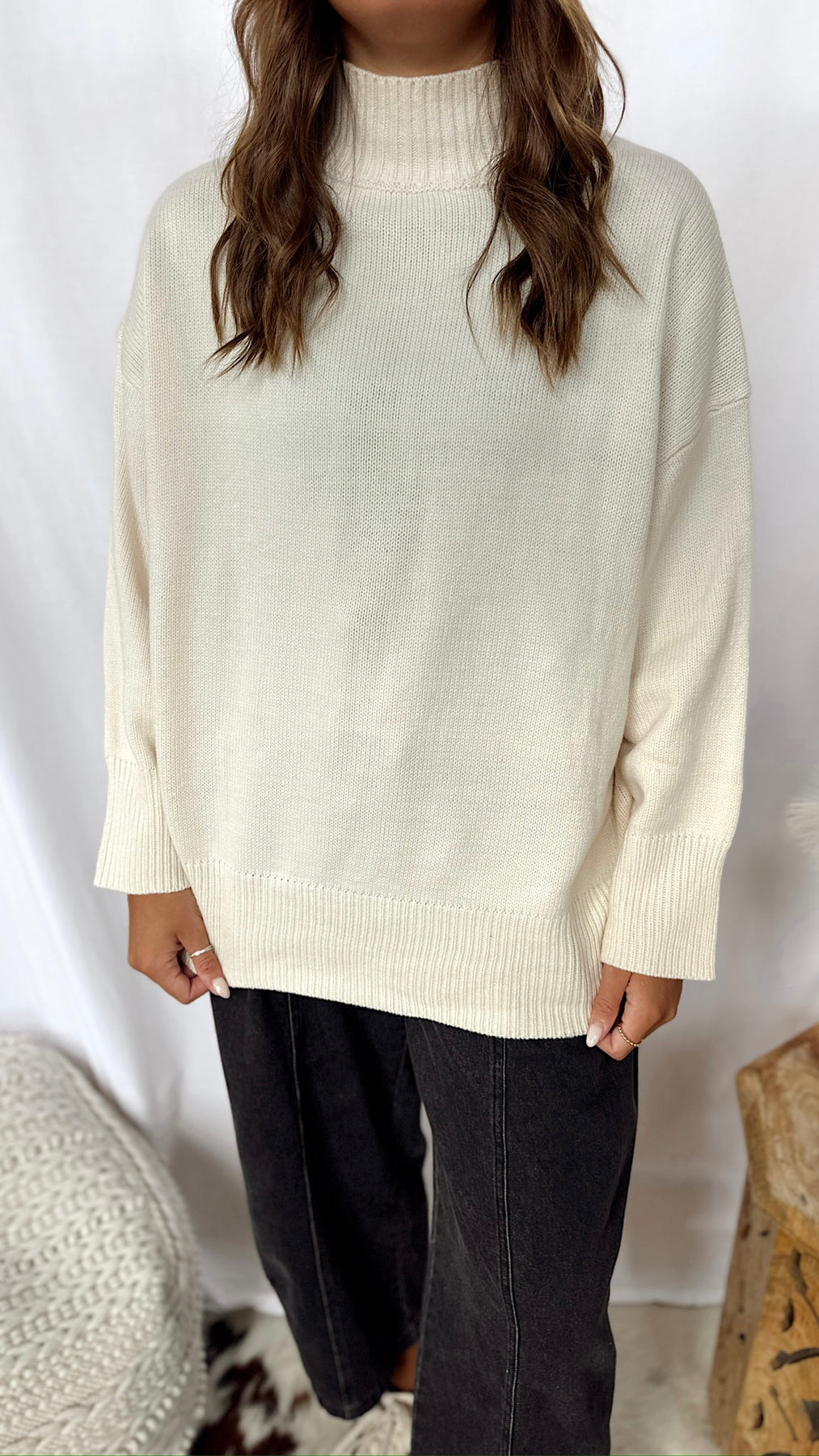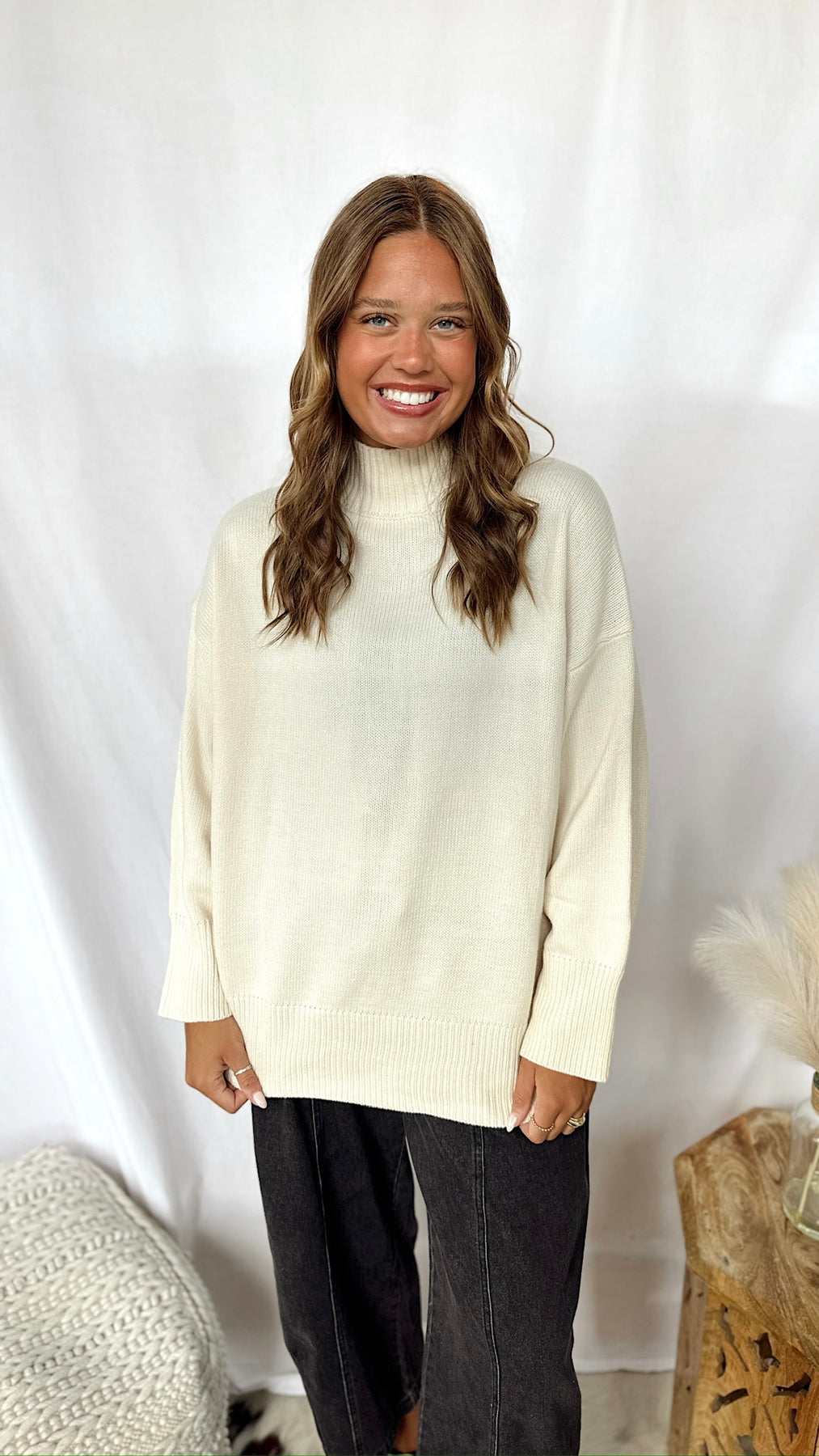 Stay cozy and stylish in The Willow Sweater, available in cream and taupe. This oversized mock neck sweater offers a relaxed fit that’s perfect for layering and keeping warm, while the soft fabric adds all-day comfort with a playful touch.