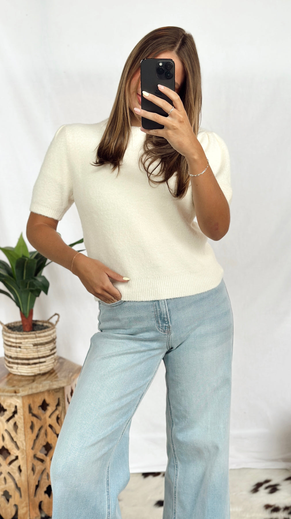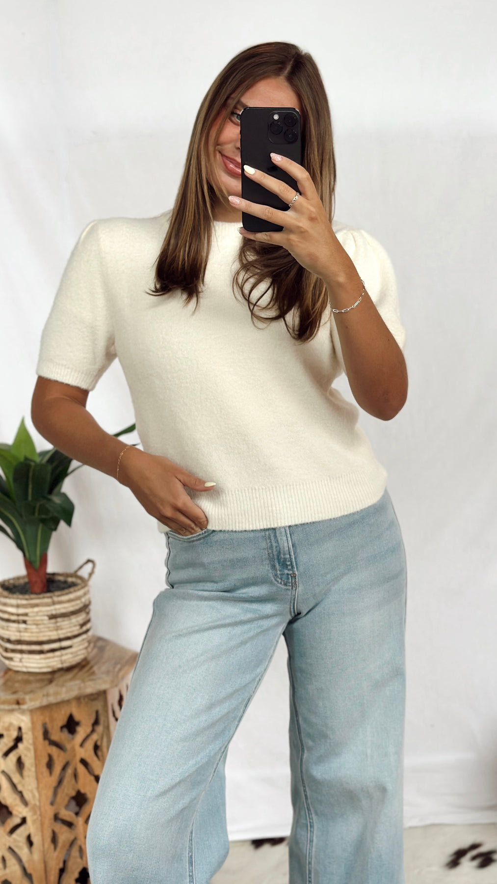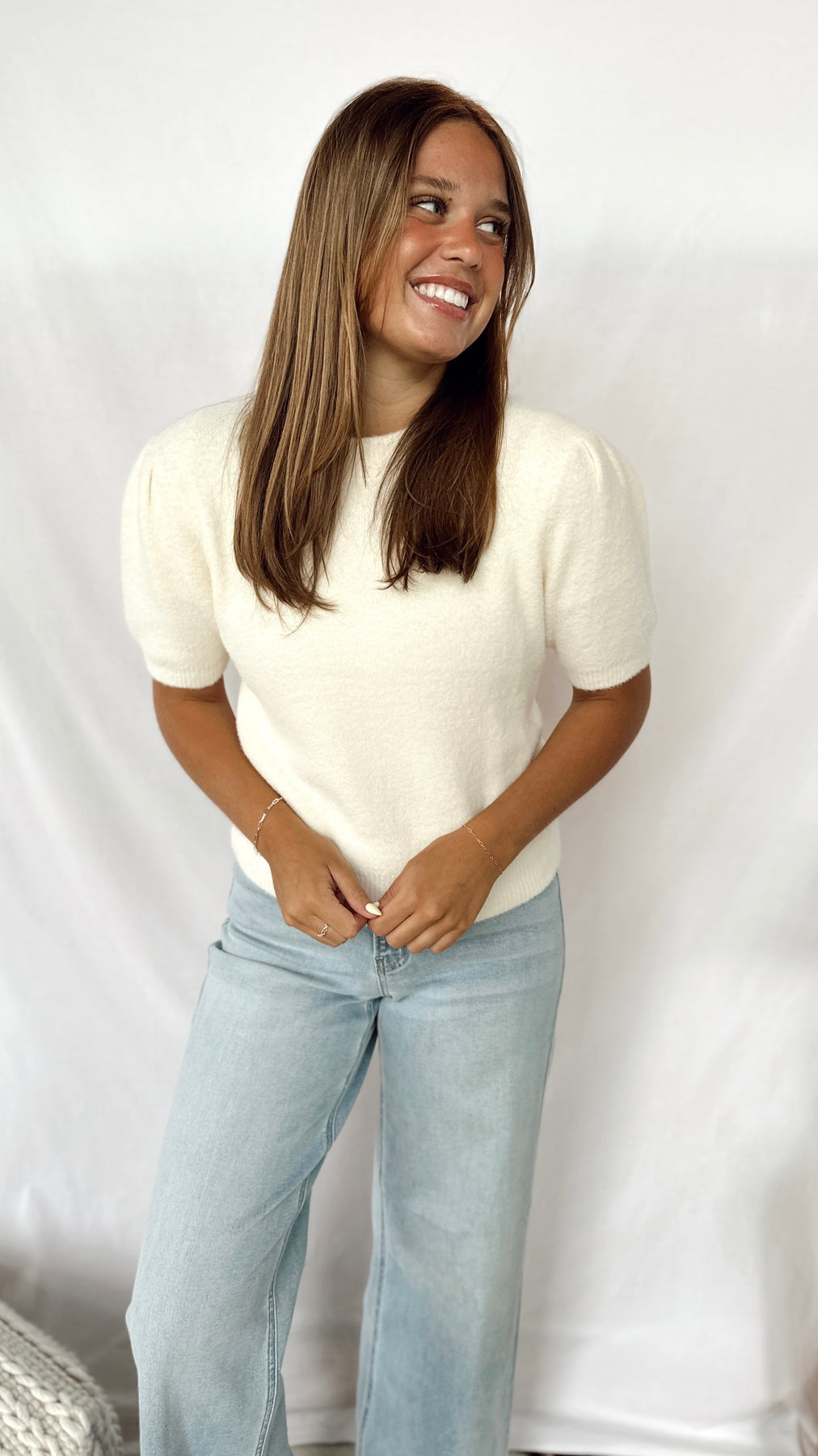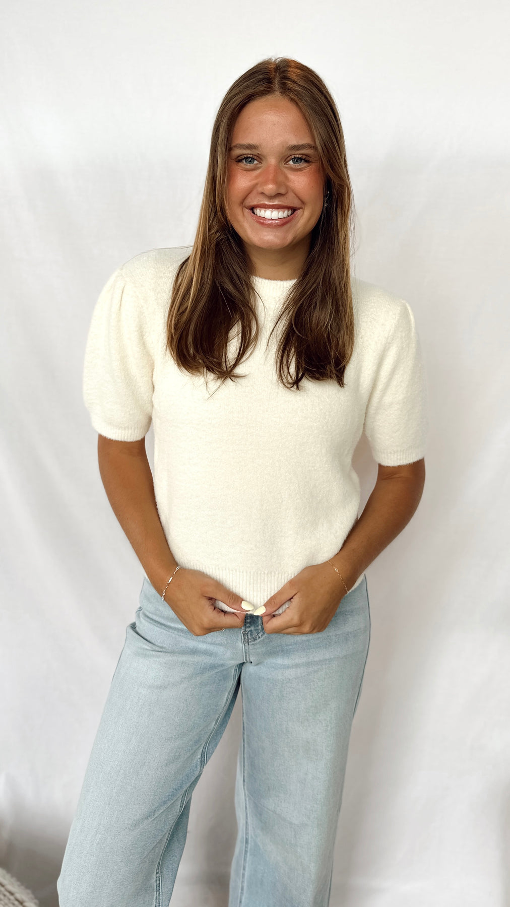 The Winnie Top is a charming white soft top featuring playful puff sleeves that add a touch of whimsy to your look. Its lightweight fabric keeps you comfortable all day, making it perfect for casual outings or dressy occasions. Easy to style and effortlessly cute!